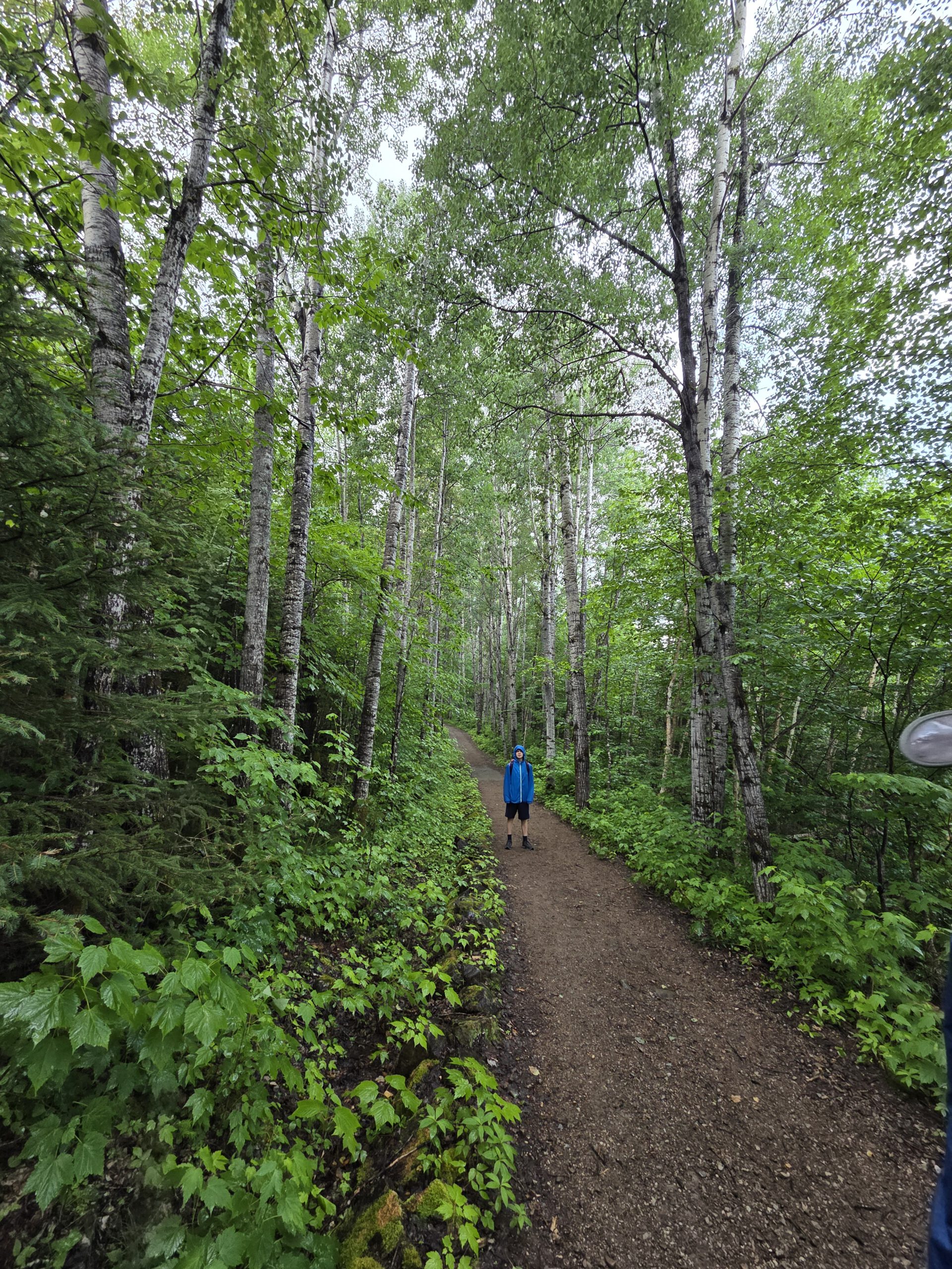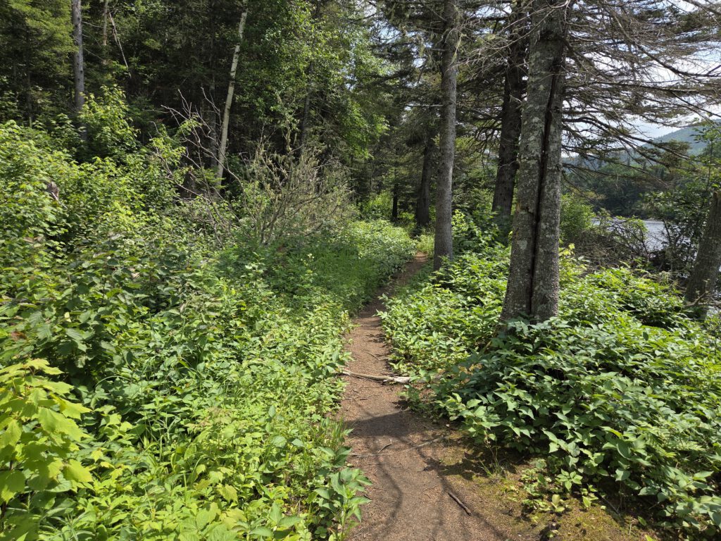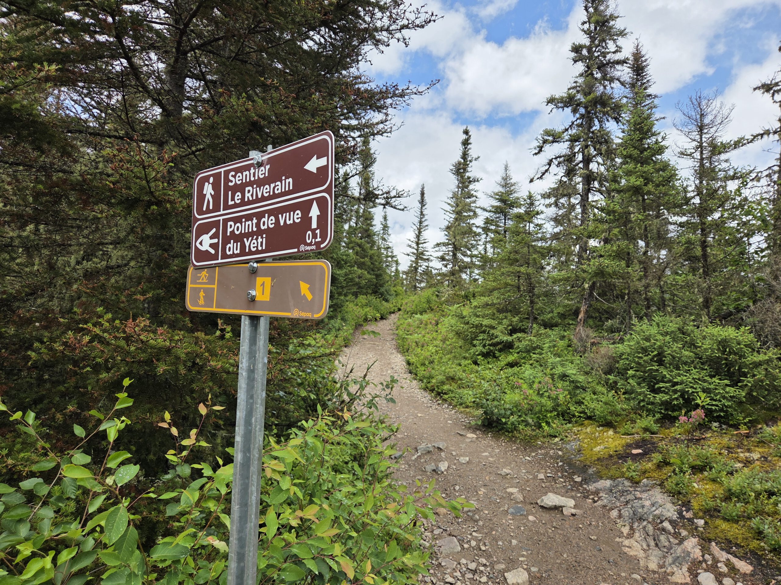 Wir lieben das Ferienhaus und gehen es langsam an. Frühstück drinnen, dann Kaffee draußen. Die Vegetation ist, anders als in Australien, natürlich sehr ähnlich zu Europa. Aber die Vögel zwitschern anders und das ist sehr schön. Nachdem das angekündigte Gewitter in der Nacht ausgeblieben war und die Sonne recht warm ist, machen wir uns auf den Weg in den Nationalpark um die Ecke, der etwas sperrig Hautes-Gorges-de-la-Riviere-Malbaie National Park heißt.
