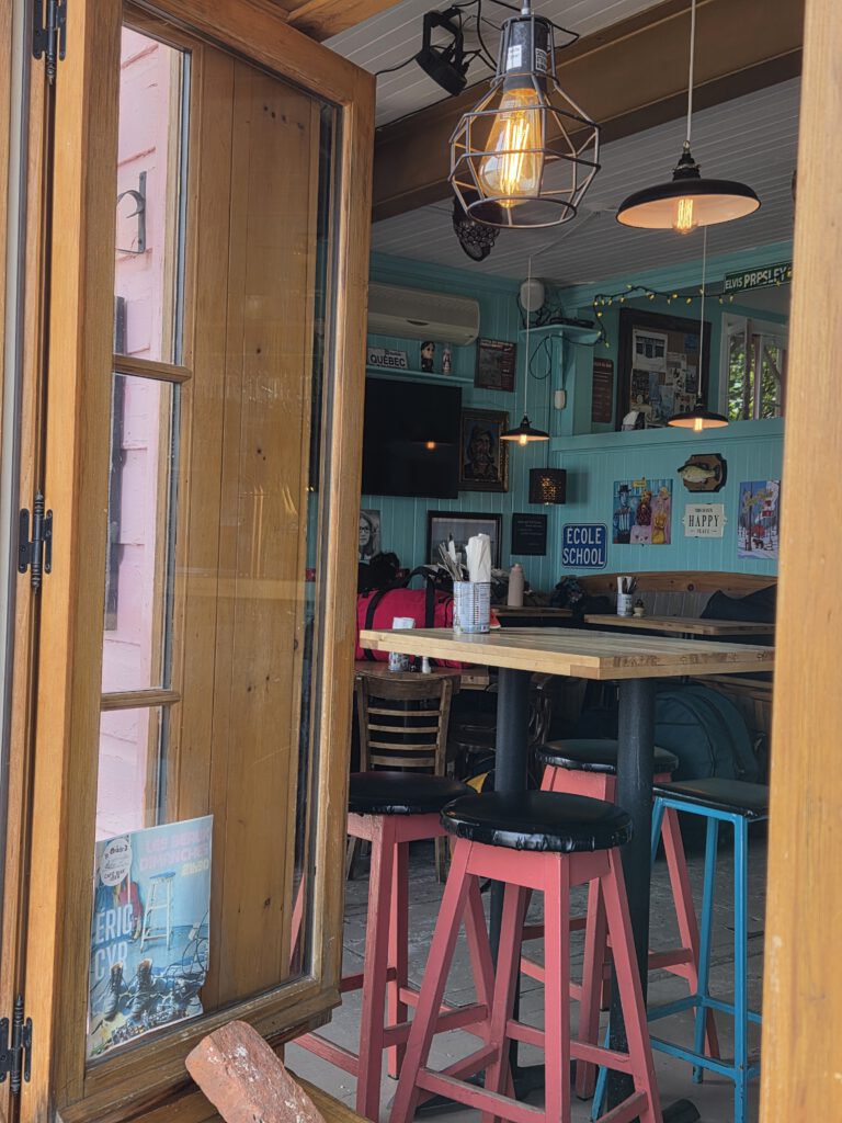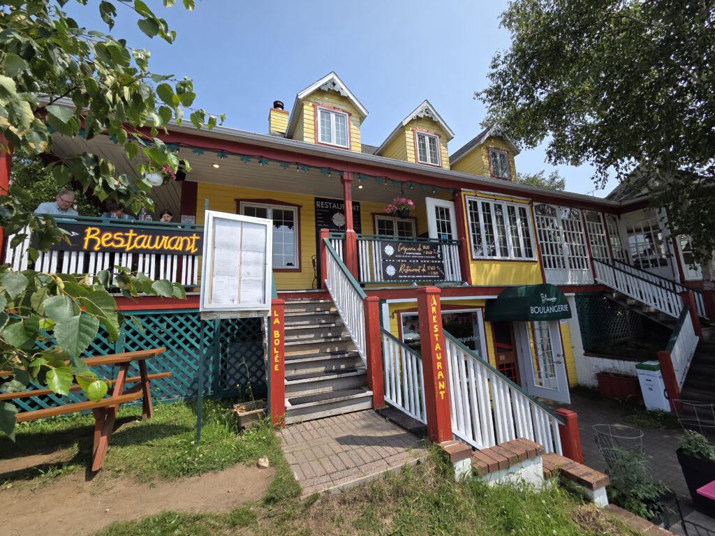 Gegen 14.15 Uhr sind wir also endlich in Tadoussac, um 16.45 Uhr müssen wir auf dem Boot zur Waltour sein. Wir kehren in einem knallbunten, zuckersüßen Crepes-Lokal ein. Sehr französisch. Der Kellner empfiehlt die günstigere Kombination und eilt, als Gerald kein weiteres Getränkt bestellt, um eine weitere Flasche (kostenloses) kaltes Wasser zu bringen. Louisa staunt: "Warum sind die hier alle immer so nett?". Man möchte spontan auswandern.