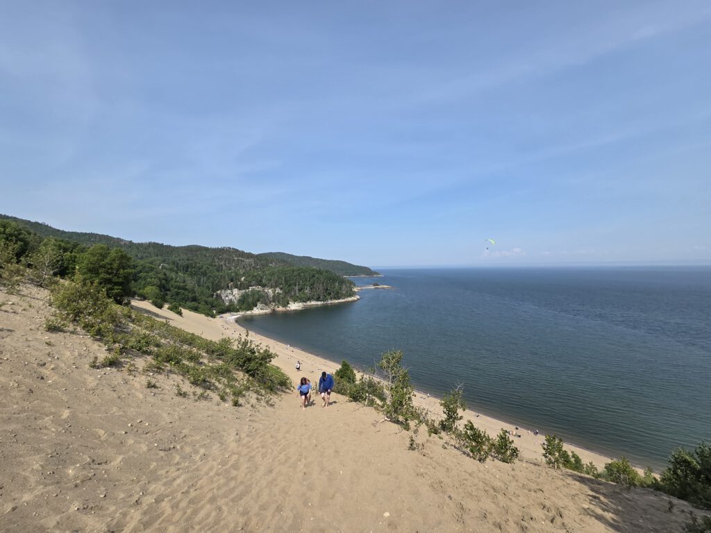 Dann geht es Richtung Düne. Alleine, der Fahrtweg ist irgendwann wegen Überfüllung gesperrt. Wir schauen uns also vorher etwas um, sehen den Strand, viel Sand und die Paraglider. Aber zum Bohlenweg am Strand entlang kommen wir nicht, denn da müssten wir erstmal 15 Minuten laufen - dazu reicht die Zeit nicht.