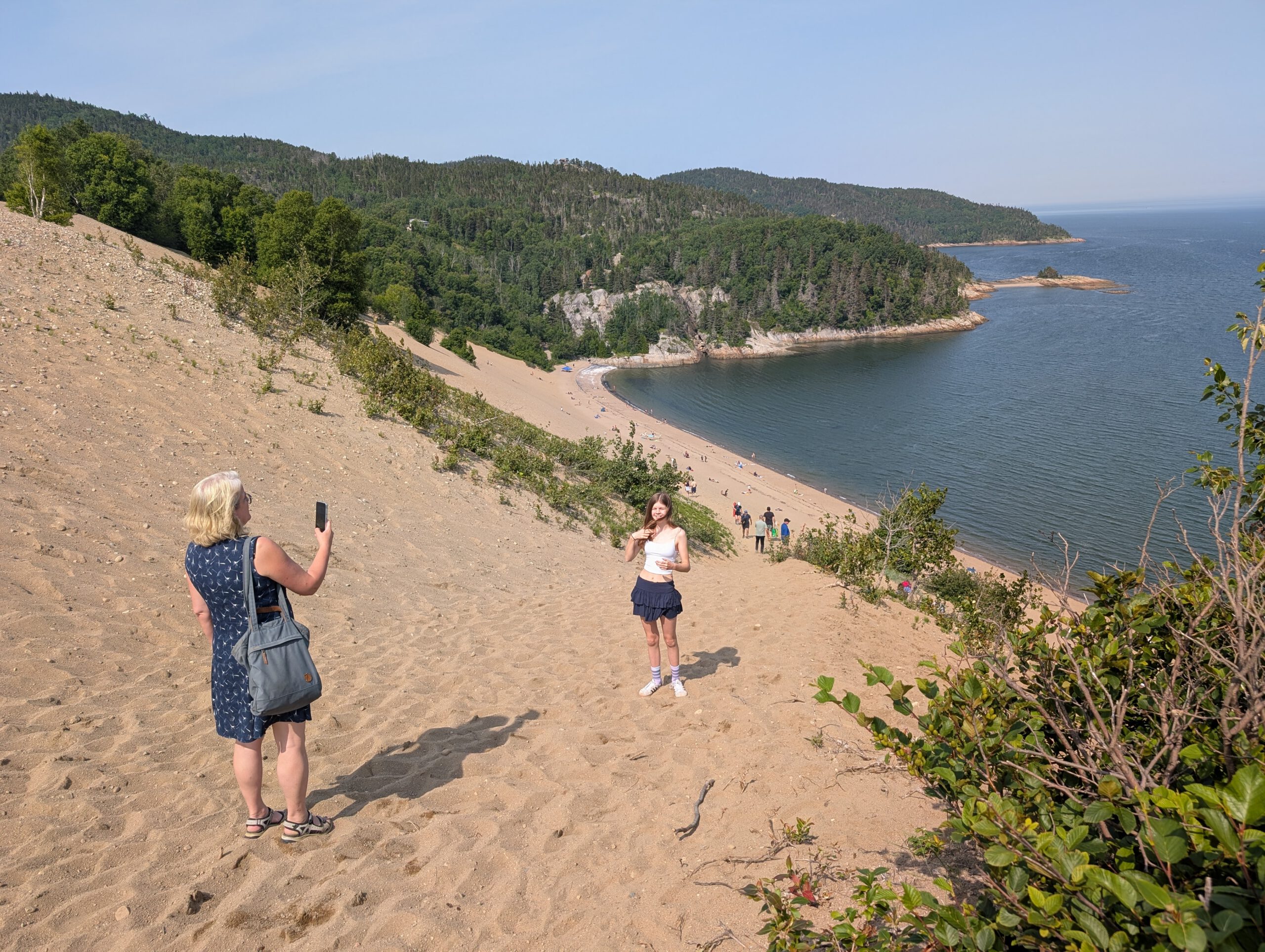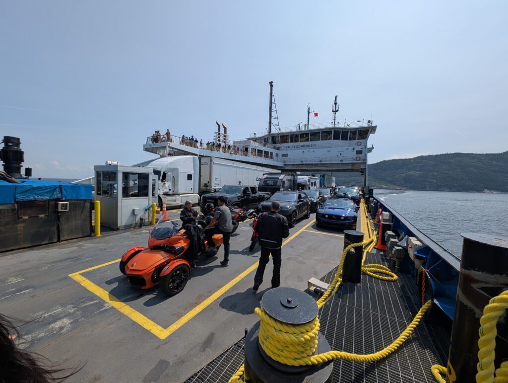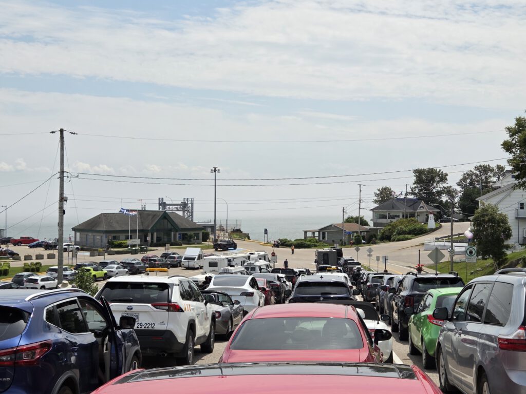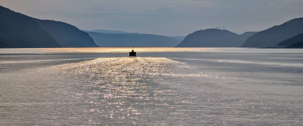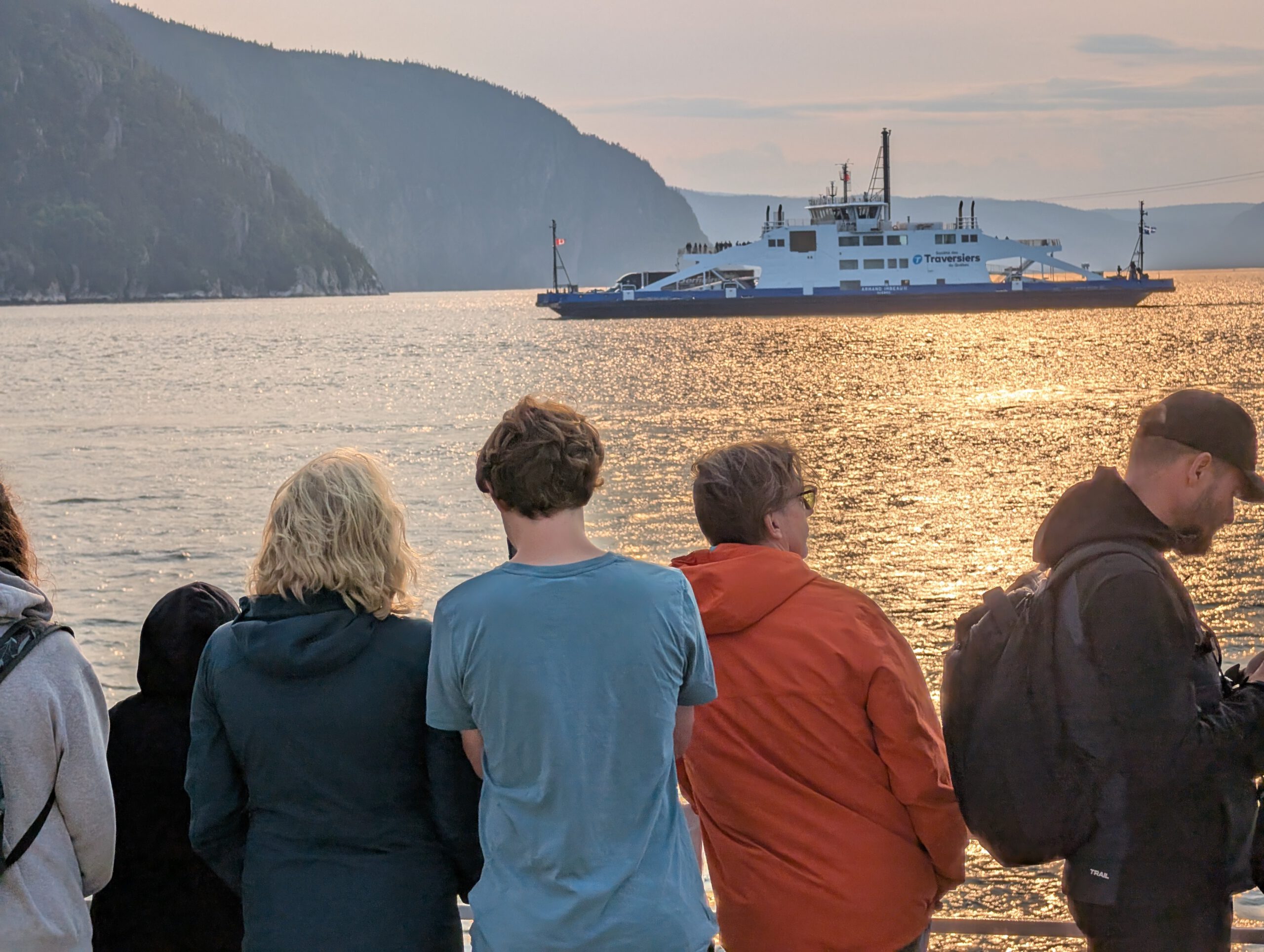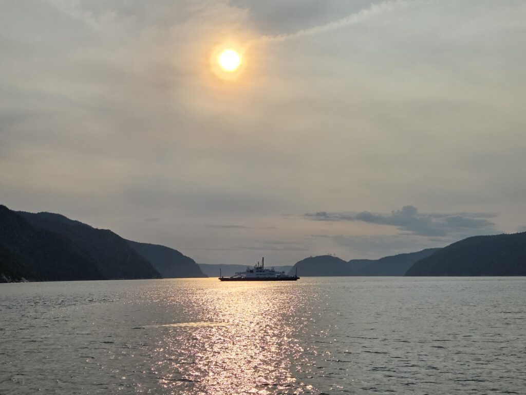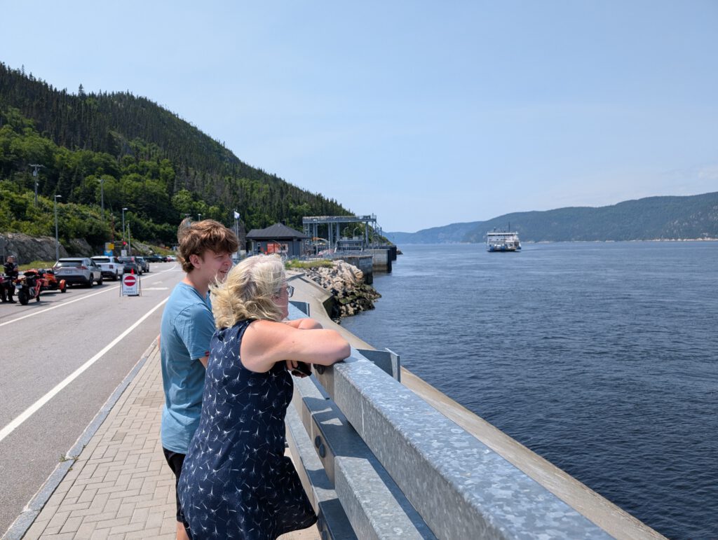 Die Fahrt nach Tadoussac ist entspannt, dauert aber über eine Stunde. Der Weg führt am St. Lorenz-Strom entlang, der längst wie ein Meer aussieht, und durch dichte Wälder mit idyllischen kleinen Seen. In Baie Sainte Catherine müssen wir mit der Fähre über den Flug/Fjord Saguenay übersetzen. Über die erstaunte Frage, wo man auf der Fähre denn bezahlt, müssen die Kanadier lachen: Nirgends, die Fahrt ist doch kostenlos.