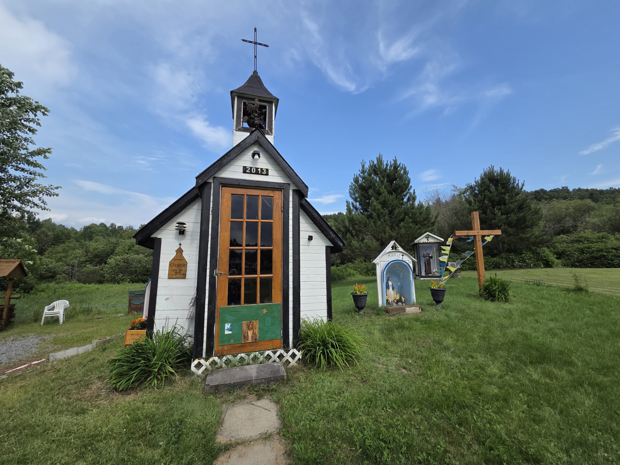 Am Infozentrum am Damm angelangt gibt es erstmal viele Kaltgetränke. Gerald und Kilian erklimmen noch kurz einen Aussichtspunkt, dann nehmen wir einen der Schulbusse zurück. Auf dem Rückweg werfen wir einen neugierigen Blick in ein kleines Café, das sich aber als Selbstbedienungsladen entpuppt (Natürlich funktioniert das hier ...) . Dann in eine kleine Kapelle plus selbstgebauten Heiligengedankstellen aus Badewannen an einer, nunja, heiligen Quelle. Sagt zumindest das handgemalte Schild.