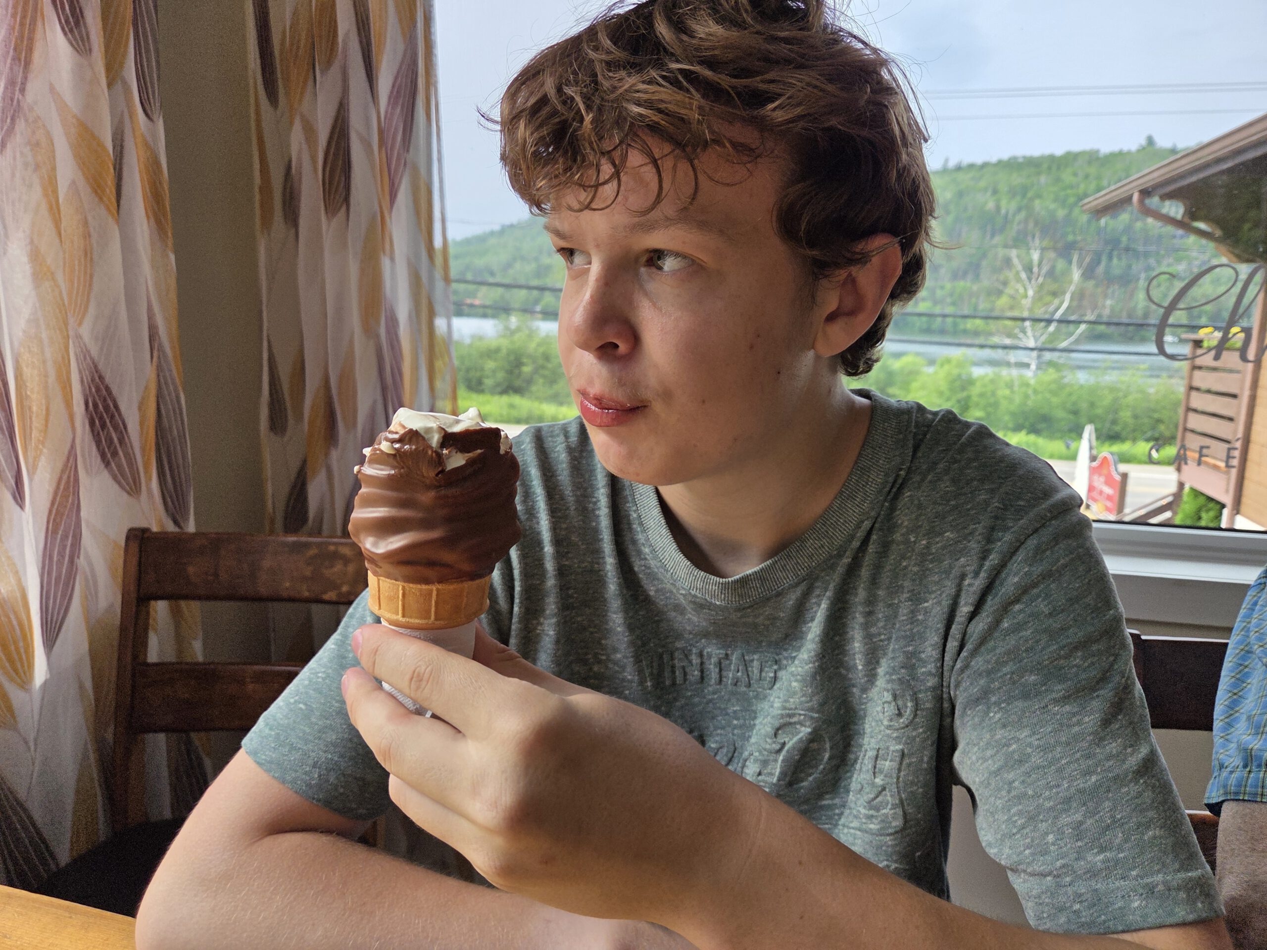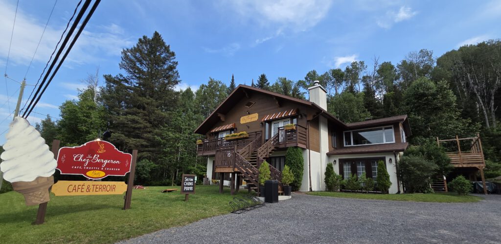 Zum Abschluss entdecken wir noch ein Kleinod: Das "Chez Bergeron" am Ortsausgang, das mit "Cafe, Daunendecken und Chansons" wirbt. Eine Unterkunft mit kleiner Bühne und Café, also Kaffee, Gebäck und Softeis. Der Inhaber war schon mehrfach in Deutschland und ist von uns entsprechend begeistert. Das macht den Bundesstaat Quebec sowieso aus: Das Beste von Frankreich, ohne die Arroganz der Franzosen, dafür mit der Überschwenglichkeit der Kanadier ...