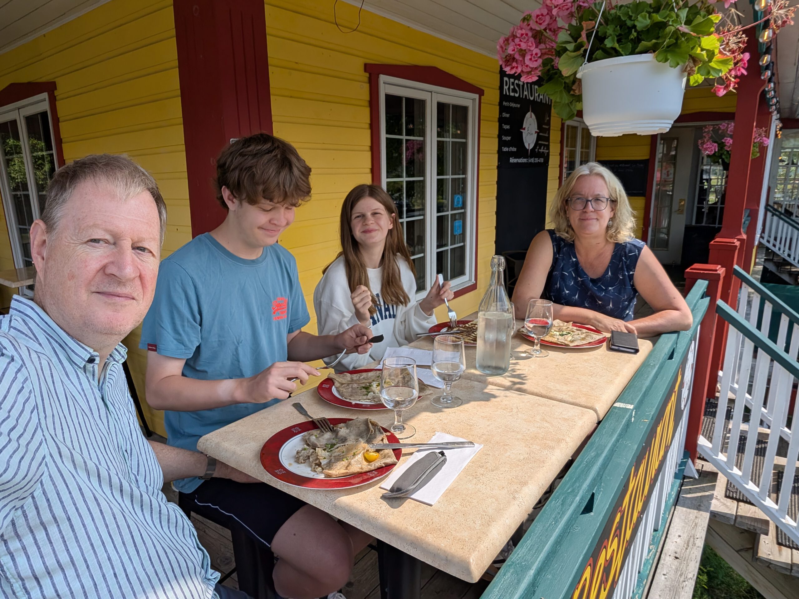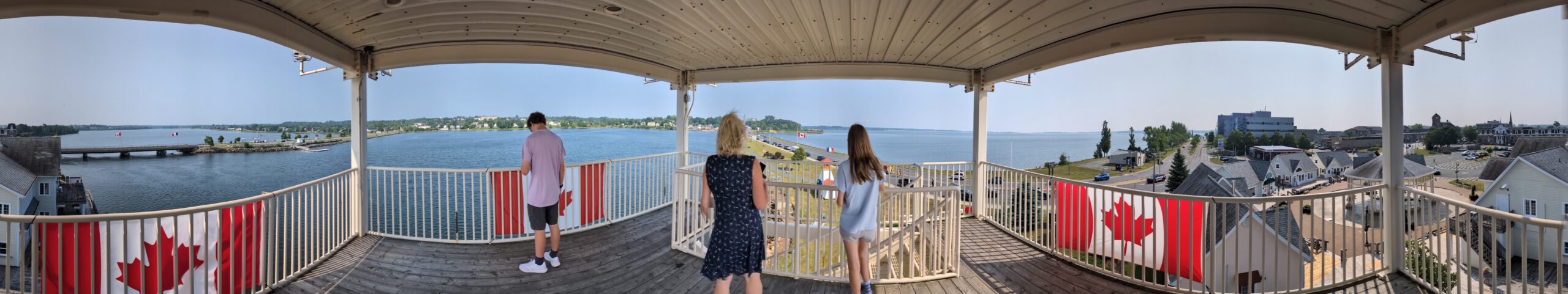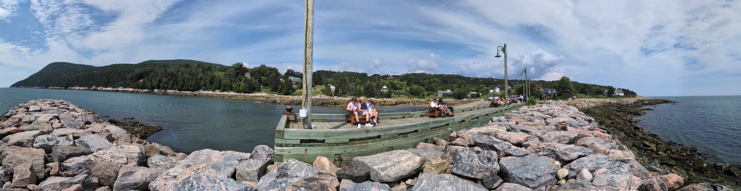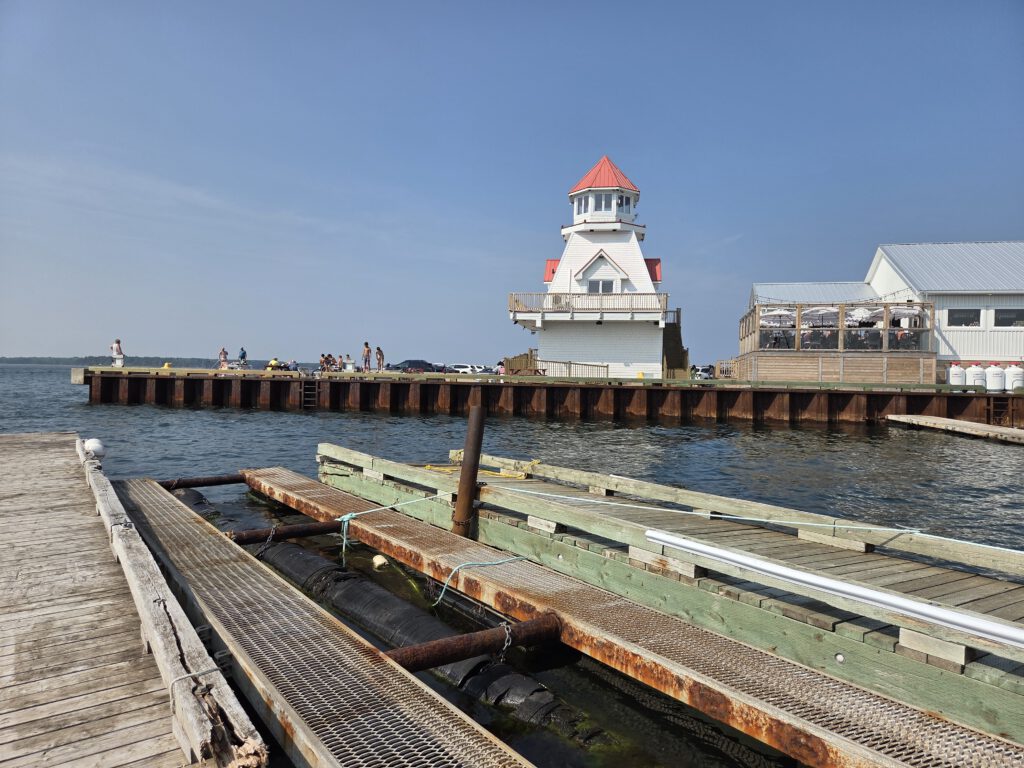 Wir steuern für ein spätes Mittagessen den Point du Cheney an, eine schmale Landzunge ins Meer. Kleiner Eintritt, der den Erhalt der Hafengebäude sichern soll. In the Sandbar bekommt Nicole ihren Lobster, Kilian Fish&Chips, Gerald und Louisa einen satten Burger. Leider ist es schlicht zu heiß, um danach noch lange zu flanieren. Aber rund um den Leuchtturm springen die jüngeren Einheimischen ins Wasser, die Senioren sitzen mit mitgebrachtem Sonnenschirm mit Blick aufs Meer, Angler packen ihre Angel aus.