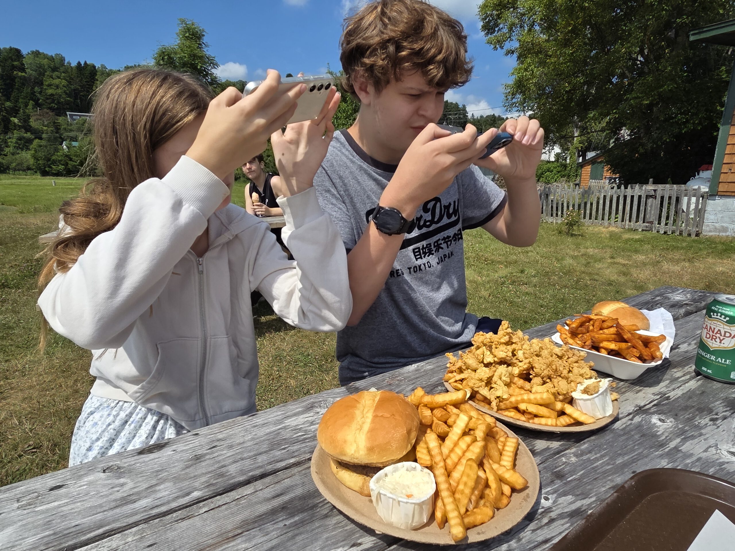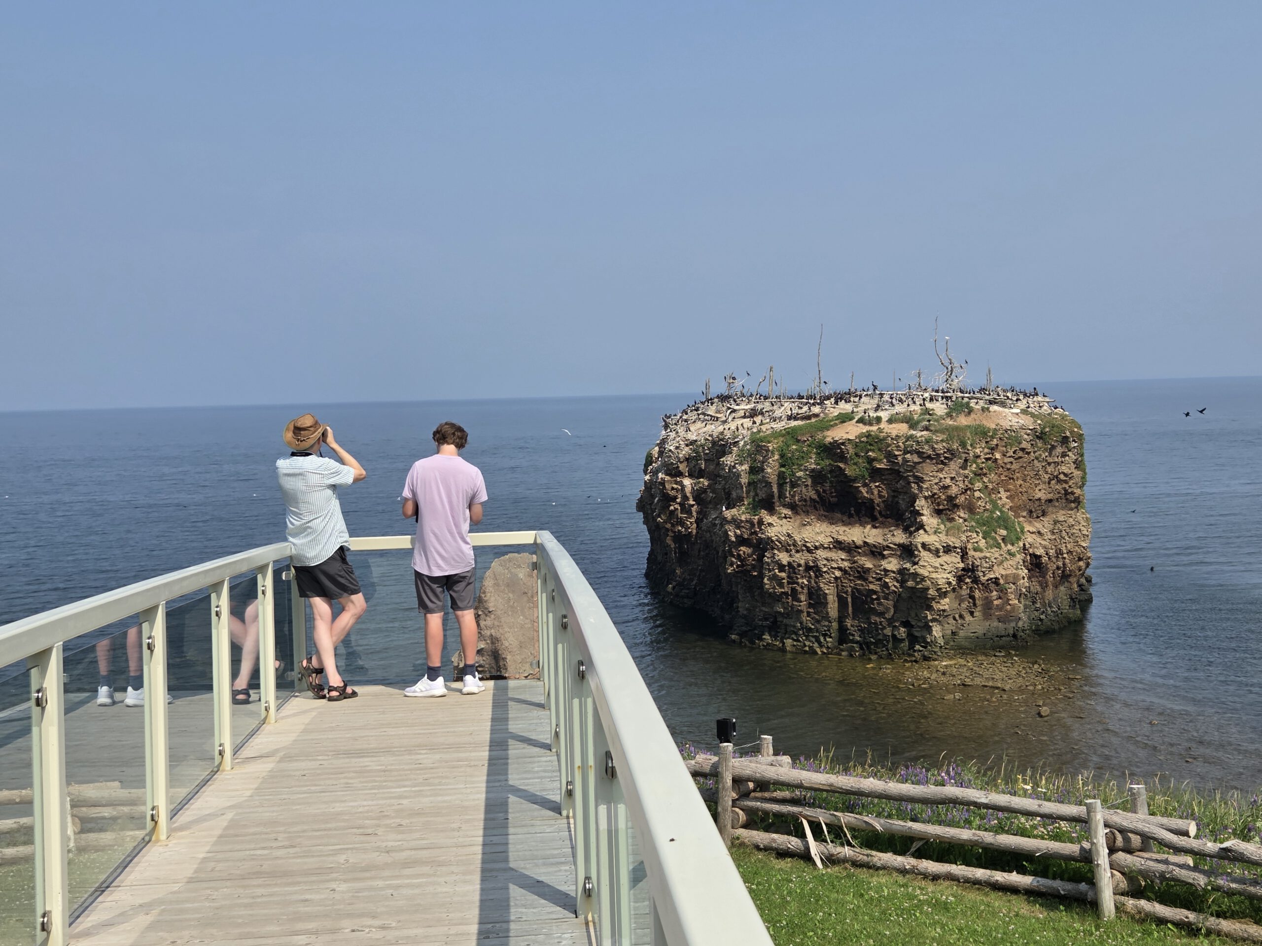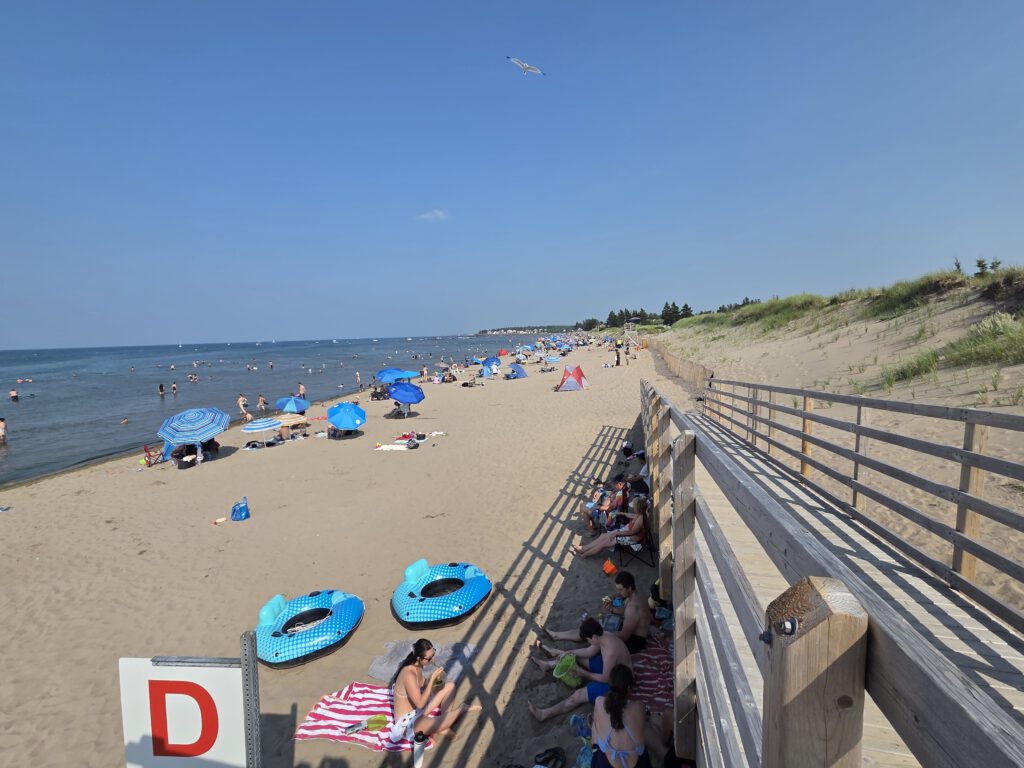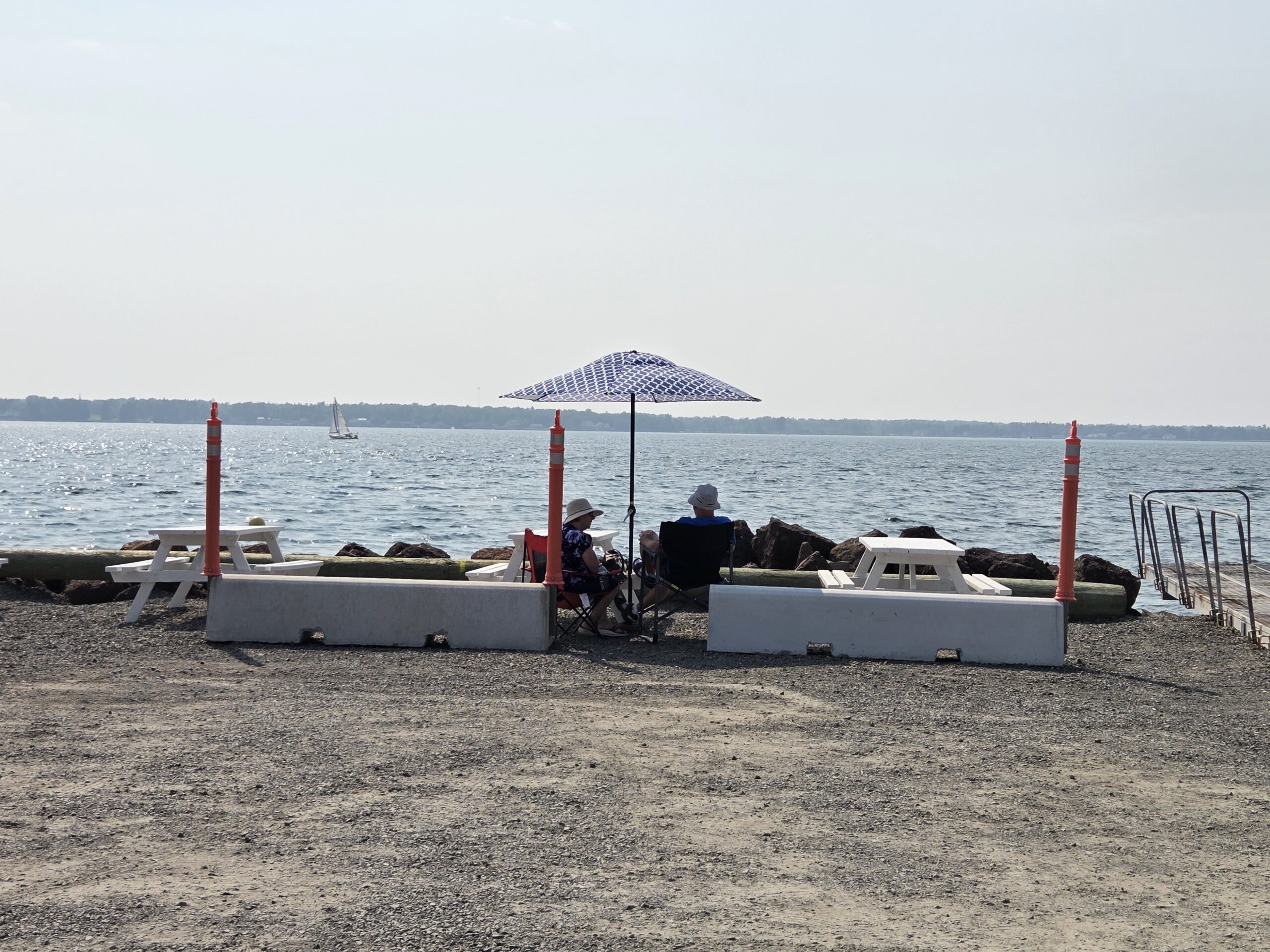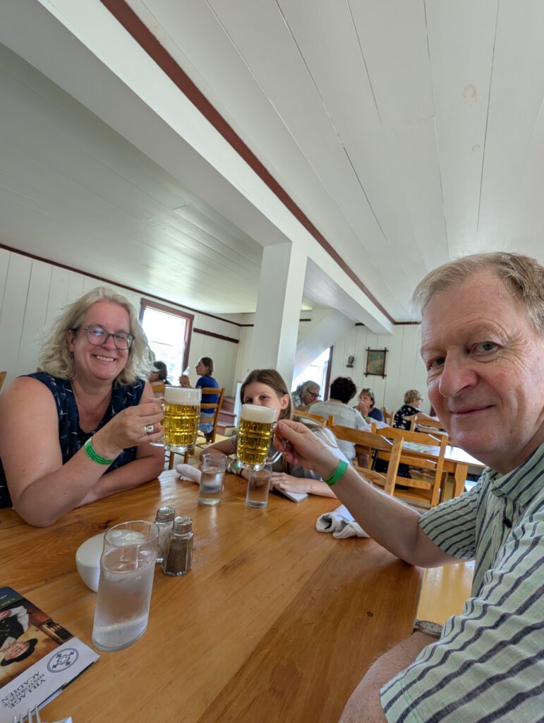 Wir steuern für ein spätes Mittagessen den Point du Cheney an, eine schmale Landzunge ins Meer. Kleiner Eintritt, der den Erhalt der Hafengebäude sichern soll. In the Sandbar bekommt Nicole ihren Lobster, Kilian Fish&Chips, Gerald und Louisa einen satten Burger. Leider ist es schlicht zu heiß, um danach noch lange zu flanieren. Aber rund um den Leuchtturm springen die jüngeren Einheimischen ins Wasser, die Senioren sitzen mit mitgebrachtem Sonnenschirm mit Blick aufs Meer, Angler packen ihre Angel aus.