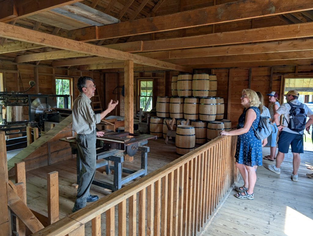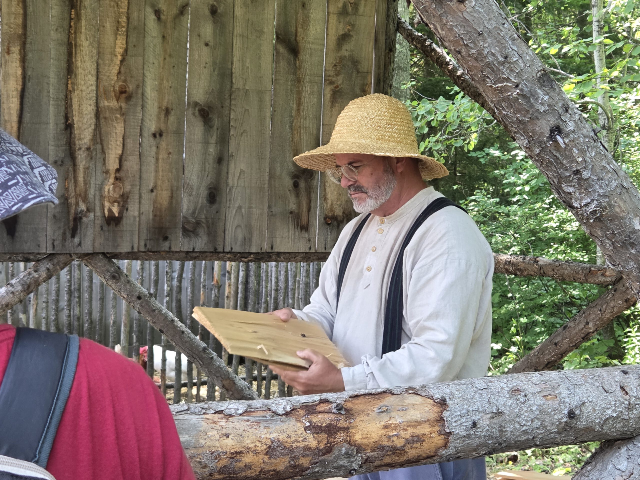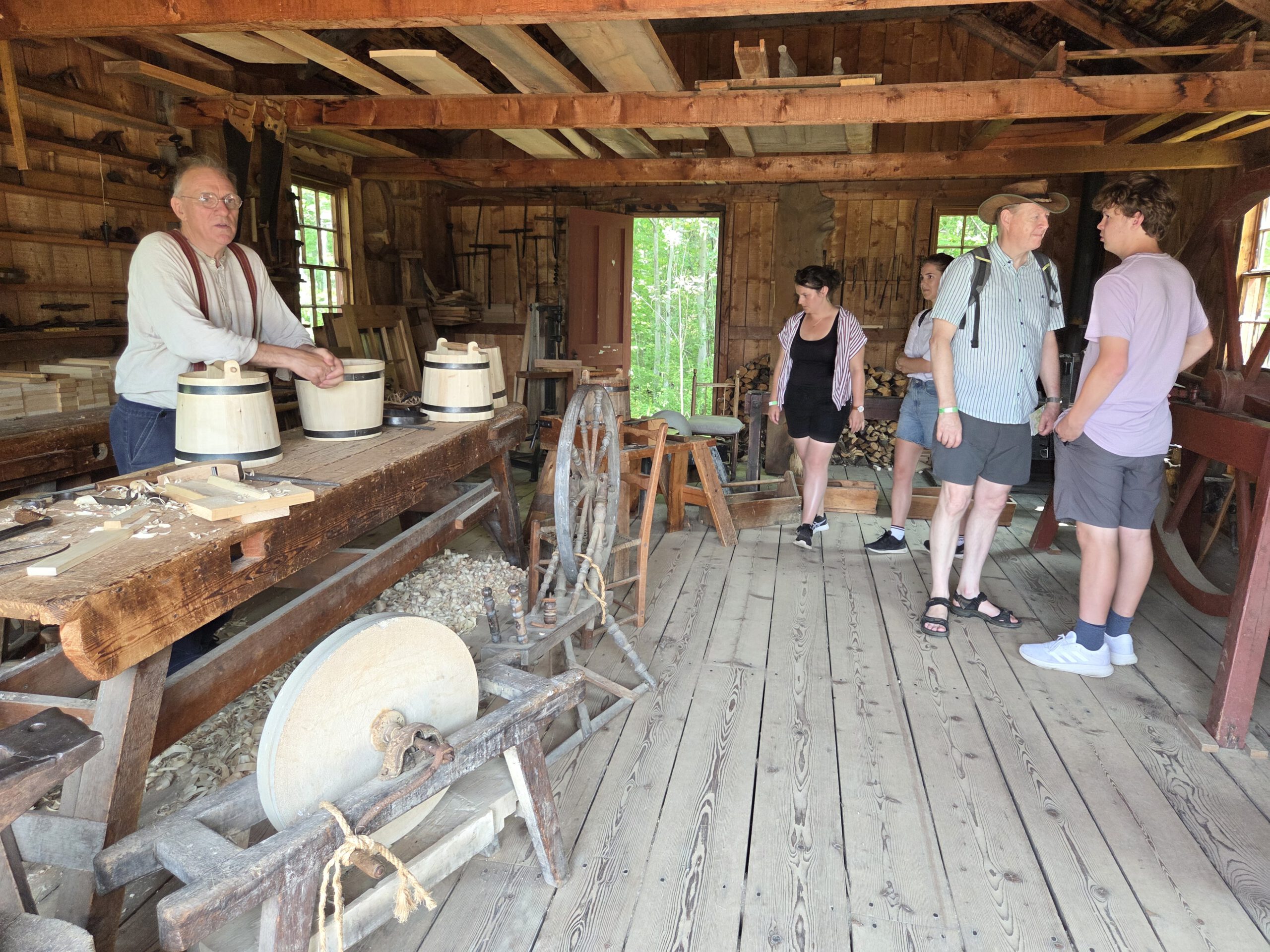 Man kann Schindelmacher, Schmiede, Fassmacher und viele mehr bei der Arbeit beobachten. Natürlich gibt es auch eine Wochenzeitung, wobei schon damals Geld durch das Drucken von anderen Aufträgen herein kam. Als spätes Mittagessen gibt es Akadische Speisen, Gemüsesuppe und Hühnerfrikasse, dazu frisch gezapftes Bier (und natürlich, wie immer, kostenloses kaltes Wasser).