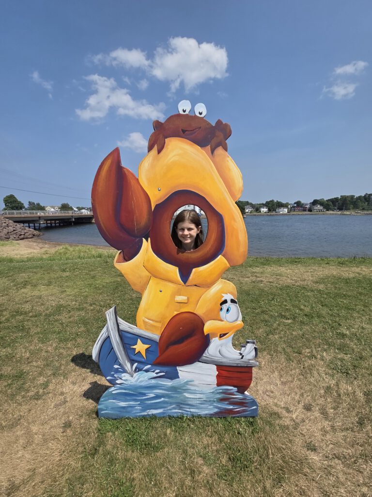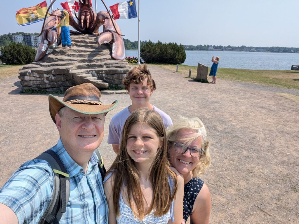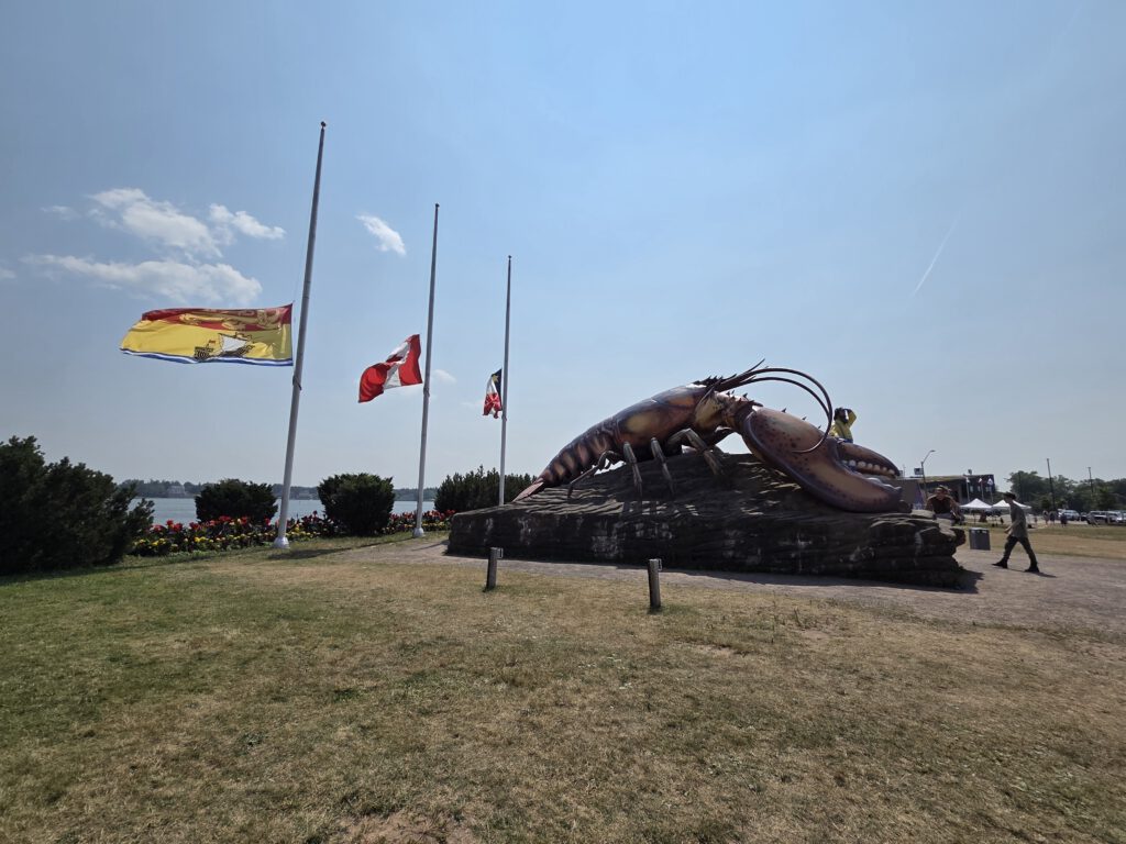 Gegen 14 Uhr trudeln wir beim großen Lobster in Sherdiac ein. 33 Grad, die Sonne sticht. Wir beobachten Touristen, die für Fotos posieren. Fotografieren eine Deutsche, die seit über 20 Jahren in Kanada lebt, samt Mann und Enkelkind. Und lassen uns fotografieren. Dann geht es schnell wieder in das gekühlte Auto, inzwischen Mausi getauft (weil mausgrau).