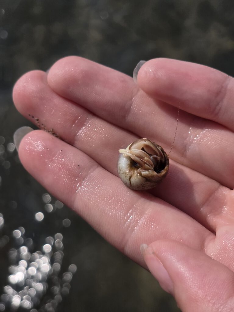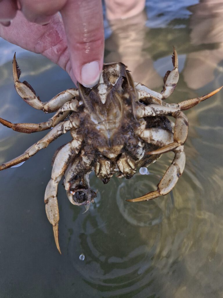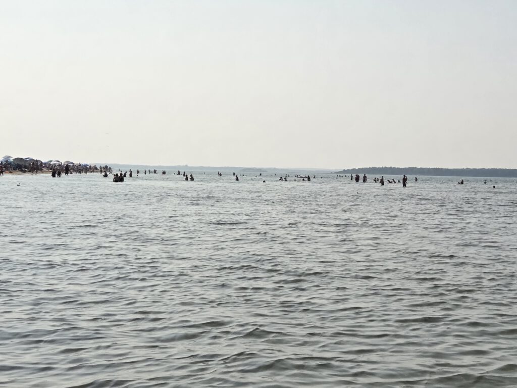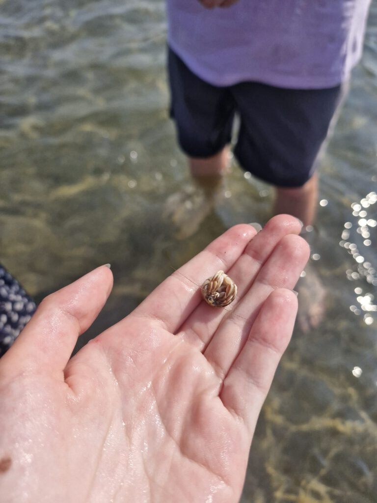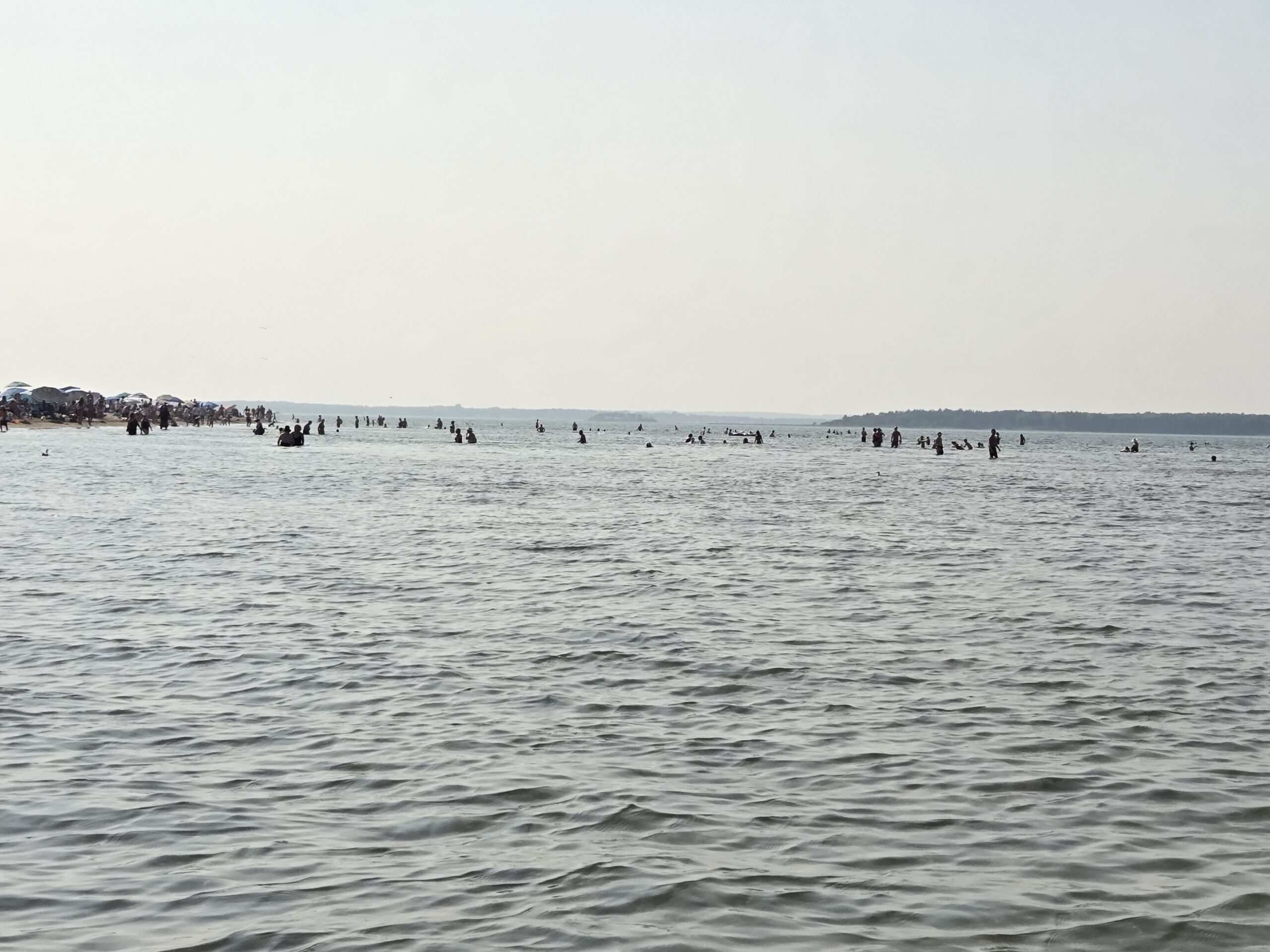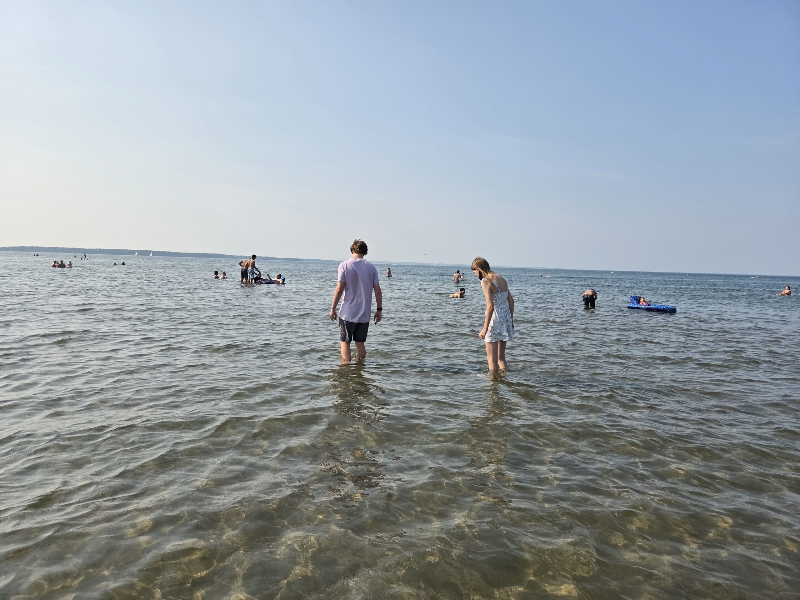 Die Reiseleitung besteht noch auf einen Abstecher zum Strand. Erst Meuterei im Auto, dann gefällt es natürlich doch wieder allen. Denn wärmer als in Parlee Beach bekommt man das Meer in Kanada nicht. Da es extrem flach hinein geht, stehen die meisten gemütlich - und der Strand ist sehr voll. Das Wasser kühlt angenehm ab, täuscht aber auch gefährlich darüber hinweg, dass die Sonne noch immer brennt. Wir finden tote und lebendige Krebse und gehen gerade rechtzeitig, bevor wir selbst hummerfarben aussehen ...