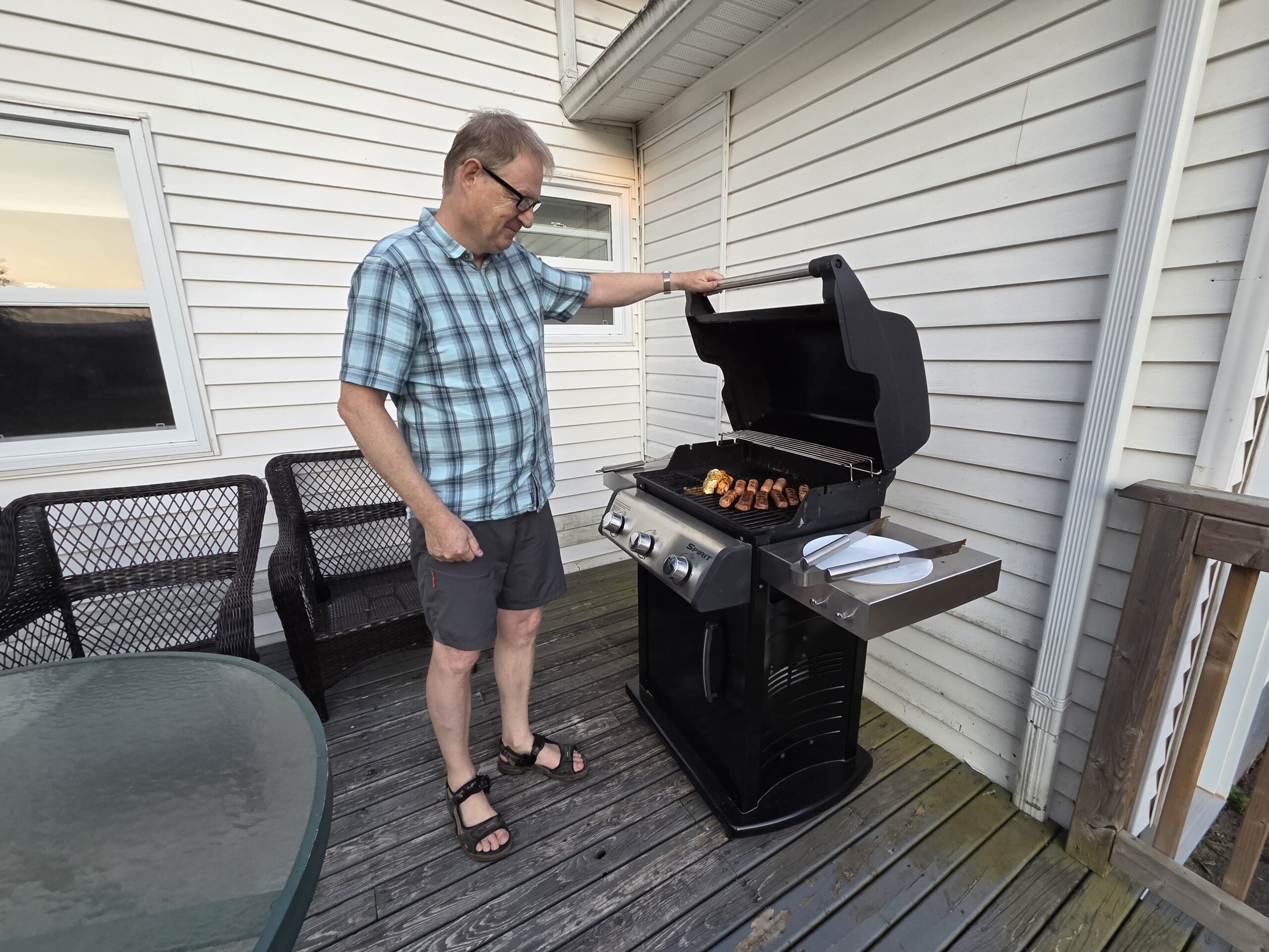 Ab 17 Uhr regnet es, auch wenn das im Wetterbericht angekündigte Ende der Welt ausbleibt. Zum Abendessen wird nochmal gegrillt, dazu gibt es den restlichen Speck und Eier und Salat und Hummus und was noch so alles im Kühlschrank wohnt. Morgen ziehen wir weiter, auch wenn wir dieses Haus nur wirklich schweren Herzens verlassen.