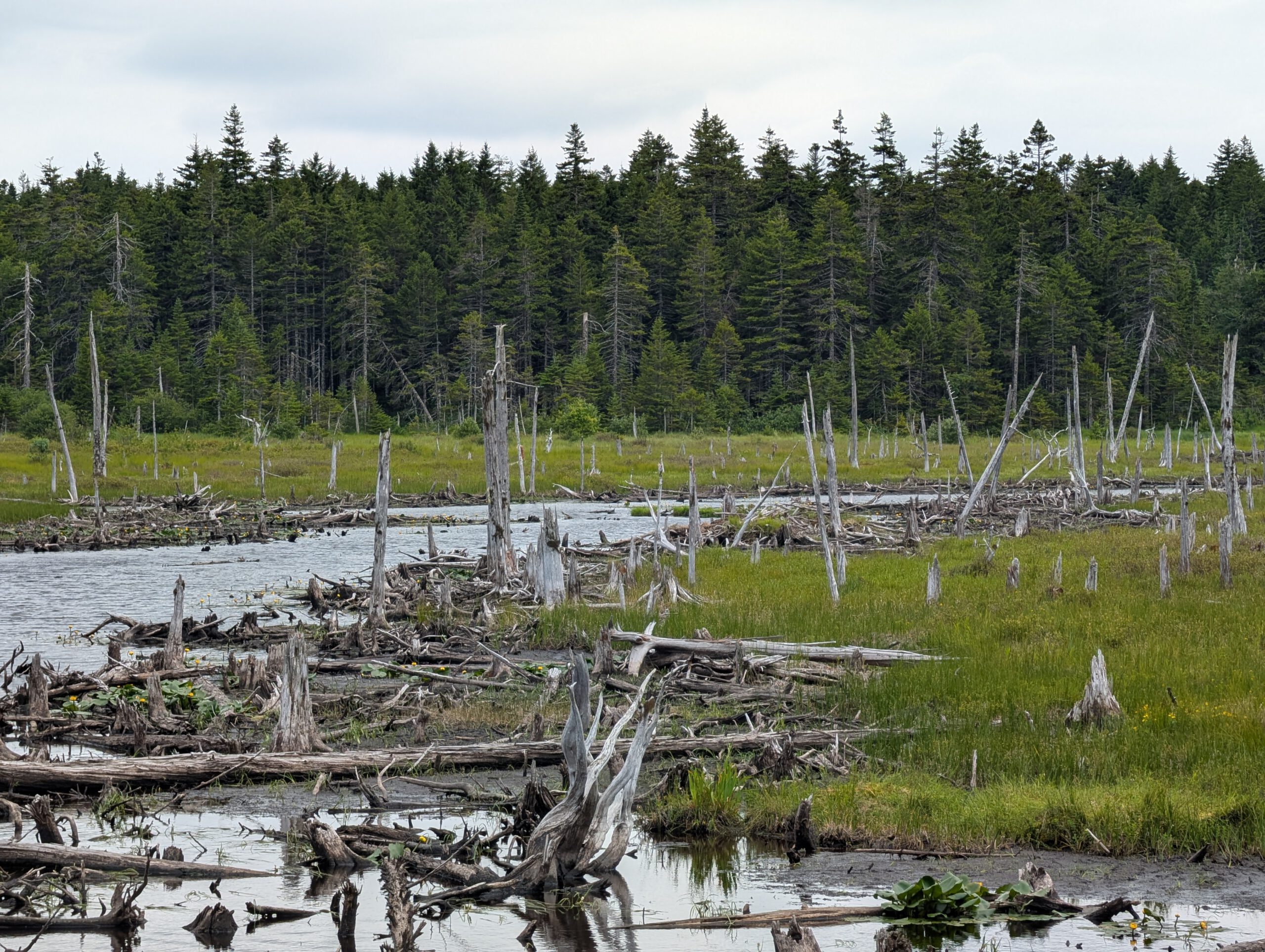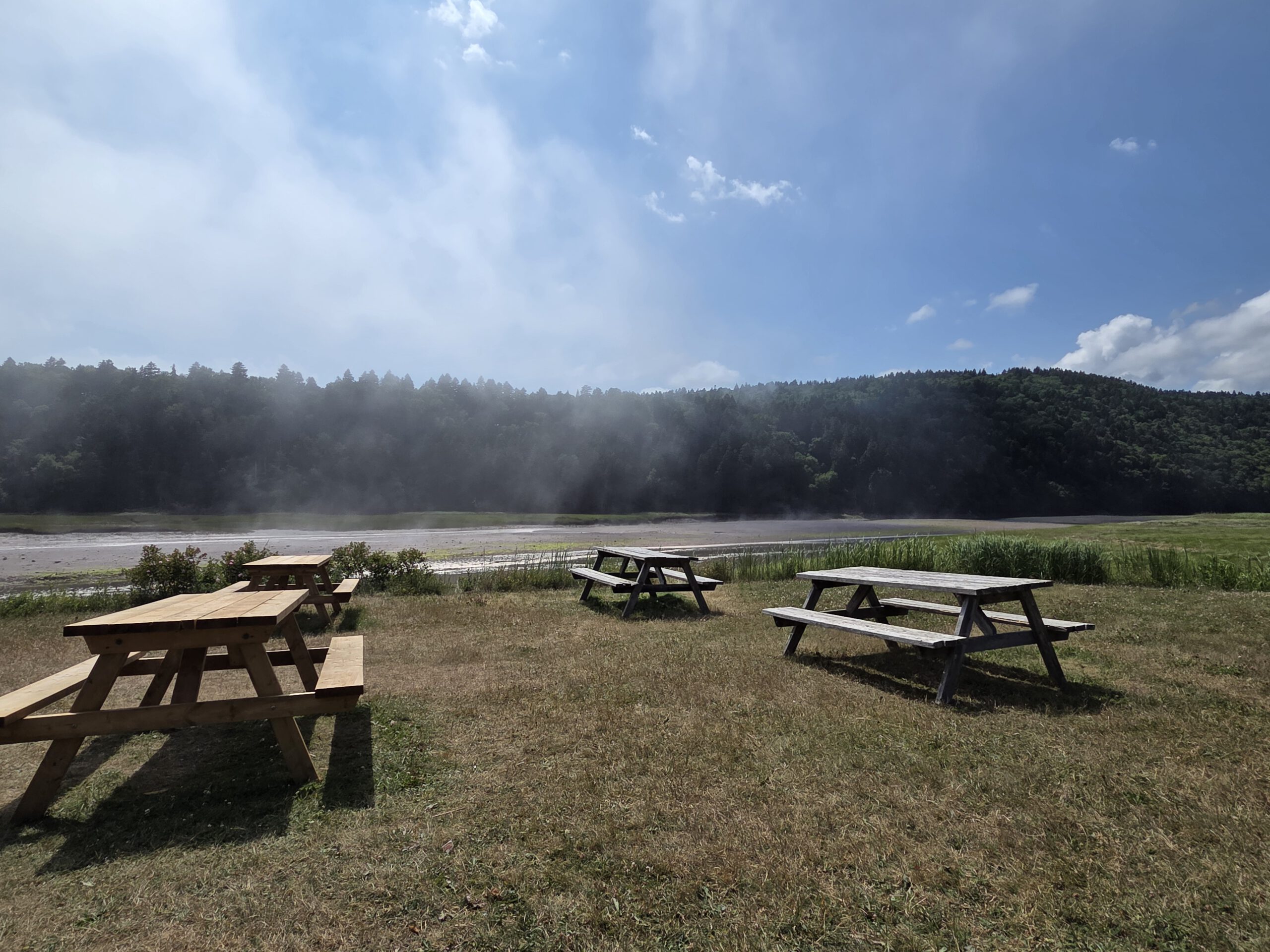 Was könnte man hier nicht alles unternehmen: Nach Malbaie und zu benachbarten Küstenorten. Die Waltour wiederholen. Eine Bärentour von ebenfalls 3 Stunden unternehmen. Den Nationalpark Grands Jardins ansteuern. Aber wir gehen es ruhig an: zum Frühstück die Bestände an Eiern und Speck verkleinern. Und dann zuckeln wir wieder zum Nationalpark um die Ecke.