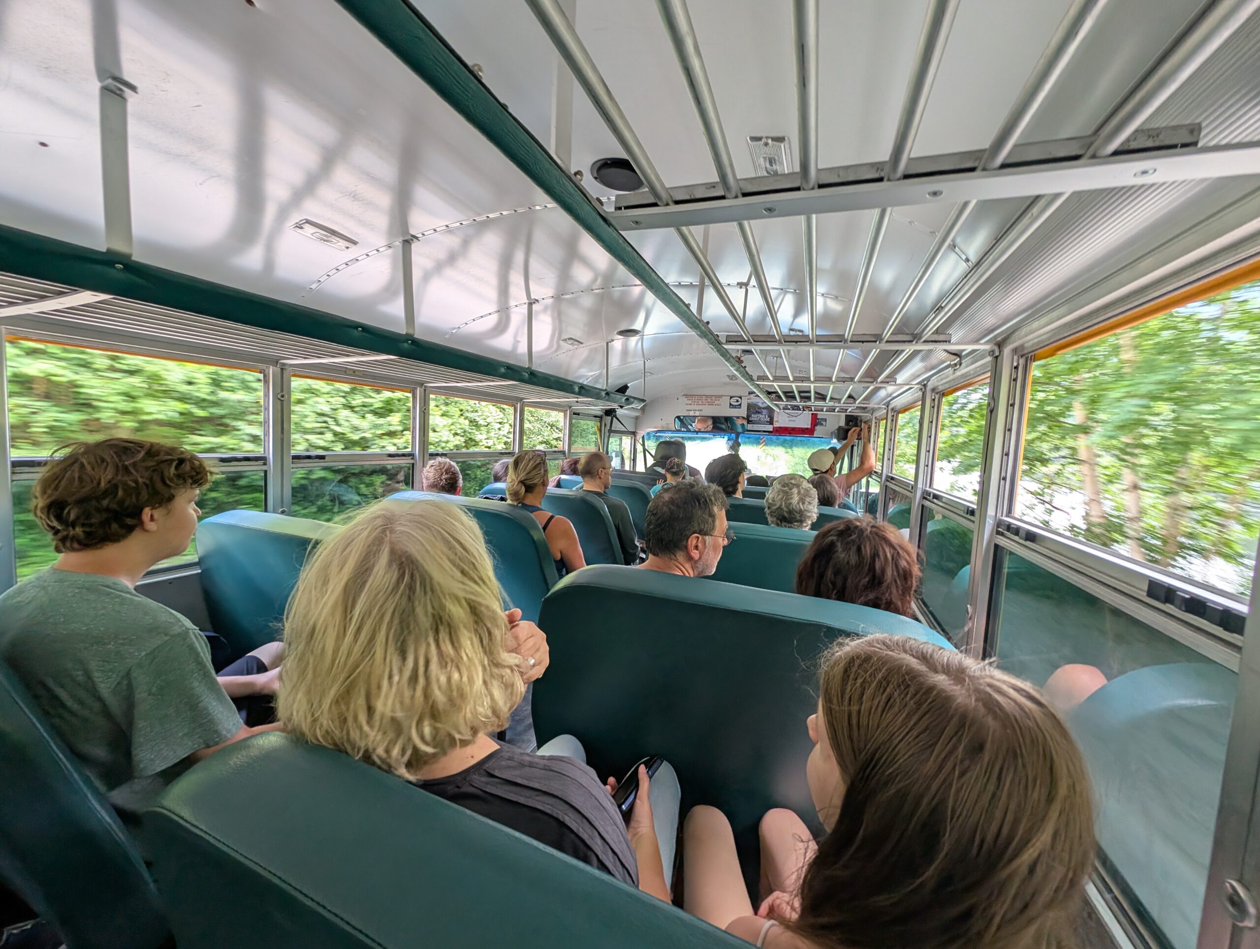 Wir steigen in den gelben amerikanischen Schulbus. Der betagte Fahrer hält derweil am Steuer ein Nickerchen. Zurück in der Ferienwohnung huschen alle unter eine heiße Dusche, denn langsam wurde es doch frisch. Und abends wird gegrillt.