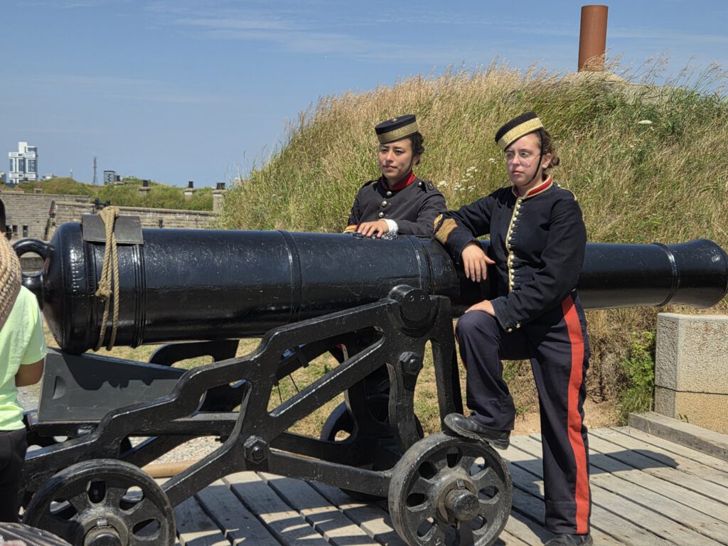 Die Schotten haben hier ihre Spuren hinterlassen: Sie stehen Wache, informieren über das Leben im Fort, feuern einen Kanonenschuss ab, spielen Dudelsack und trommeln. (In den Kilts stecken auch Studenten der lokalen Unis, heißt es im Reiseführer.) Ein sehr unterhaltsames Spektakel, mit einem Dudelsackkonzert, für das die Instrumente vorher lautstark gestimmt werden mussten. Ein Film informiert außerdem über die Geschichte von Halifax, das dank seines natürlichen, stets eisfreien Hafens auch in den Weltkriegen eine große Rolle spielte (diesmal: die britische Seite der Geschichte ... Hier ist übrigens wieder alles Englisch und Französisch.)