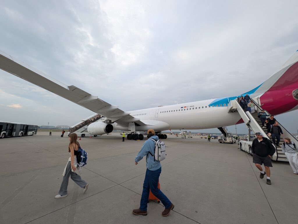Wir beobachten, wie unsere Maschine aus Namibia kommend landet. Etwas Verspätung beim Check-in - und dann sind wir nach nur 6 Stunden Flug zurück in Frankfurt! Ein Sprint zum Shuttle, Ausparken, nach Speyer fahren und in Tiefschlaf fallen. Waren das wirklich drei Wochen? Es ist noch viel Kanada übrig. Und das Visum gilt noch fünf Jahre.