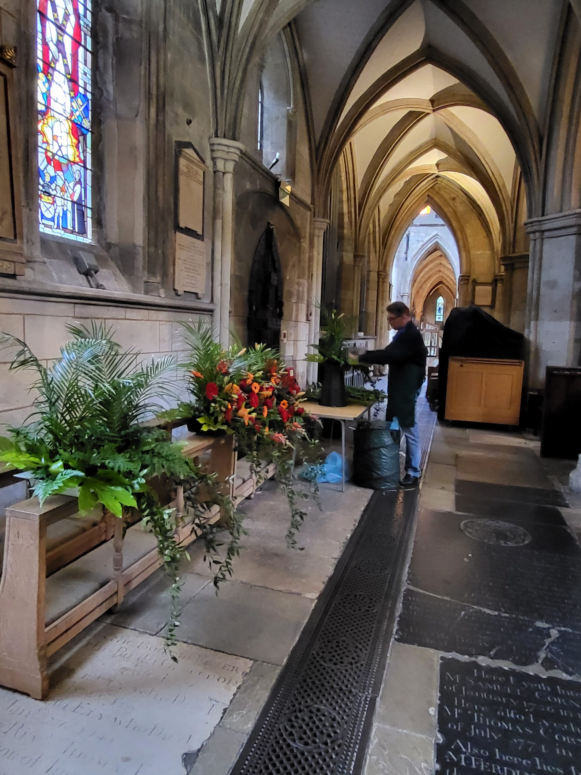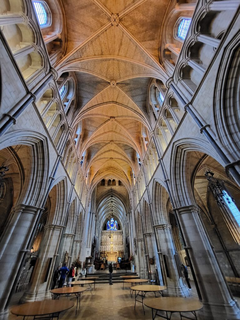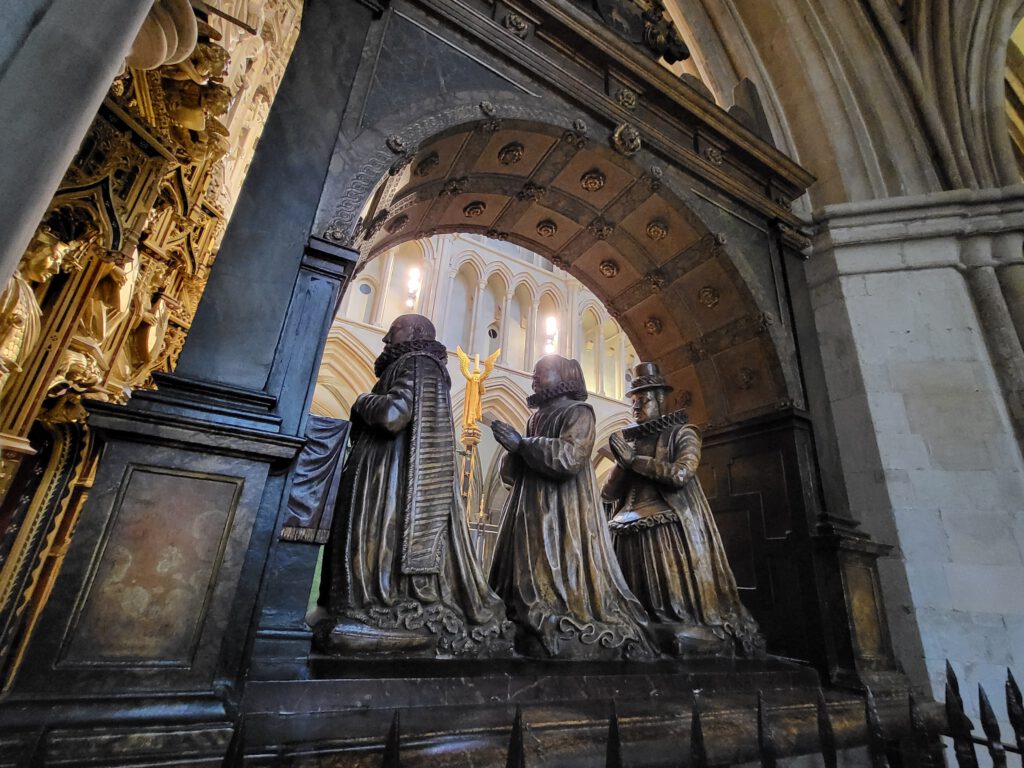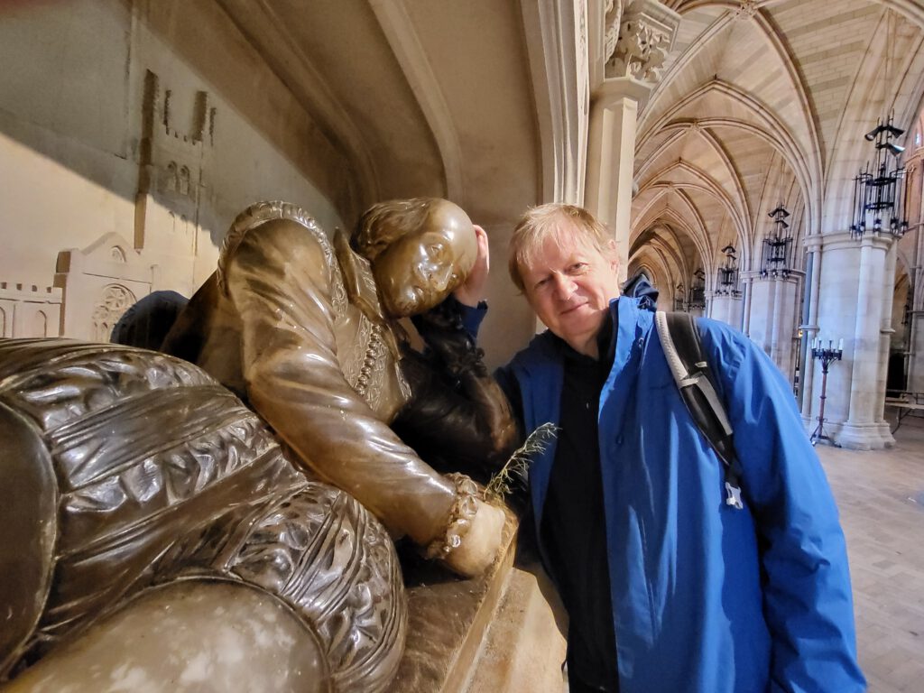 Wir fliehen in die gotische Southwark Kathedrale ums Eck, in der es schon deutlich ruhiger zugeht. Hauptattraktion ist eine liegende Statue von Shakespeare, der in der Gegend gewirkt hat. Offensichtlich bringt es Glück die Statue an Kopf und Knie zu berühren. Und im zur Kirche gehörigen Café gibt es auch eine kleine Einkehr, die ganz ruhig ist.