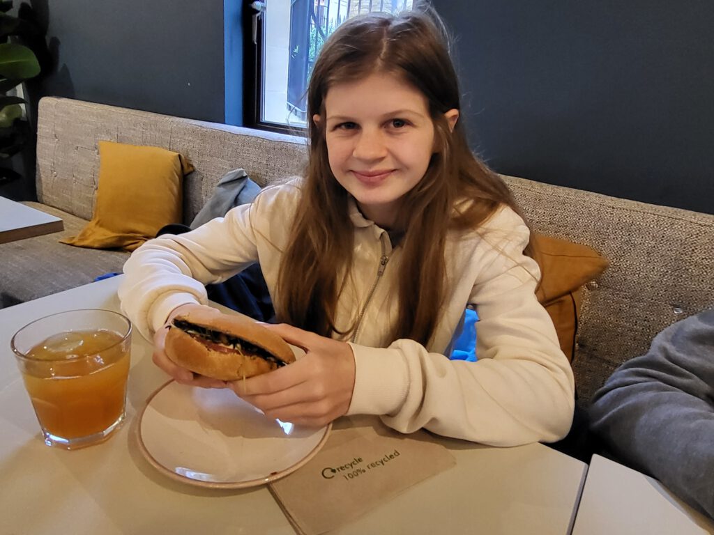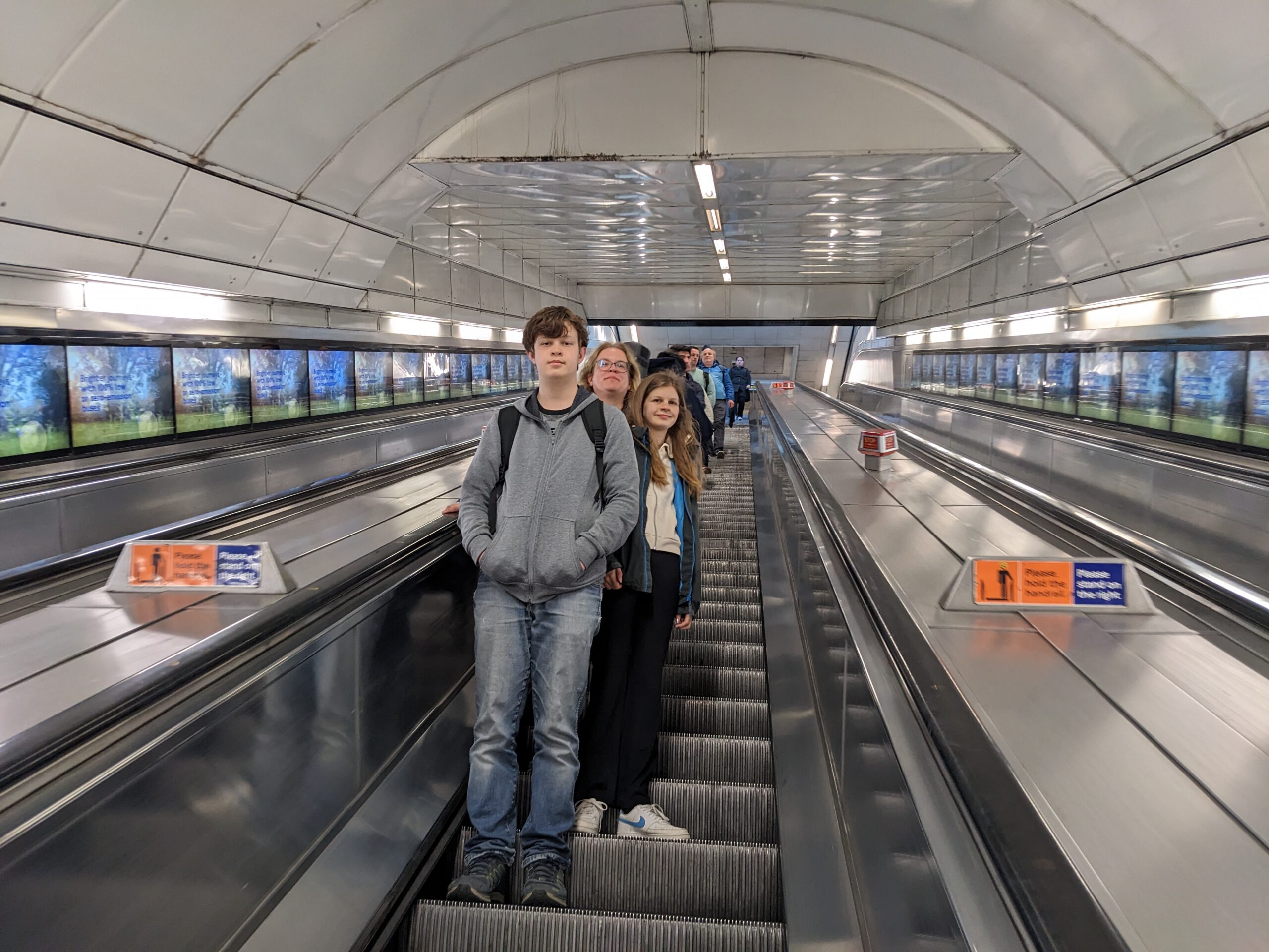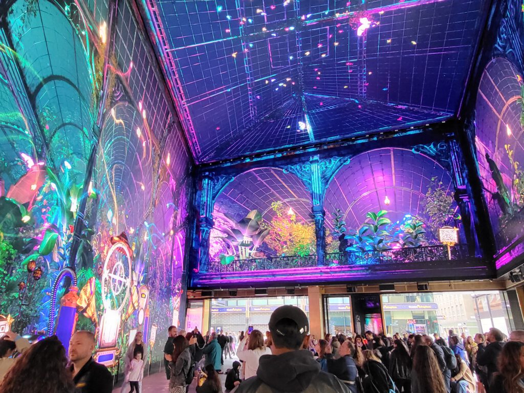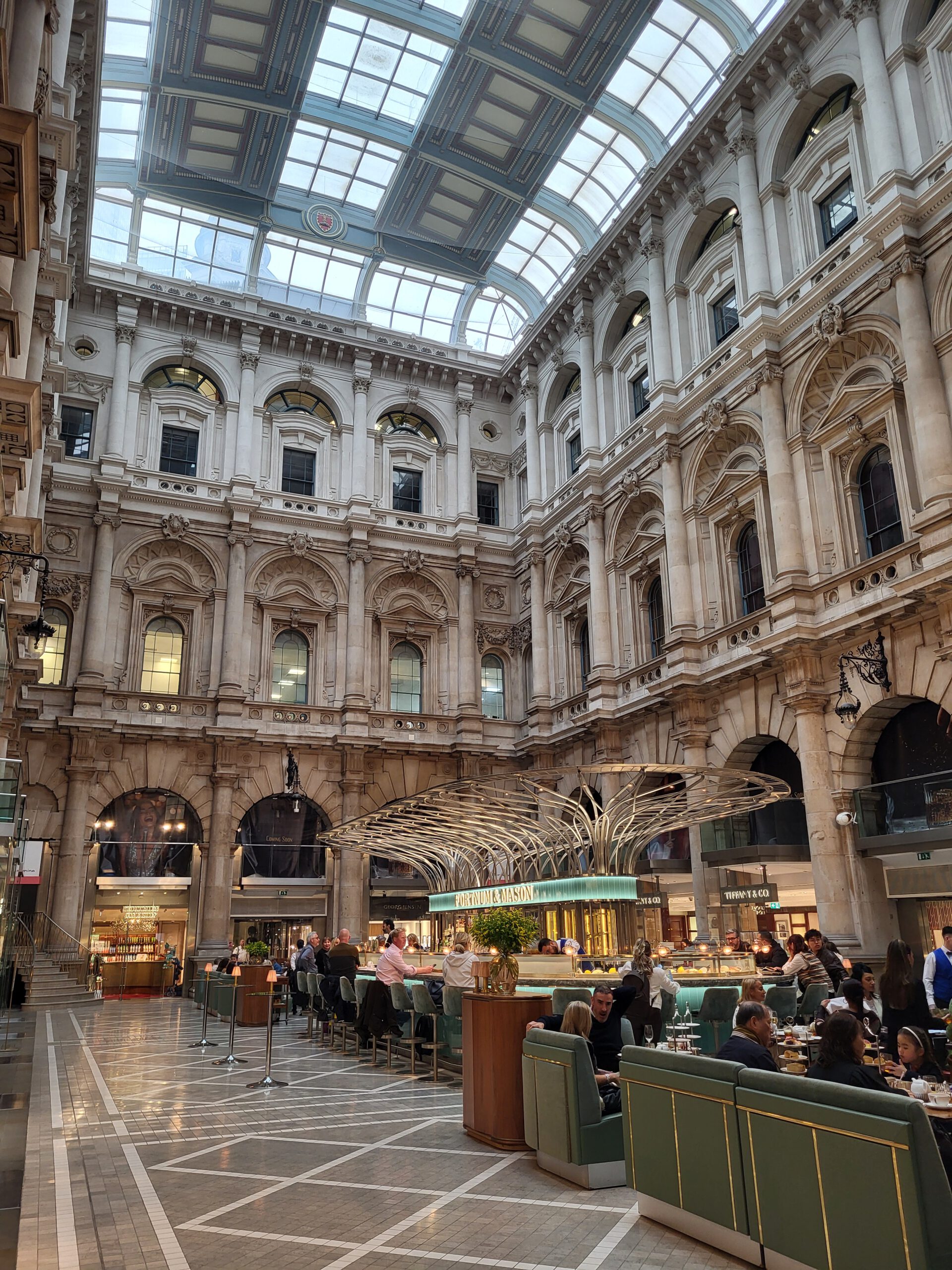 Weiter geht es, mit einem Blick in den noblen Royal Exchange, der ja am Feiertag auch geschlossen war. Die U-Bahn bringt uns zum Outernet, das in der Nähe von Soho und British Museum liegt. Das Outernet ist eine digitale Attraktion, unter anderem mit zwei großen, frei zugänglichen Räumen mit meterhohen Flächen. Auf diesen werden atemberaubende Filme, die extra für dieses Format gestaltet wurden, abgespielt. Sehr faszinierend, aber der große Nachteil: Es zieht wie Hechtsuppe. Irgendwann sind wir komplett durchfroren und flüchten uns in einen Buchladen. Dieser Waterstones hat tatsächlich im Keller ein Café und wir verweilen ziemlich lang. Kilian hat sein Herz für Mangas entdeckt und sucht fehlende Teile der Serie, die er schon begonnen hat. Nicole könnte einziehen.