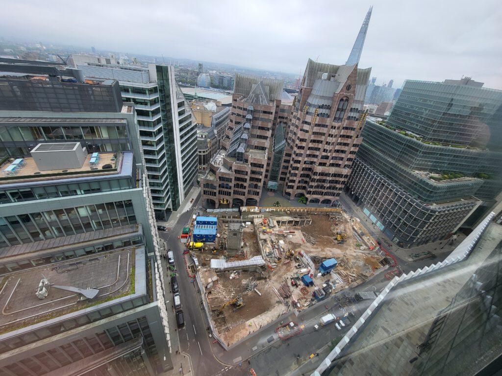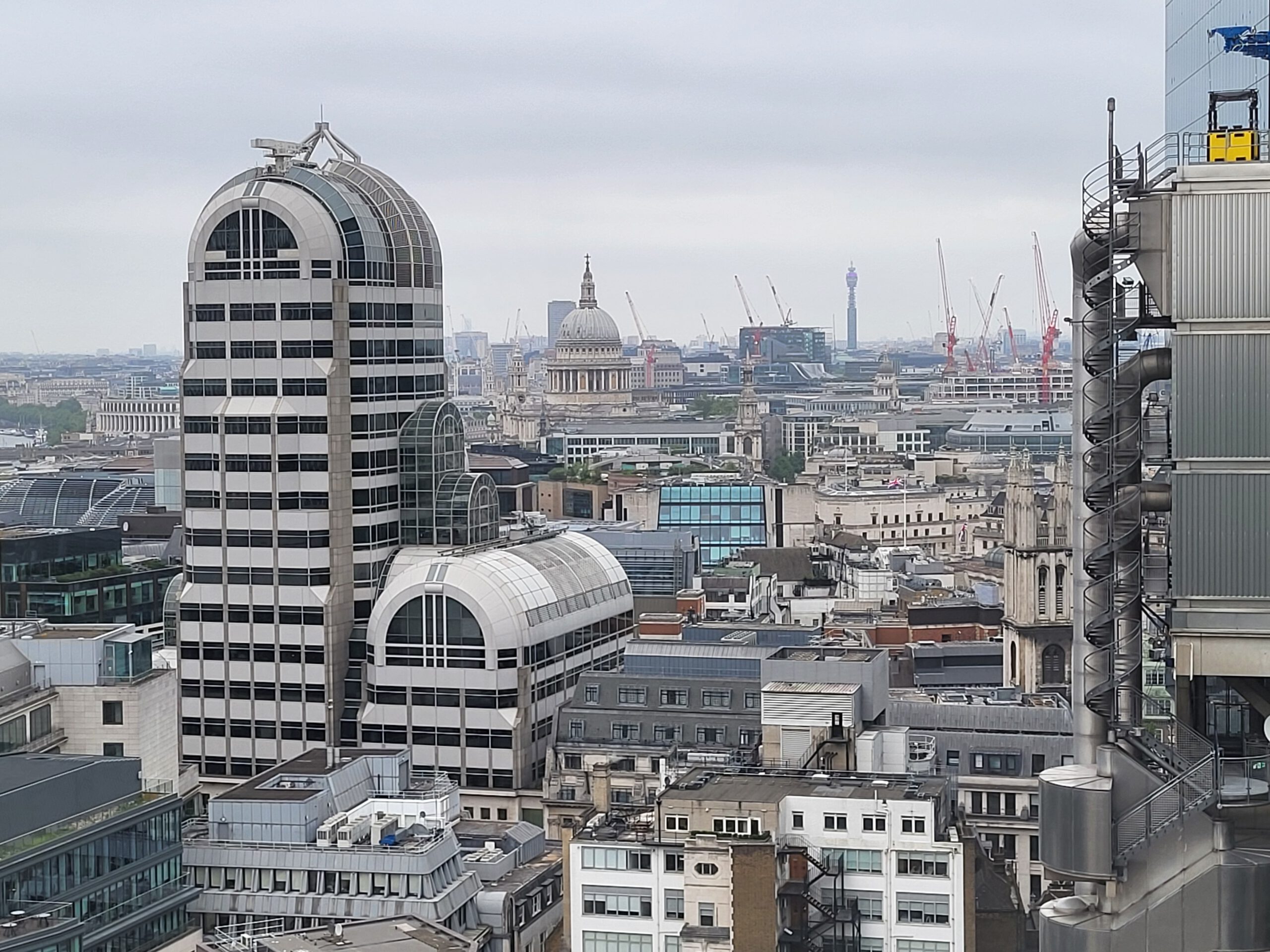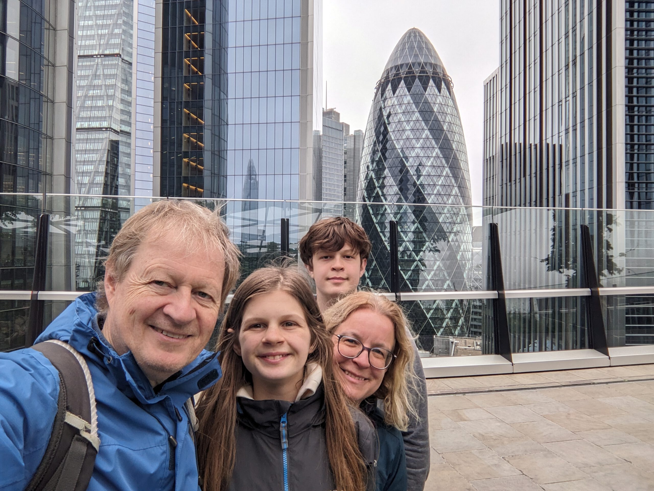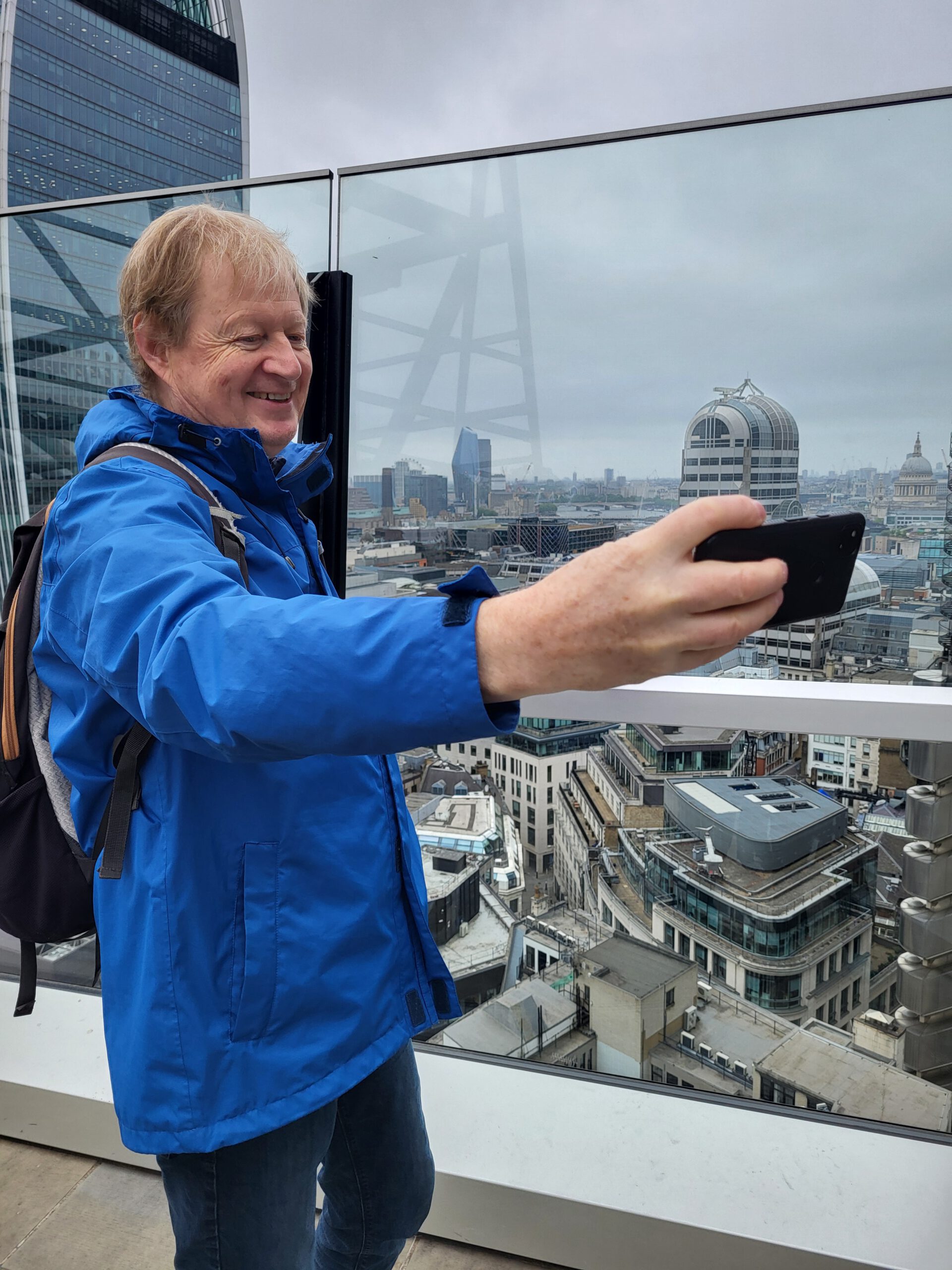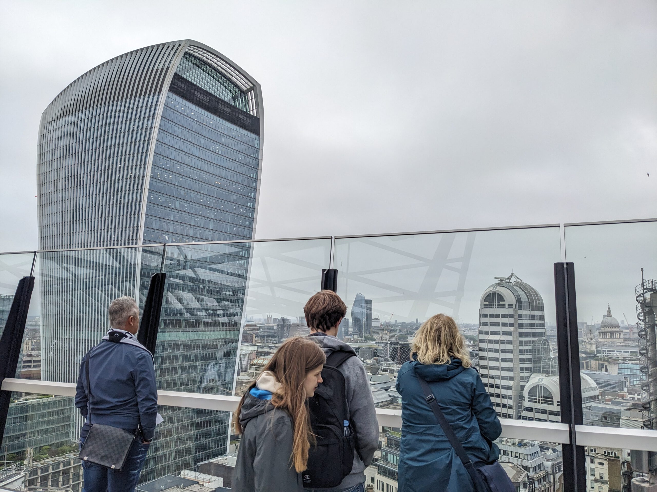 Ursprünglich hatten wir geplant, London von der ehemaligen Battersea-Power-Station (war mal auf einem Pink Floyd Cover) von oben zu sehen. Der Lift 109 führt an einem Schornstein nach oben. Aber bei näherem überlegen - knapp 80 Euro für sieben (!) Minuten schöne Aussicht? Stattdessen steuern wir den Garden at 120 an, da geht es kostenlos in den 15. Stock. Vorher muss man nur durch eine Schleuse wie am Flughafen, dann gelangt man zum Aufzug. Das Dach ist begrünt, die Sicht grandios. Erinnert uns an das Airbnb in Brisbane mit der großen Dachterrasse oder den Flughafen von Singapur, da sieht es ähnlich aus - allerdings liegen die Temperaturen heute bei zugigen 13 Grad. Wir bestaunen eine Dame, die ihre (arme) Katze im Rucksack mitgebracht hat und ihr jetzt Tanzbewegungen beibringen will. Zu der Truppe gehört auch ein sehr feminin in knallbunt gekleideter Herr, also viel zu sehen. Bilder gibt es natürlich keine.