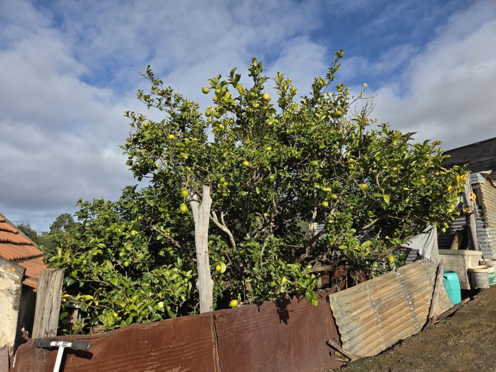 Ein kühler, ruhiger Vormittag. Großes Frühstück mit Kühlschrankresten, denn irgendwie hatten wir noch viele Eier. Mathelernen, erstes Aufräumen. Kurz nach 12 Uhr sind wir unterwegs. Erstmal in die Kirche in Prazeres, bei der man in die Empore kommt und damit den Deckenmalereien ganz nahe. Nebenan pflegt die Kirchengemeinden einen großen Garten, es gäbe auch ein Team House, aber es sind alle sehr mit Aufräumarbeiten beschäftigt, da wollen wir nicht näher stören. Die öffentliche Toilette ist übrigens, wie immer, sagenhaft. Im kleinen Supermarkt nehmen wir noch ein paar Teilchen für unterwegs mit.