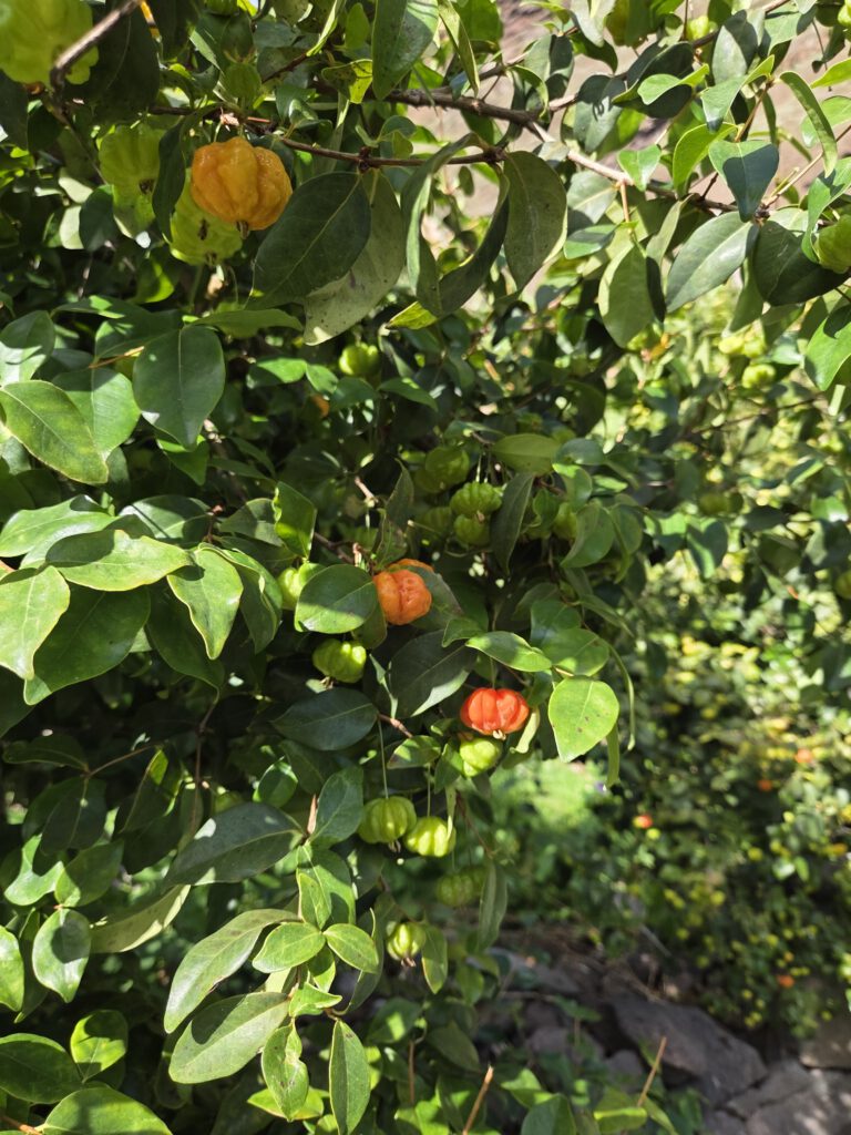 Nun gibt es eine Biolandwirtschaft, ein paar Ferienhäuschen (teuer) und ein Restaurant (leider nur bis 15 Uhr warme Küche). Viele Badegäste zahlen auch gerne die 12 Euro pro Person für die Seilbahn, um dort am Strand zu liegen. Selbst heute. Wir bekommen zunächst eine Führung über das Gelände - es gibt zahlreiche unterschiedliche Sorten Mango und Avocado, natürlich Papaya, Bananen über Bananen, die Pitanga-Frucht (auch: Surinam Kirsche), Guaven, etc etc.