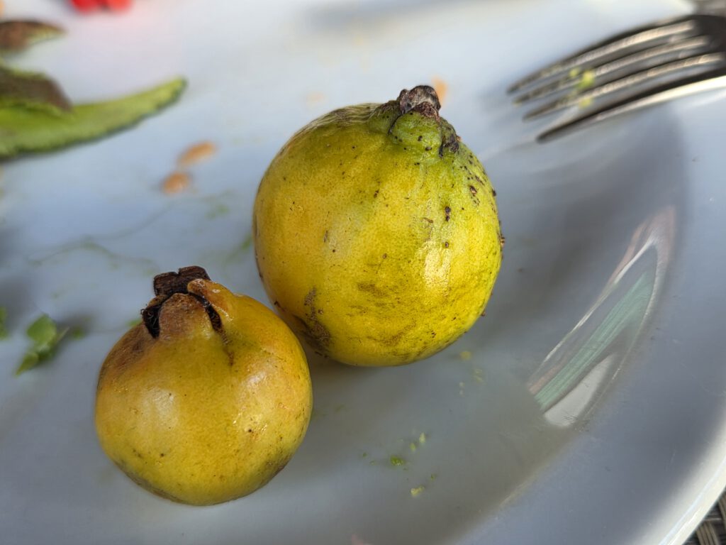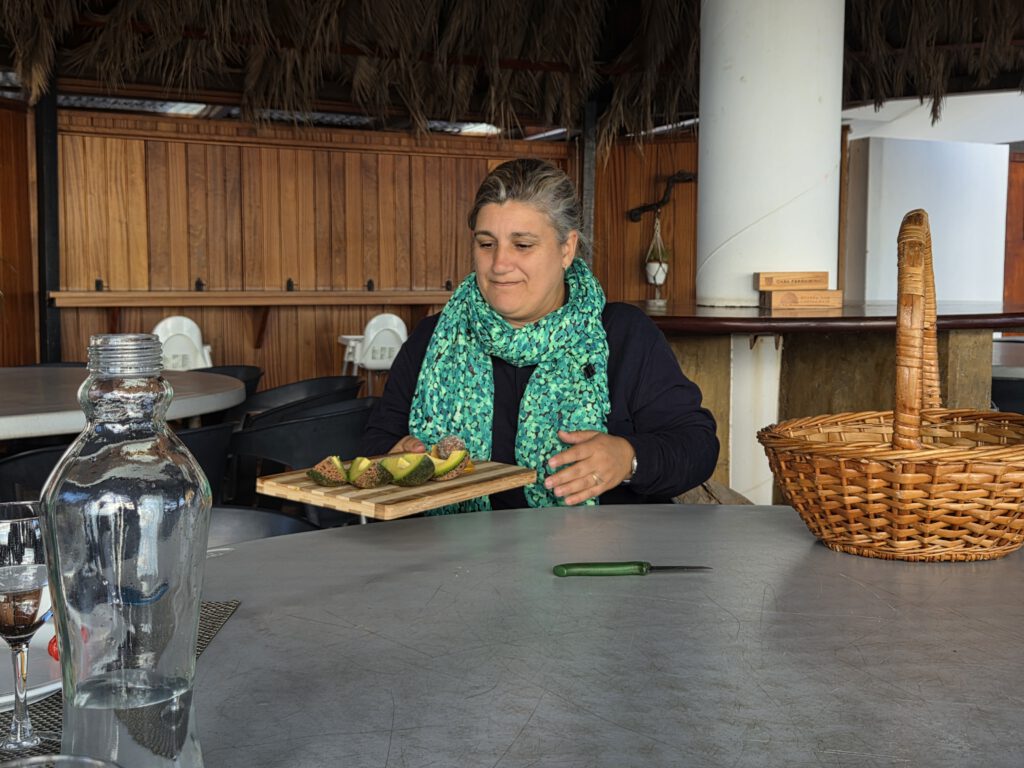 Beim Tasting selbst gibt es dann Pitangas in unterschiedlichen Reifegraden, die sehr faszinierend, lecker und tatsächlich auch unterschiedlich schmecken. Papaya, eine Avocado, die ganz anders ist, als die deutsche Supermarktware (natürlich besser), und Guaven. Und mangels reifer Mangos und Maracujas - gerade keine Saison - bekommen wir Avocado/Bananen/Pitanga und Guaven-Eis. Sehr fein.