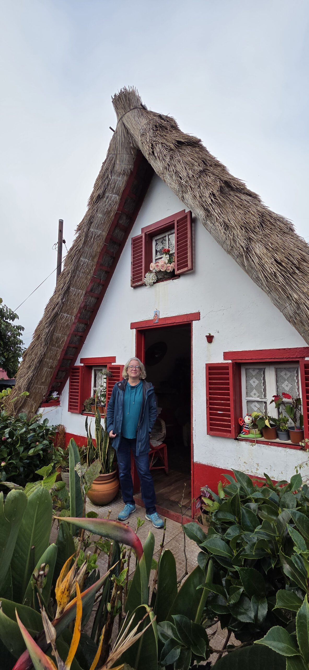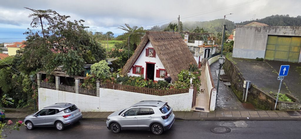Danach geht es durch inzwischen dicke Wolken nach Santana, noch ein bisschen Kultur schnuppern. In der Kirche ist noch viel Weihnachten mit Krippe. Während in Lissabon der Zauber am 6. Januar vorbei war, ist hier kein Ende in Sicht. Wir tippen jetzt auf Mariä Lichtmess. Im Ort gibt es noch an die 100 historische Casas die Colmo mit Strohdach, in vielen davon wird jetzt Nippes verkauft. Die Reiseleitung stolpert alleine in eines und bekommt direkt einen Likör in die Hand gedrückt: Ein älterer Herr zeigt das Haus seiner Großeltern, das Bett, in dem er geboren wurde, die weiteren Räume - durchaus spannend.