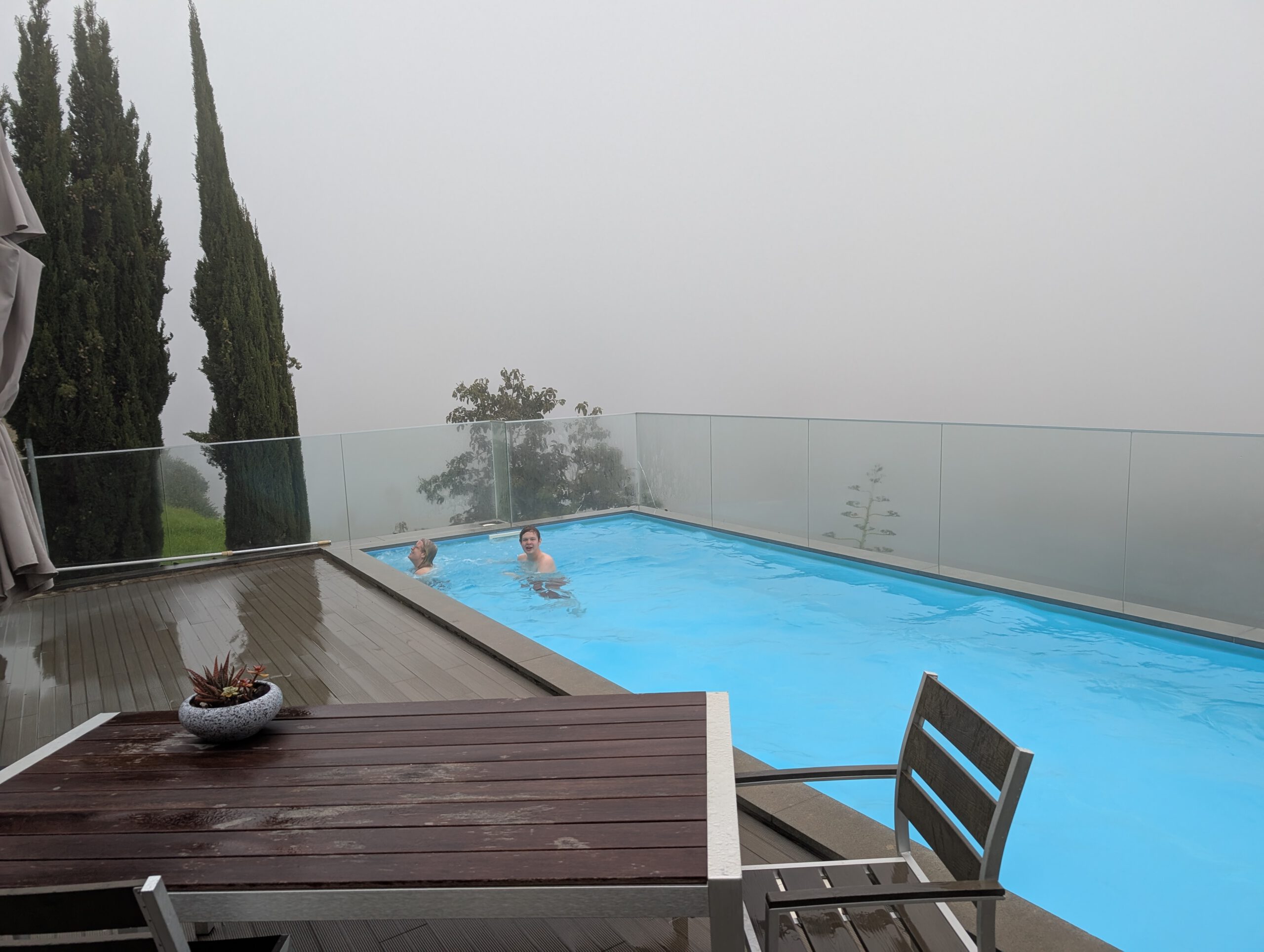 Nachts stürmt es, nachts regnet es. Morgens nieselt es und frisch ist es auch. Aber: die Klimaanlagen können auch heizen ... Und ganz hervorragend unsere Wäsche trocknen. Nicole schmökert sich weiter fest, in einem Krimi, den sie in der Vila Clementina im Regal gefunden hat. Louisa und Gerald lernen Mathe. Kilian chillt. Allerdings müssen wir noch einmal nach Funchal zu unserer ersten Unterkunft: Kilian hatte sein Original-Apple-Kabel dort vergessen, Vermieter Pedro hatte schon am Freitag zugesagt, es im zugänglichen Briefkasten zu deponieren. Doch als wir am frühen Nachmittag dort ankommen - ein leerer Briefkasten. Pedro bedauert, dass das Kabel noch nicht drin liegt, verspricht aber zu schauen...