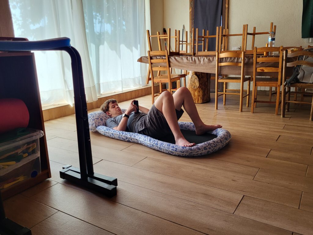 Aber grau ist alle Theorie. Oder das Leben ist das was passiert, während du andere Pläne schmiedest, wie der große John Lennon einst sagte. Denn nach einer Nacht mit Schüttelfrost und Fieber war schnell klar, dass das mit dem Museum schwierig werden würde. Alle vier hatten schlecht geschlafen und die Reiseleitung fühlte sich hundeelend. Hatte aber zum Glück, so von Frau zu Frau, Eva richtig eingeschätzt und am frühen Morgen schon einen Notruf per WhatsApp Nachricht ein Stockwerk höher geschickt: Ob sie vielleicht eine Idee hätte ....Hatte die weltbeste Vermieterin natürlich. Eva war selbst im Superstress, da ihr Mann nach einer Not-Op noch eine Woche im Krankenhaus bleiben muss, sie also alleine mit dem Sohn die Ferienwohnung auf Hochglanz polieren musste, weil die nächste Gäste schon um 13 Uhr kommen wollten. Aber sie hat kurzerhand den Partyraum umgeräumt, die Liege in ein Bett verwandelt, ein Klo gab es auch - witzigerweise wieder zwei Schüsseln nebeneinander - und wir dürfen dort so lange bleiben, wie wir wollen. Zwei hängen in Hängematten ab, eine kümmert sich liebevoll um Luna, inzwischen Lunchen genannt, eine döst auf dem Bett. Die bestmögliche Lösung.