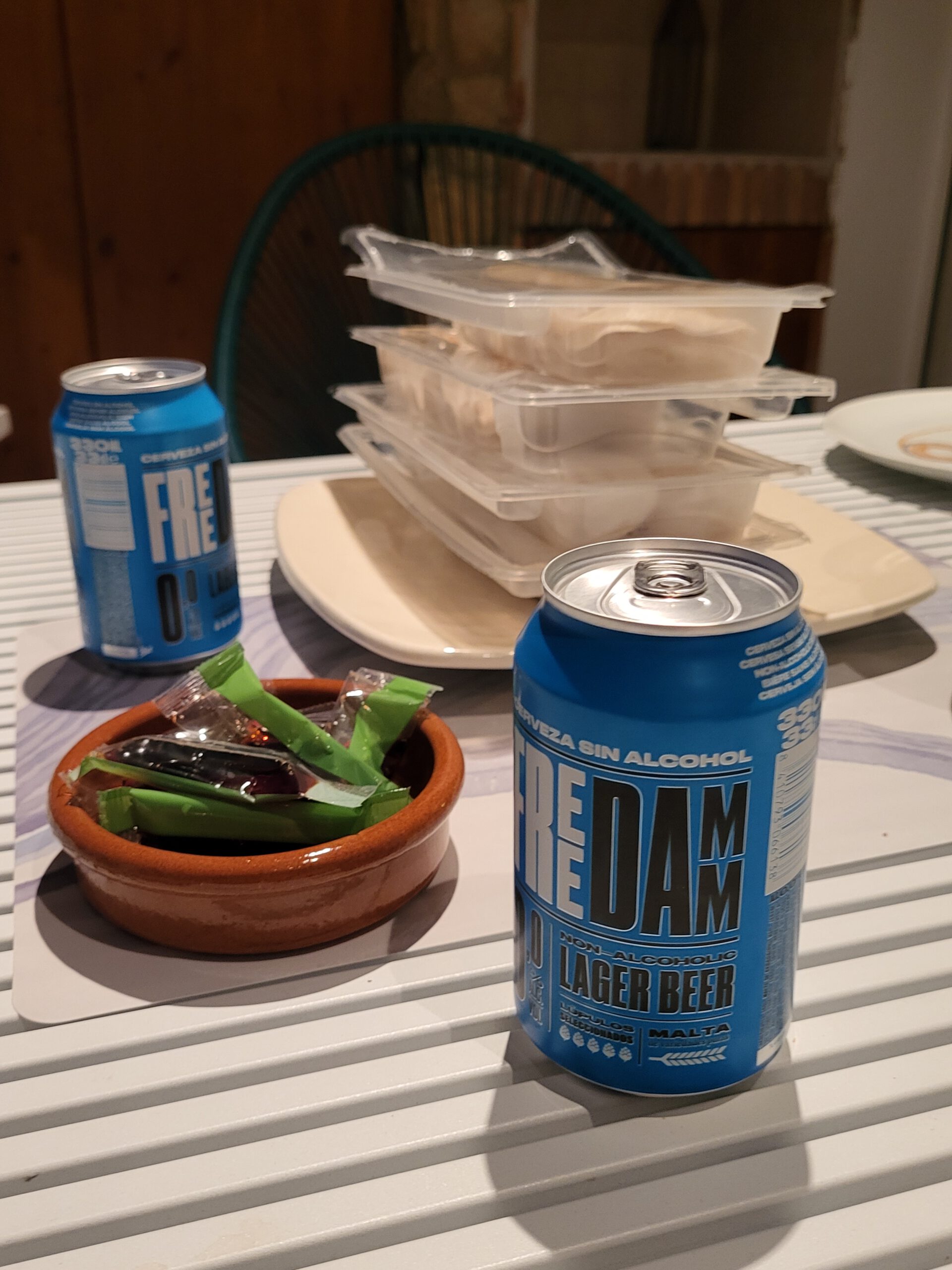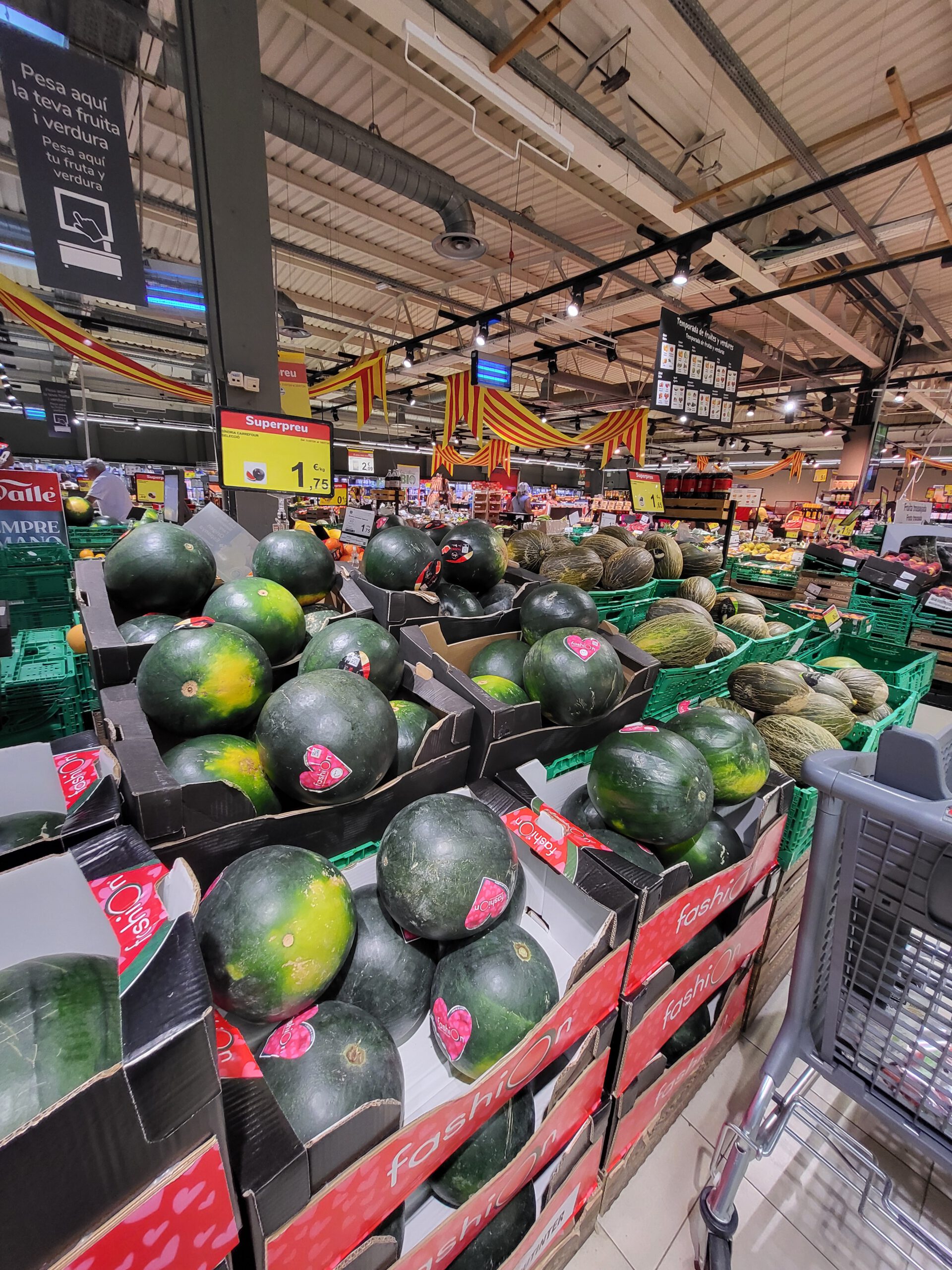 Wir richten uns etwas ein. Dann geht es zur Apotheke, um harte Drogen für die Reiseleitung zu besorgen. Die Fachfrau lächelt wissend: Nach zwei Tabletten sollte der Zauber vorbei sein, ansonsten gerne mehr nehmen, macht garnichts. Danach geht es zum einen Carrefour am Ortsrand. Die französischen Touristen sind hier so dominant, dass alles dreisprachig ausgezeichnet ist - catalan, spanisch und französisch. Außerdem ist er in der Saison von 8 bis 24 Uhr geöffnet. Wir kaufen für die nächsten Tage ein und freuen uns auf eine ruhigere Nacht. Ist ja nicht so schwer.