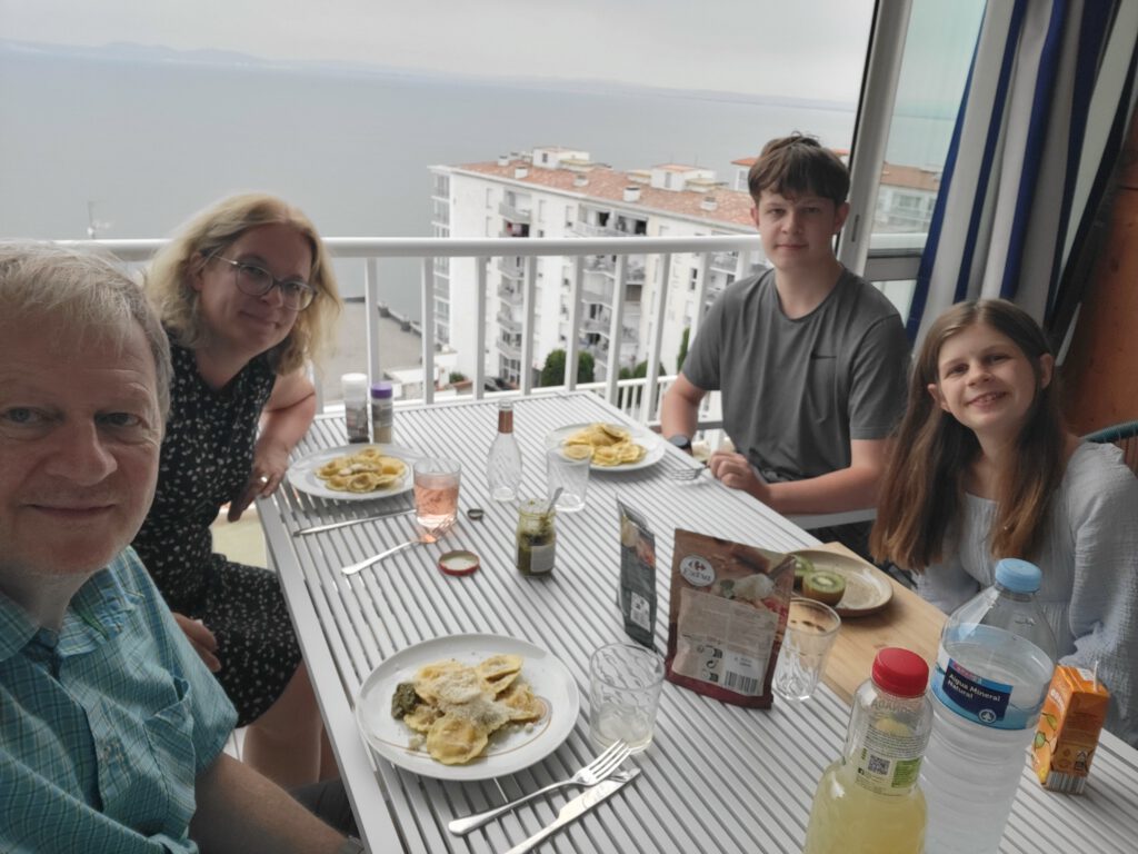 Gegen 17.30 Uhr sind wir zurück. Siesta. Chillen. Von der Terrasse aufs Meer schauen. Hotdogs essen. Noch mehr aufs Meer schauen.