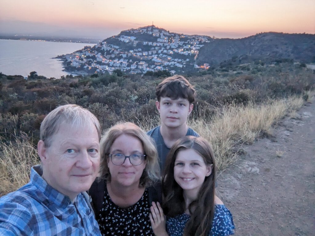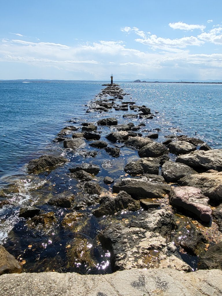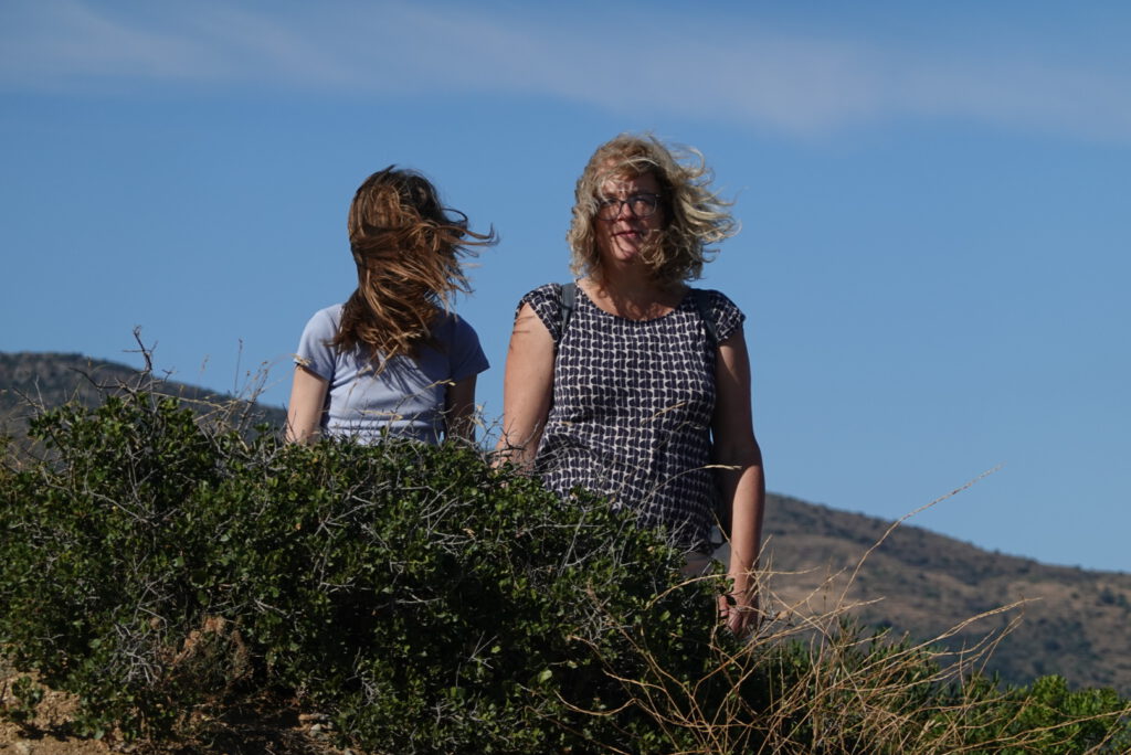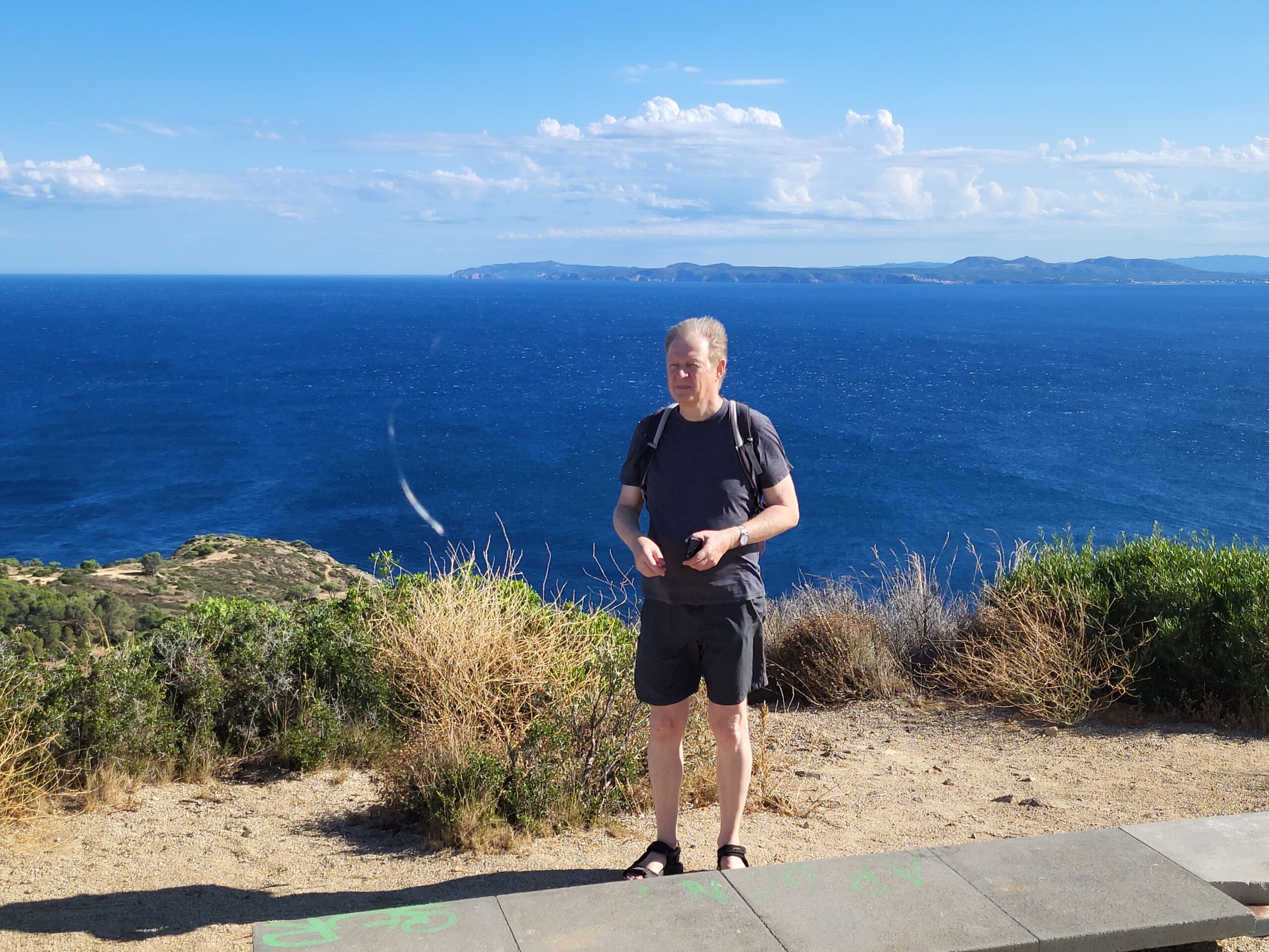 Also verbringen wir den Samstag im Schatten, heruntergekühlt und chillen. Was drei von vier überhaupt nicht stört, denn so viel Ruhe war selten. Die Reiseleitung schmollt und schlürft kannenweise Kamillentee. Abendessen wird gekocht, danach wollen wir eigentlich noch zum Sonnenuntergang auf einen Berg. Aber unser alter Kumpel Google Maps hat uns Mal wieder auf eine Route gelockt, die von einer Schranke gesperrt ist. Och neeee. Wir sehen um die Kurve noch, wie die Sonne in den Wolken versinkt. Danach nehmen wir eine andere Route, so weit wie es geht, und laufen etwas über die Wege, die schon zum Nationalpark Cap Creus gehören. Laute Zikaden und eine wunderschöne Sicht auf den Strand von Almadrava. Und morgen soll es zehn Grad weniger haben, regnen und stürmen. Wir sind gespannt.