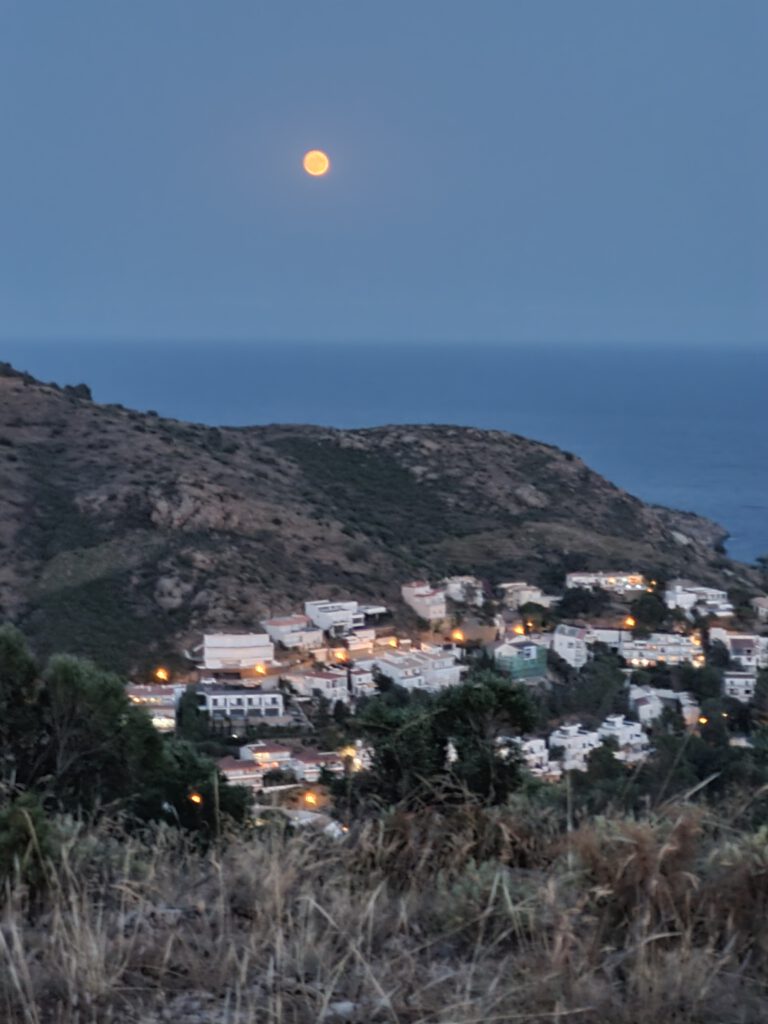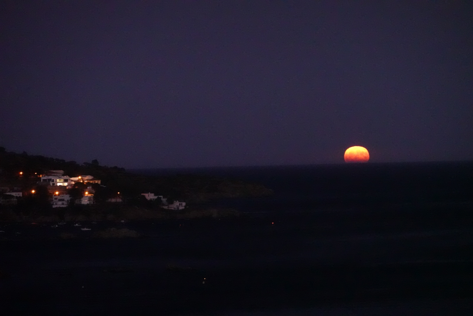 Von unserer Terrasse aus sehen wir, wie der Wind das Meer wieder aufpeitscht. Der Mond geht unfassbar schön auf und entschädigt dafür, dass der Sonnenuntergang von uns aus nicht zu sehen ist. Fledermäuse zischen vorbei. Und es ist weiter angenehm kühl.