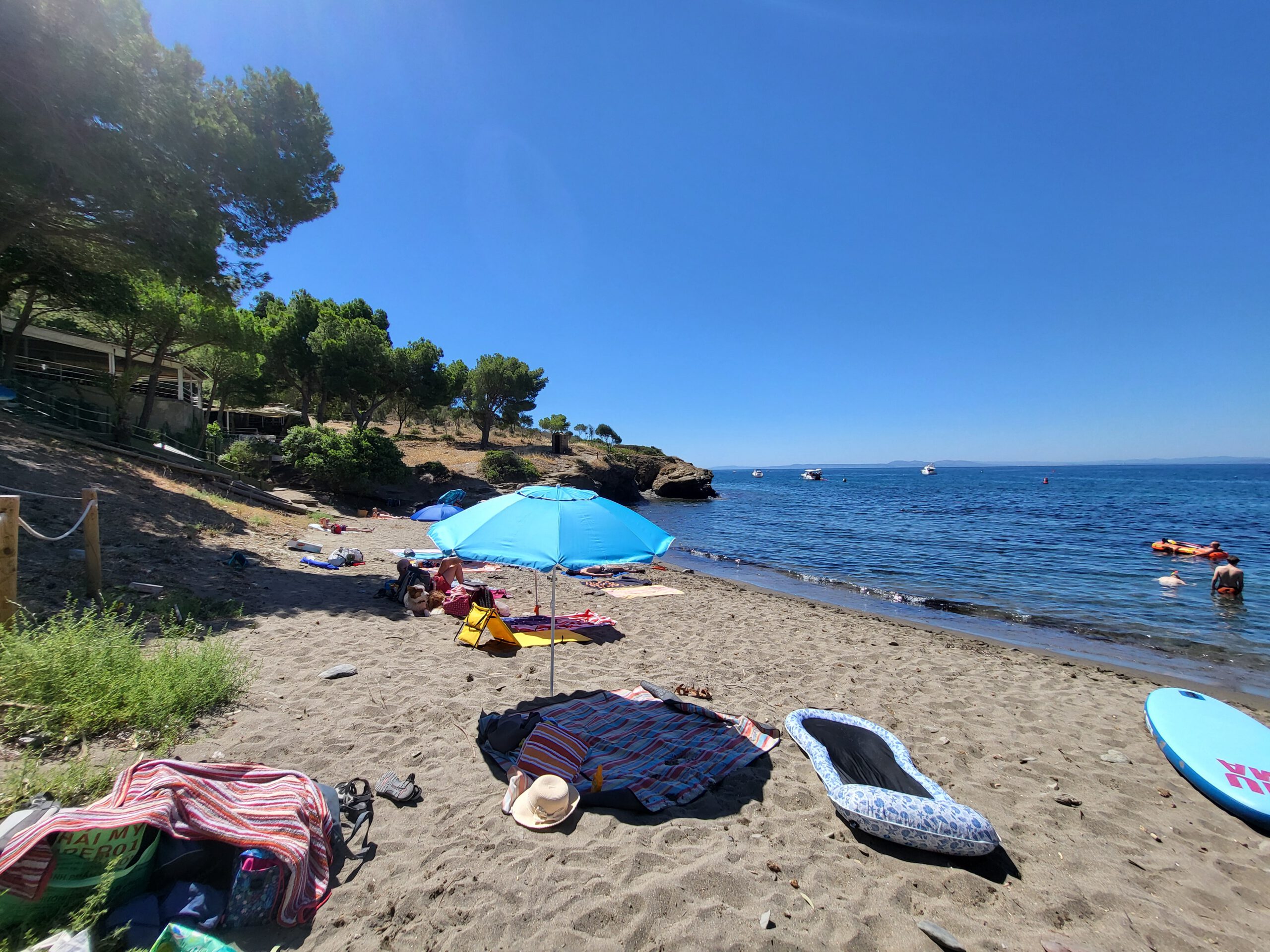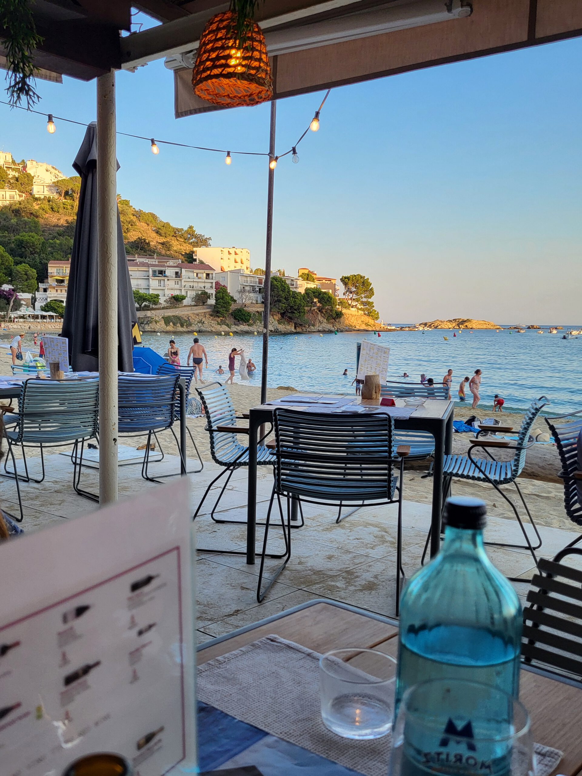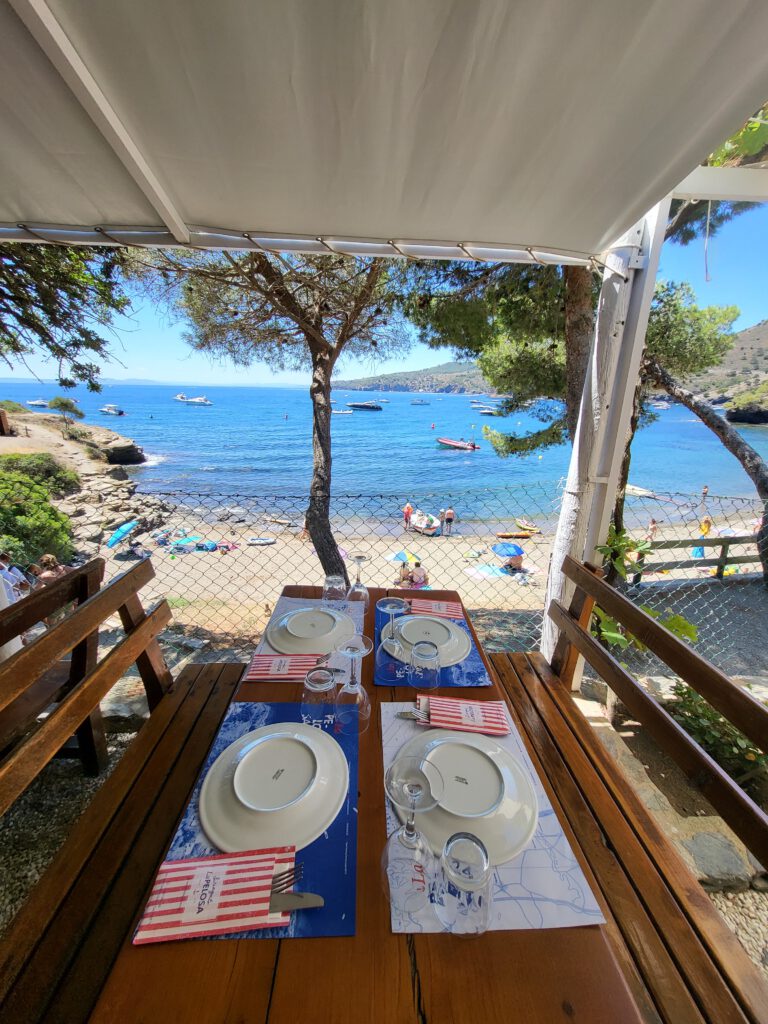 Gesagt, getan: Wir haben einen Tisch auf 13.30 Uhr reserviert. Um 11.24 Uhr passieren wir den Kontrollpunkt und fahren in den Park. In diesem befinden sich noch genug Autos, zumal an den Zugängen zu Stränden, aber der größte Ansturm wird so vermieden. Zumindest auf dem Landweg. Denn womit die Buchten knallvoll sind, sind die kleinen und großen Yachten, die zum Beispiel aus Empuriabrava stammen. Das ist auch am Strand Pelosa nicht anders. Aber: Es gibt noch sehr viel Platz, es ist wieder diese sehr entspannte Stimmung, null Lärm, null dröhnende Musik. Und nachdem wir am Morgen noch einen Sonnenschirm gekauft haben, können wir dort einen gechillten Tag verbringen.