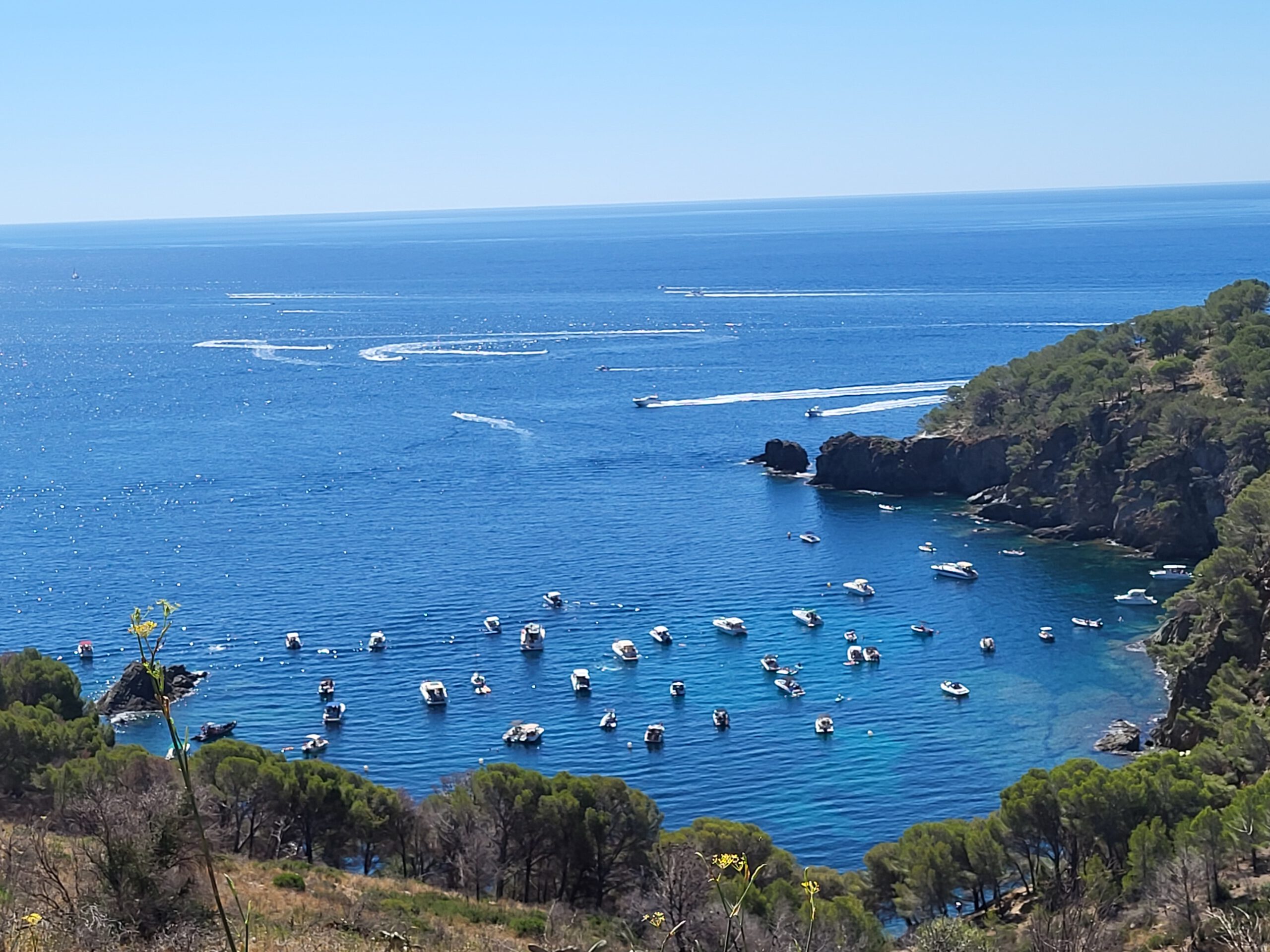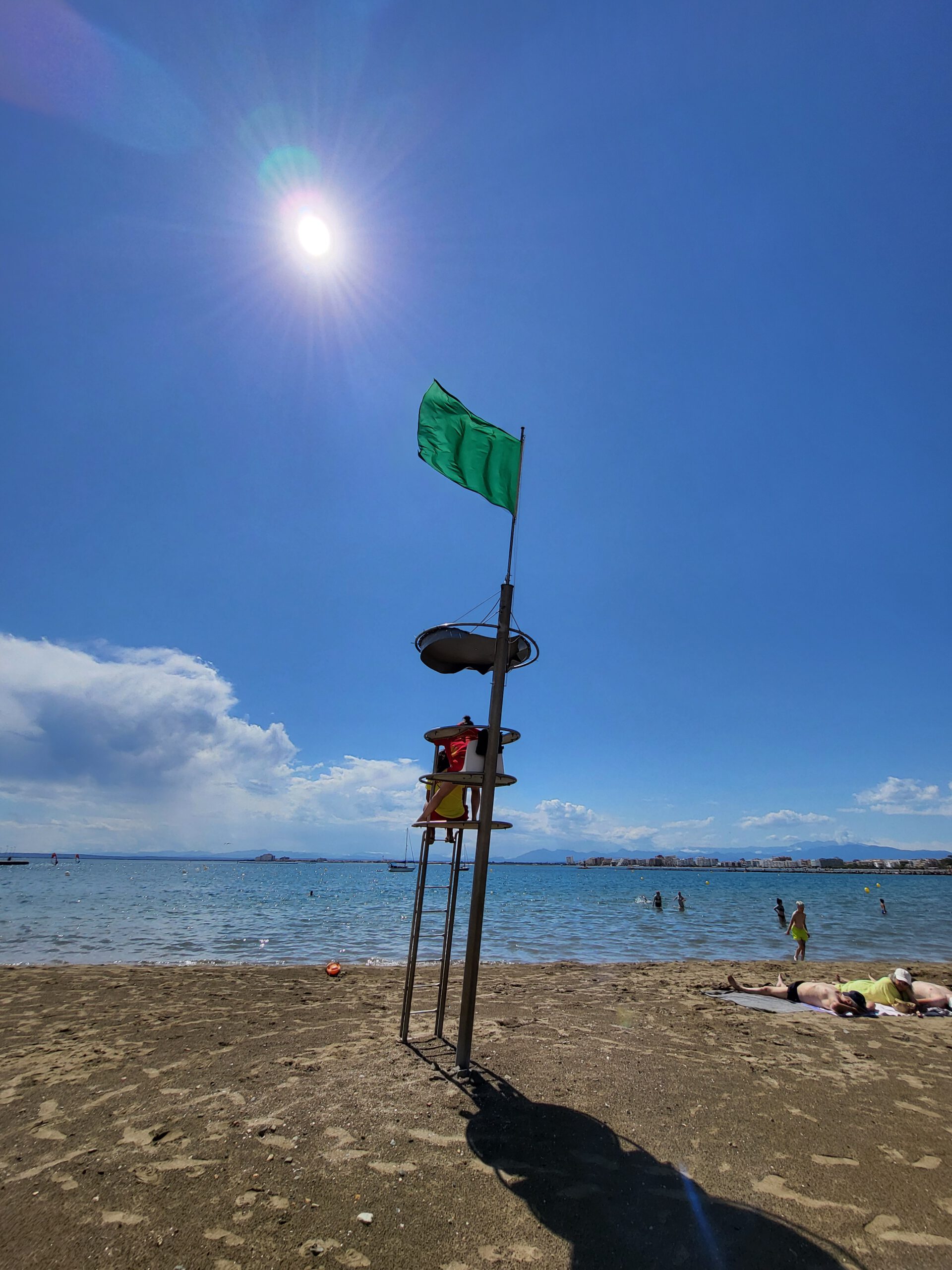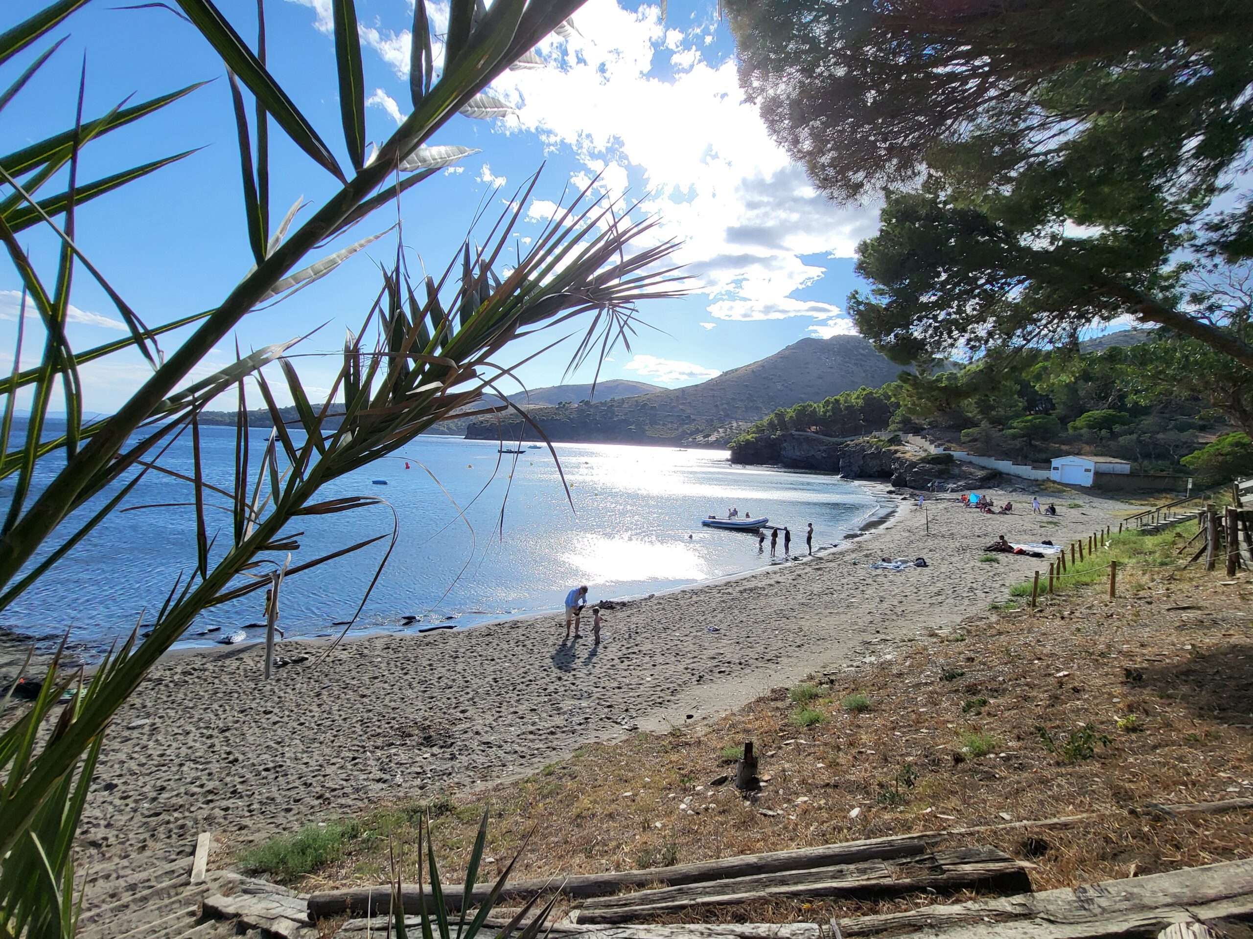 Gesagt, getan: Wir haben einen Tisch auf 13.30 Uhr reserviert. Um 11.24 Uhr passieren wir den Kontrollpunkt und fahren in den Park. In diesem befinden sich noch genug Autos, zumal an den Zugängen zu Stränden, aber der größte Ansturm wird so vermieden. Zumindest auf dem Landweg. Denn womit die Buchten knallvoll sind, sind die kleinen und großen Yachten, die zum Beispiel aus Empuriabrava stammen. Das ist auch am Strand Pelosa nicht anders. Aber: Es gibt noch sehr viel Platz, es ist wieder diese sehr entspannte Stimmung, null Lärm, null dröhnende Musik. Und nachdem wir am Morgen noch einen Sonnenschirm gekauft haben, können wir dort einen gechillten Tag verbringen.