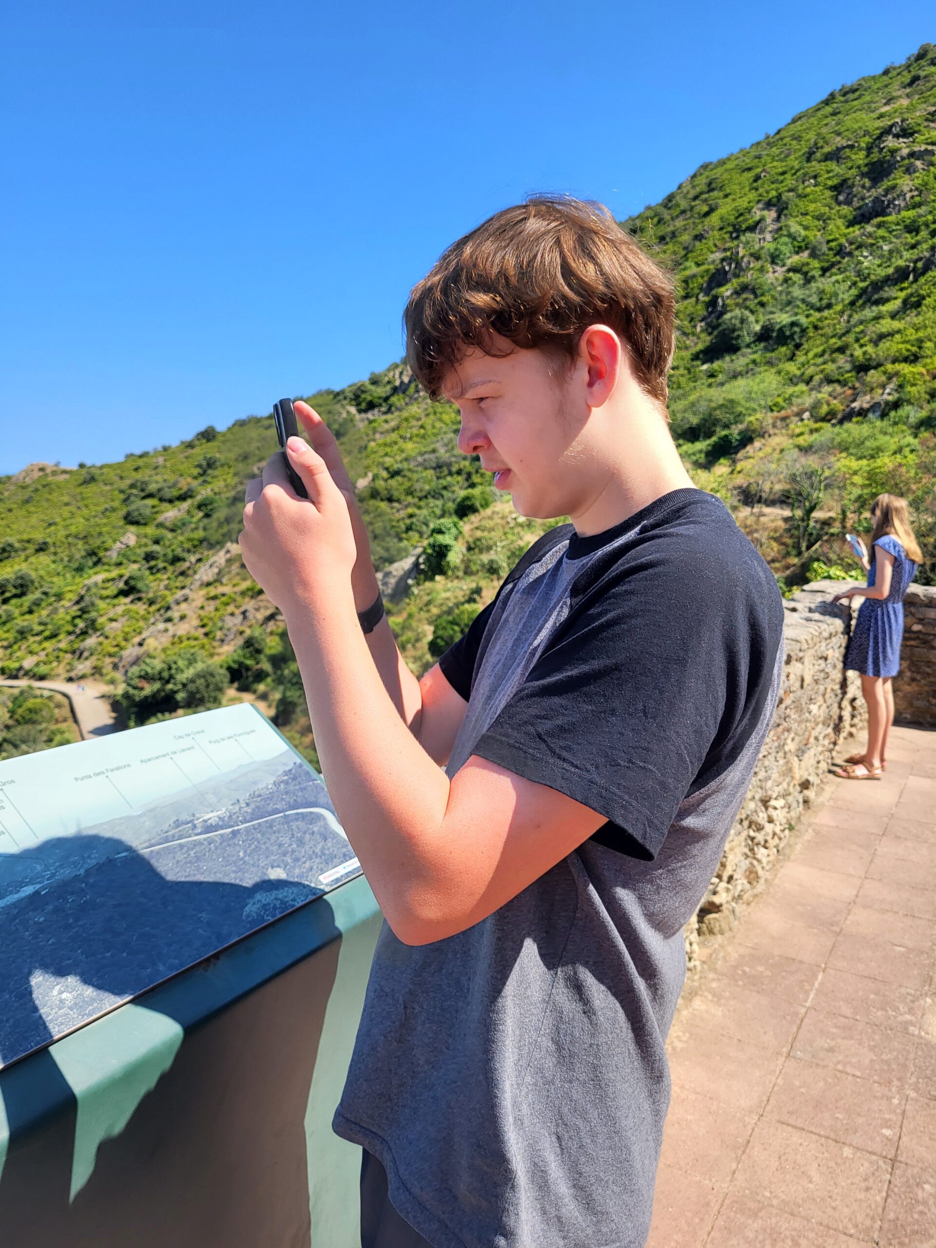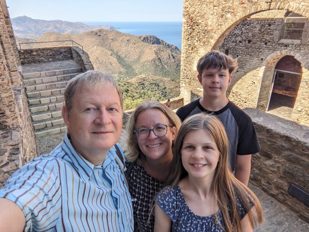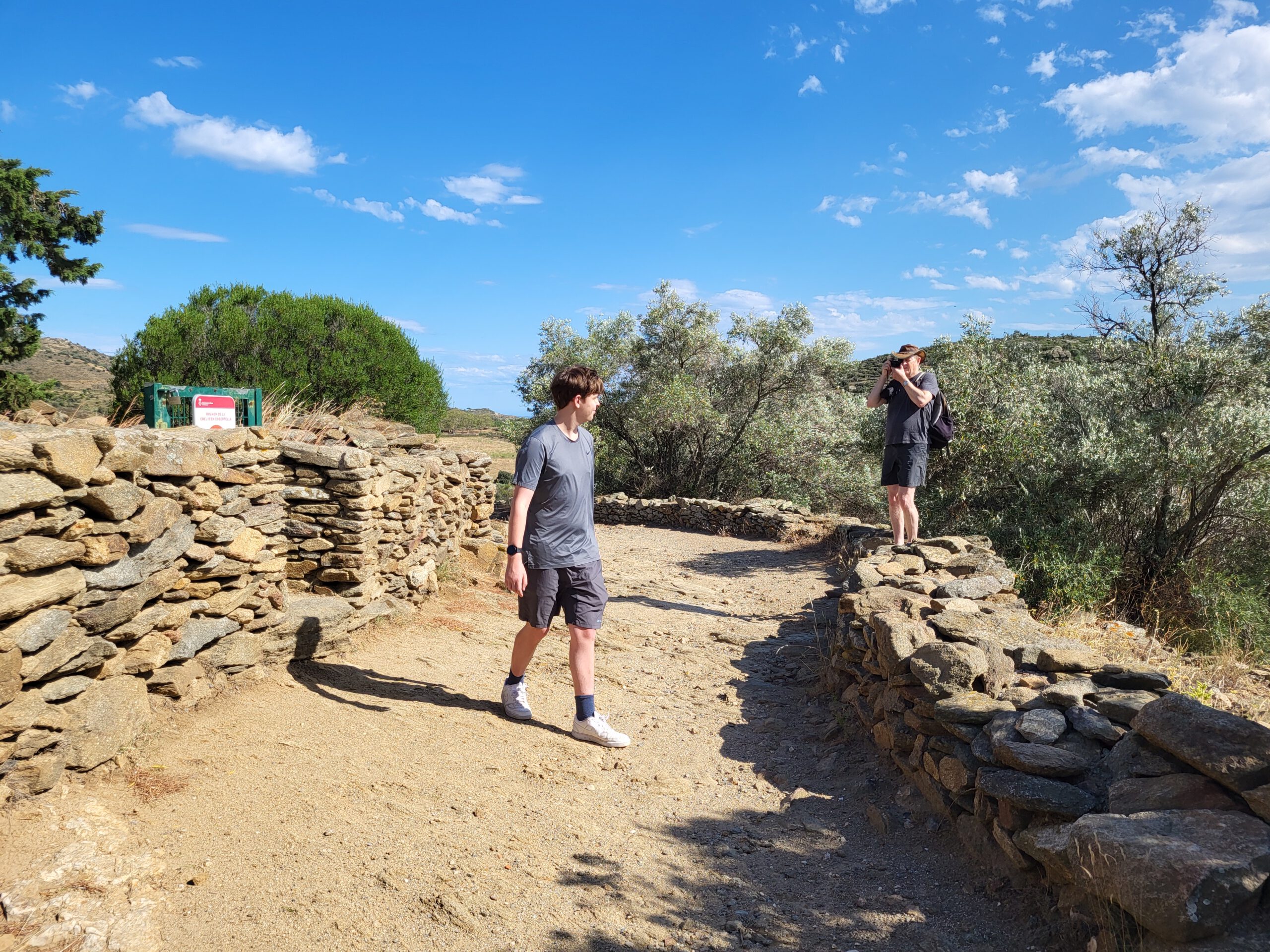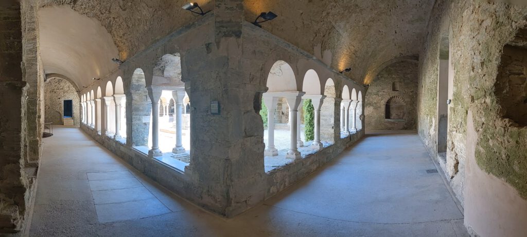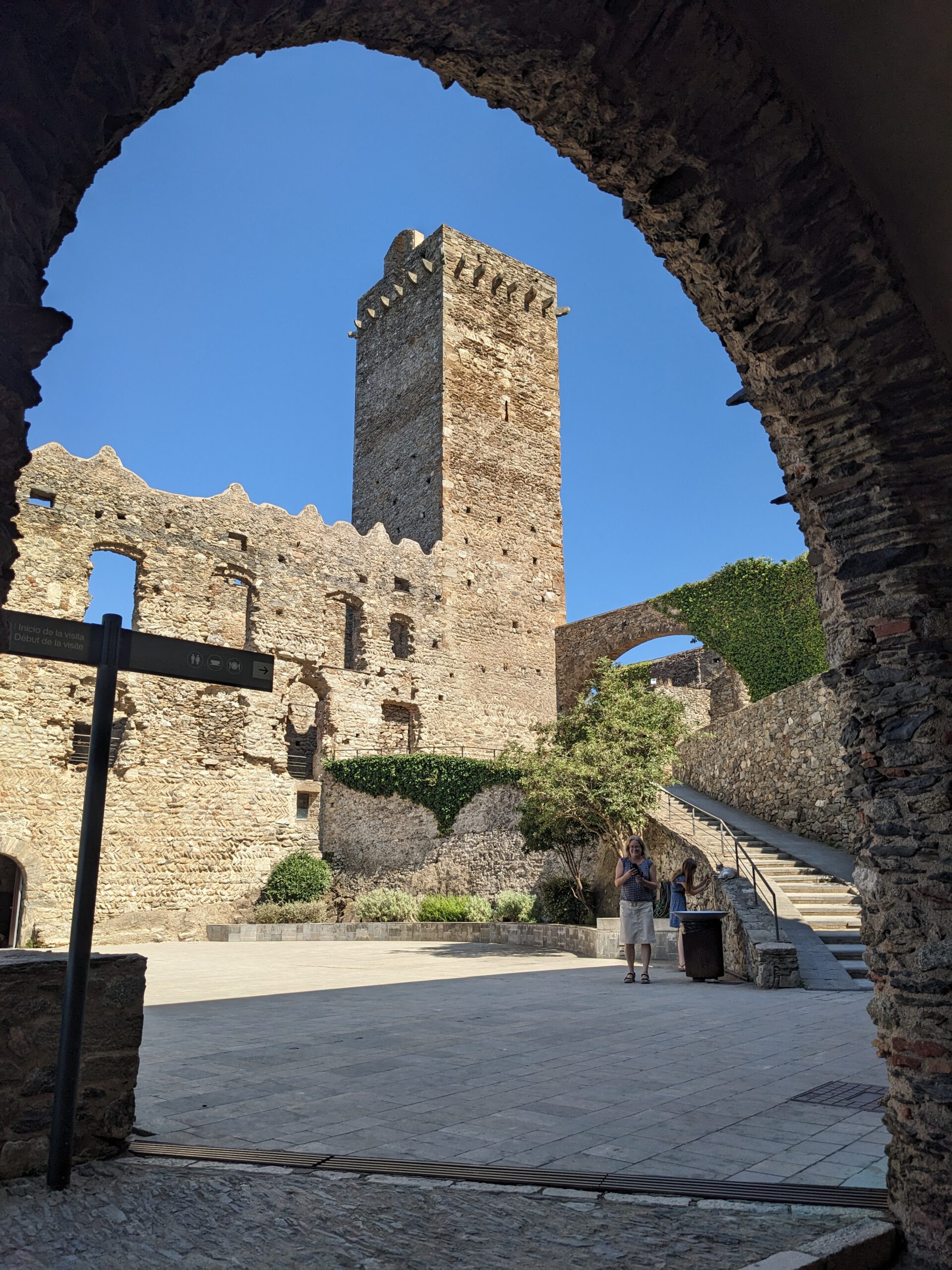 Die Nacht im Apartment war heiß, diesmal braucht Gerald etwas Auszeit. Aber gegen 14 Uhr ziehen wir los, das Auto ist ja klimatisiert. Über 30 Minuten benötigen wir zum ehemaligen Benediktinerkloster San Pere de Rodes, das quasi auf der anderen Seite der Berge Richtung Frankreich liegt. Und das Kloster überrascht: Ein sehr günstiger Eintritt. Ein ausgesprochen gut gemachter Audio-Guide, mit genau der richtigen Dosis an Informationen. Und ein sehr großes Klostergelände, in dem wir uns lange verweilen. Die Hügel wurden übrigens früher für Weinbau genutzt, doch dann kam die Reblaus. Jetzt gibt es weder Bäume, noch Weinstöcke. Auch sehr schön: Es sollten immer so viele Mönche, wie Apostel dort leben, also 12 (leider fehlten die Infos über die vermutlich 100 anderen Menschen, die zu Diensten waren). Und die hatten gemäß ihrer Fähigkeiten eigene Aufgaben, wie der Bodega-Mönch (zuständig für den Weinbau...) oder der Kranken-Mönch. Im Klosterrestaurant noch ein kleiner, starker Kaffee - herrlich.