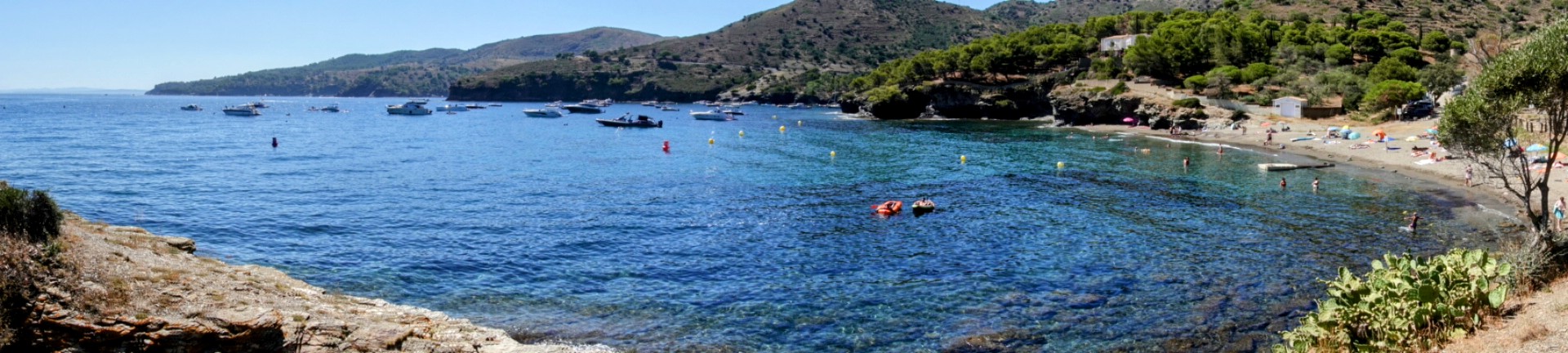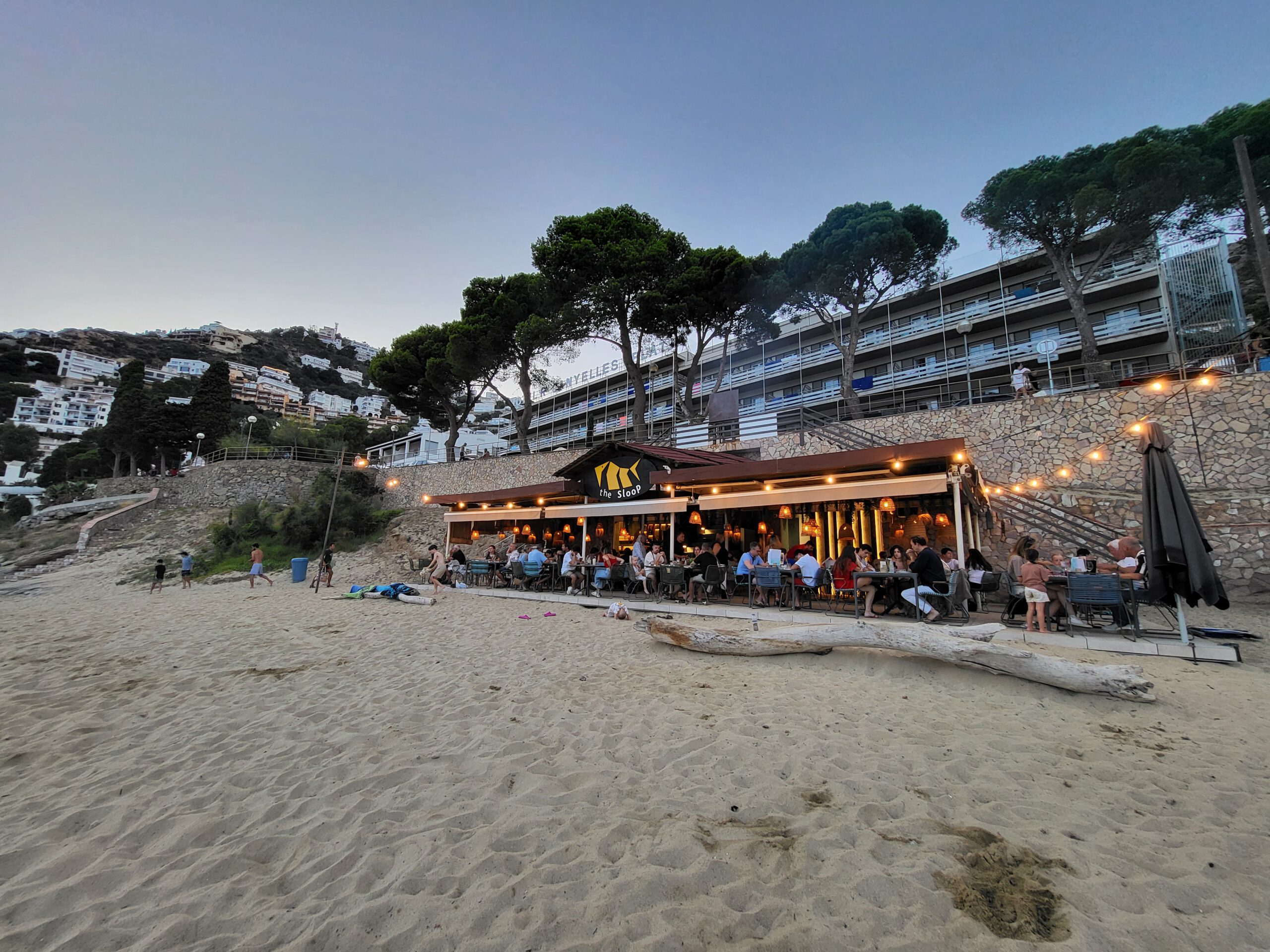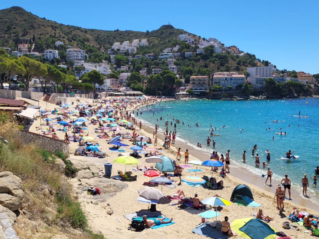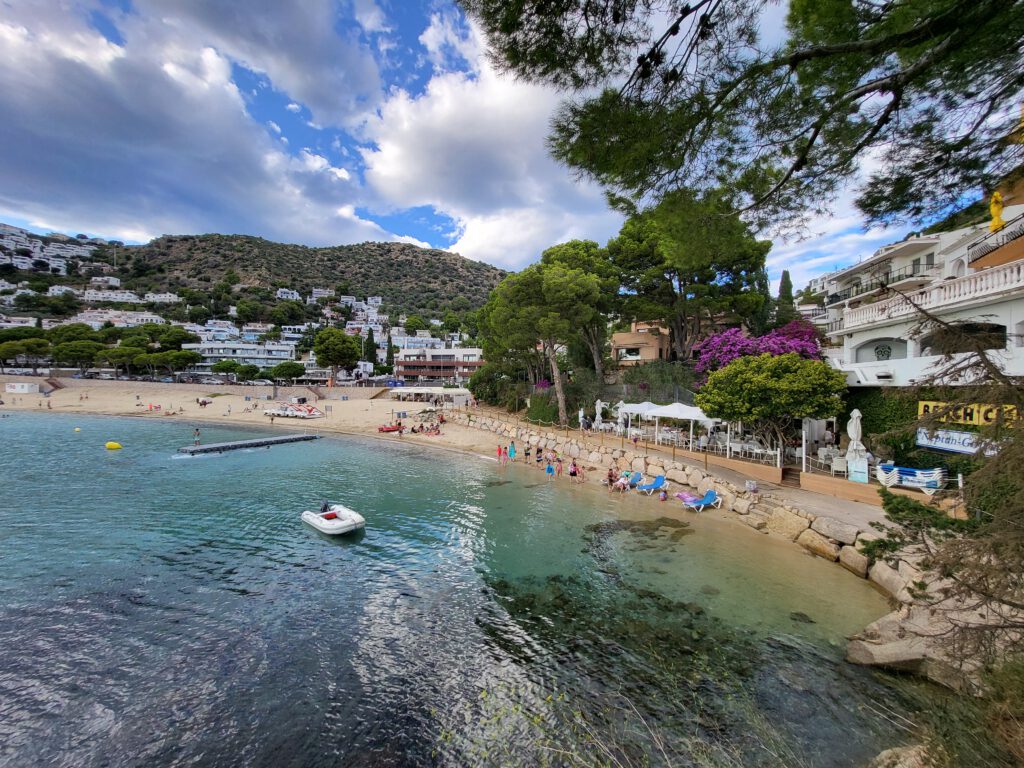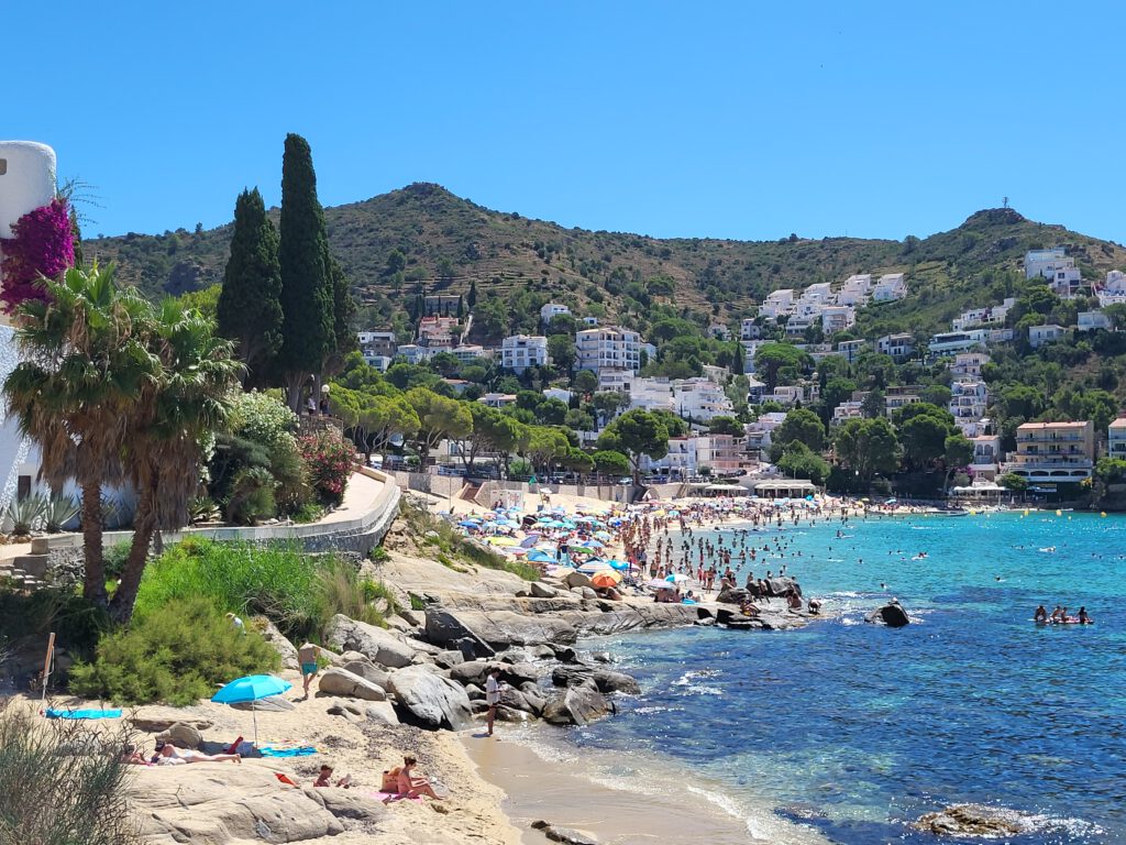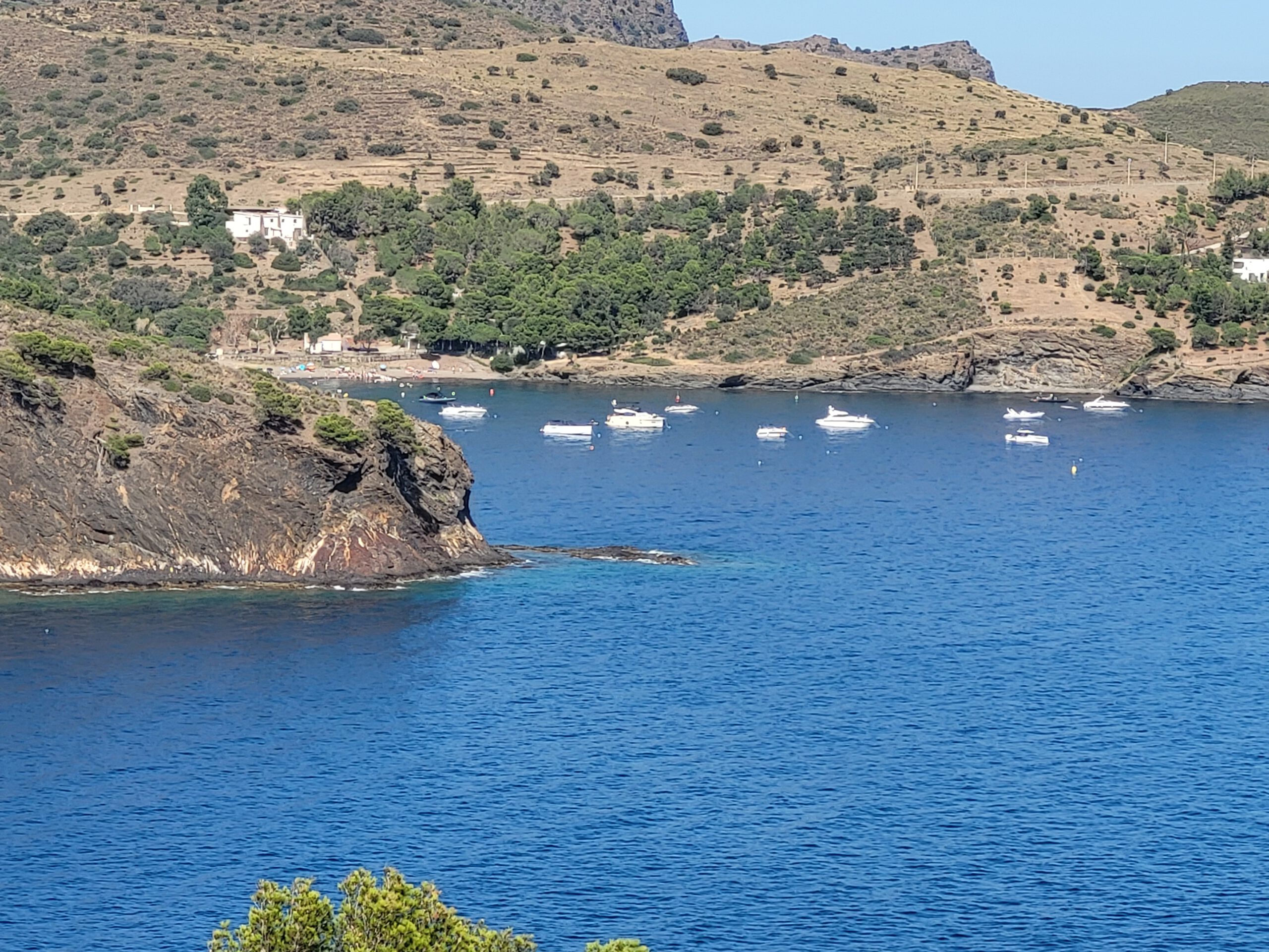 Also fahren wir zurück an den anderen Ortsrand von Roses, an den Strand Canyelles Petites. Hach, klares Wasser, feiner Sand, kleine Bucht Wir bummeln etwas am Meer entlang, als laute Bässe ums Eck wummern: Die Reichen und Schönen, die ihre Boote vor einer kleinen Plattform geparkt haben, feiern. Eine ziemliche Menge Leute, schon ziemlich enthemmt, mit viel dezentem Security-Personal. Was da wohl nach Sylter Vorbild passieren würde, wenn man das Lied von Gigi-d'Agostino laufen lässt.... Wir wollen es lieber nicht wissen und drehen um.