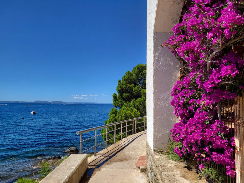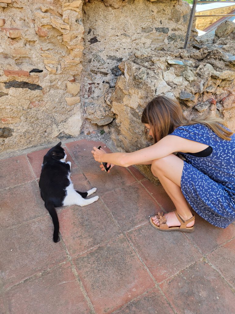 Außer natürlich die Außentemperaturen, die sich diese Woche stabil bei 34 Grad einpendeln. Mangels Schirm machen wir uns vor 14 Uhr wieder auf dem Heimweg, diesmal aber den kürzeren, an der Straße. Dabei fällt wieder auf, dass dieser Teil von Roses wirklich hübsch ist. Zuhause gibt es eine wilde Mischung aus Würstel, Hummous, Nudeln, Pesto, die aber irgendwie gut schmeckt. Danach Siesta.