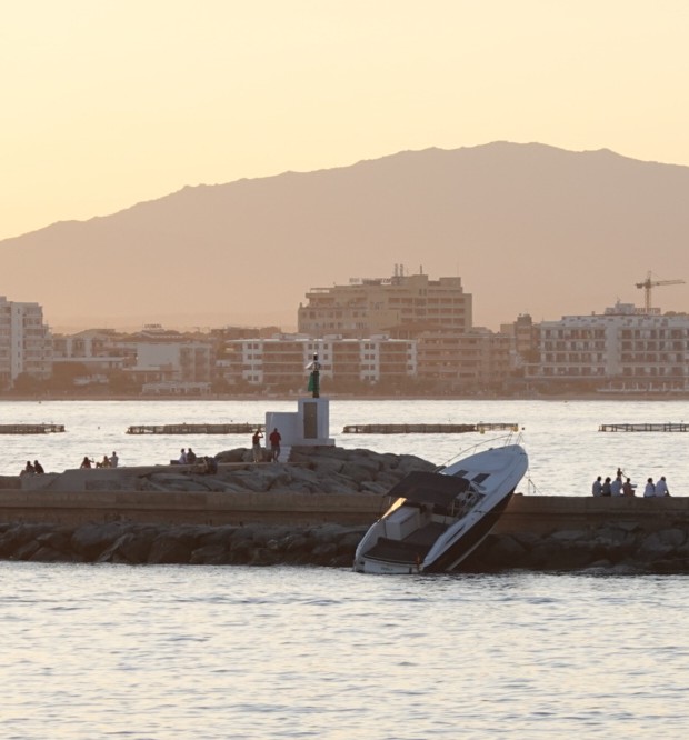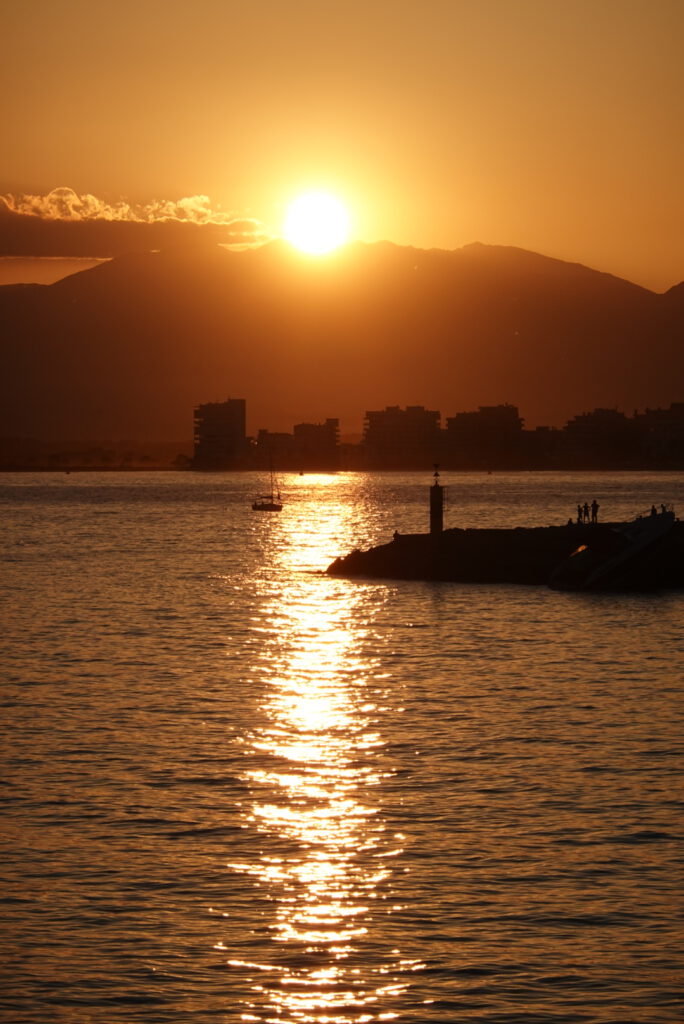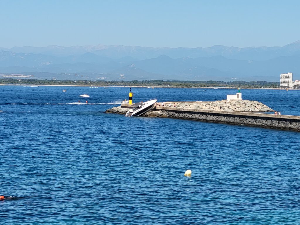 Nicole und Gerald gehen noch Richtung Sonnenuntergang auf den Weg nach Roses. Dabei stellen sie fest, dass es eine neue Touristenattraktion gibt: Ein Boot war in der Nacht an eine Mole gekracht und hängt dort noch spekakulär fest. Louisa und Nicole hatten beim Sonnenschirmkauf, der Kiosk befindet sich in Sichtweite, erkundigt: Passiert jedes Jahr, immer nachts, wenn die Fahrer betrunken sind. Allerdings normalerweise mit größeren Booten ...