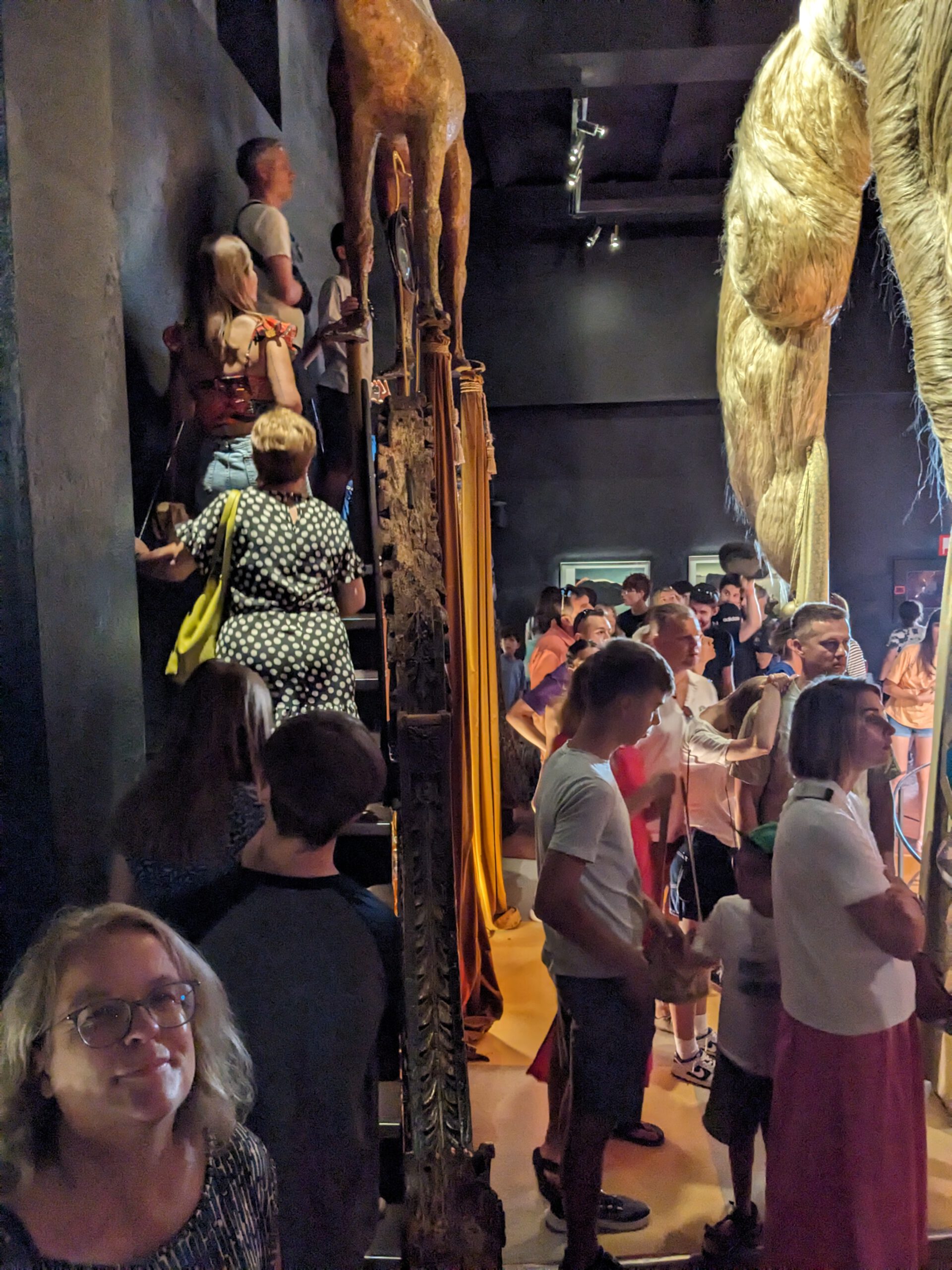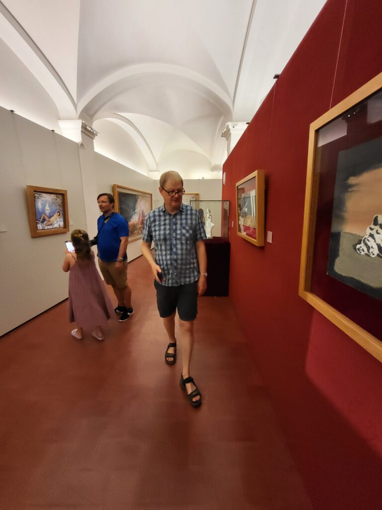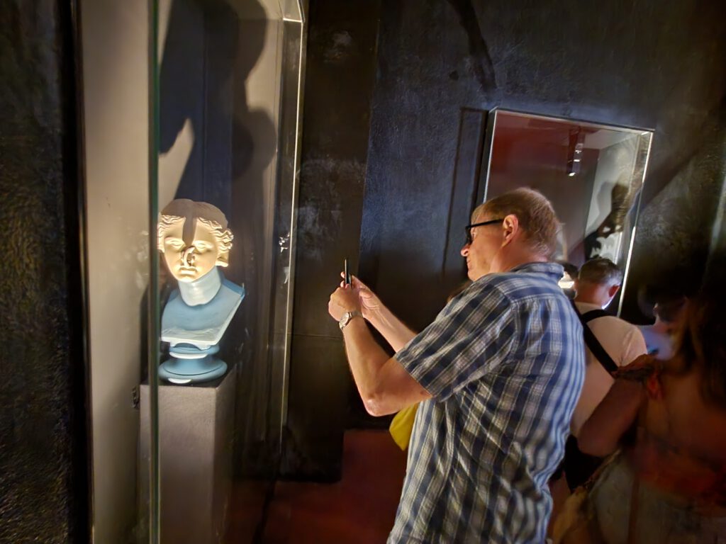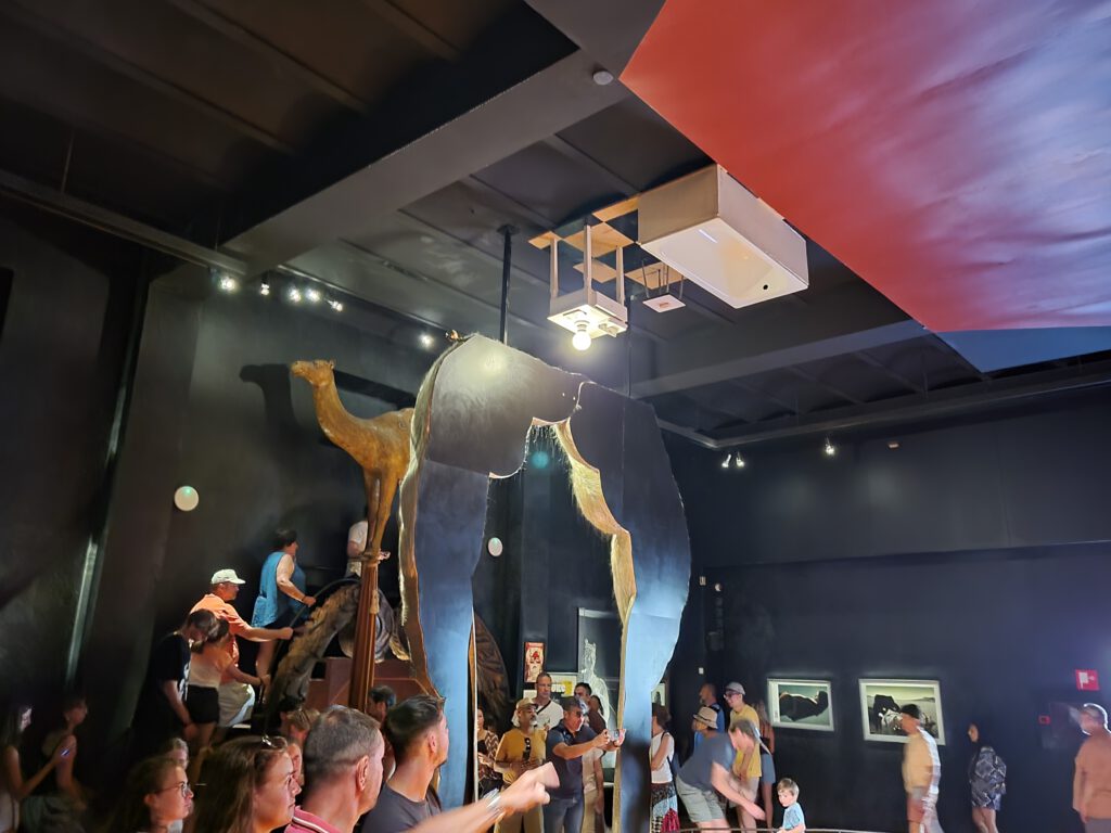 Dali selbst hatte das ehemalige Stadttheater von Figueres, das 1939 durch einen Brand zerstört worden war, zwischen 1961 und 1974 umgebaut. Es gibt keinen Audioguide, es gibt keine vorgegebene Route, barrierefrei ist das Gebäude auch nicht. Allerdings hat es draußen 35 Grad, die Klimaanlage kommt kaum nach und dass die Zeitfenster ausgebucht sind, macht das alles nicht besser. Gerade die kleinen Räume sind knallvoll und stickig, immer wieder muss man anstehen. Merken für ein mögliches nächstes Mal: Nachttour im August buchen.