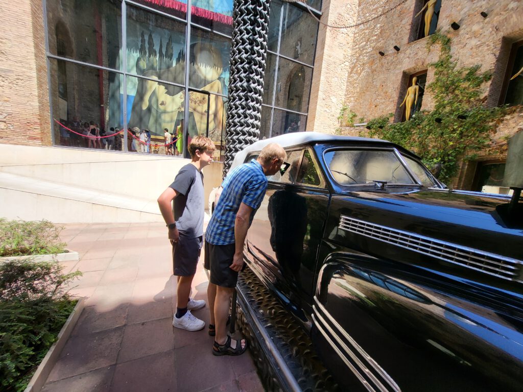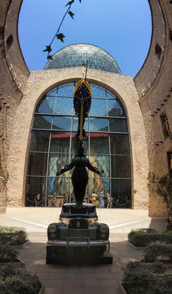Standortwechsel: um 11 Uhr raus in Casamitjana, aber erst um 16 Uhr rein in der Ferienwohnung in Roses an der Costa Brava. Um die Zwischenzeit bei 33 Grad zu überbrücken, hatte die Reiseleitung einen Plan gefasst: Das - hoffentlich klimatisierte - Dali-Museum in Figueres, das tatsächlich auf dem Weg liegt. Da das Museum eine der Hauptsehenswürdigkeiten in Spanien ist, wurden natürlich auch schon online Tickets erstanden.