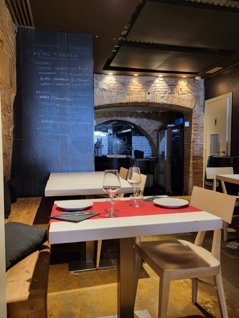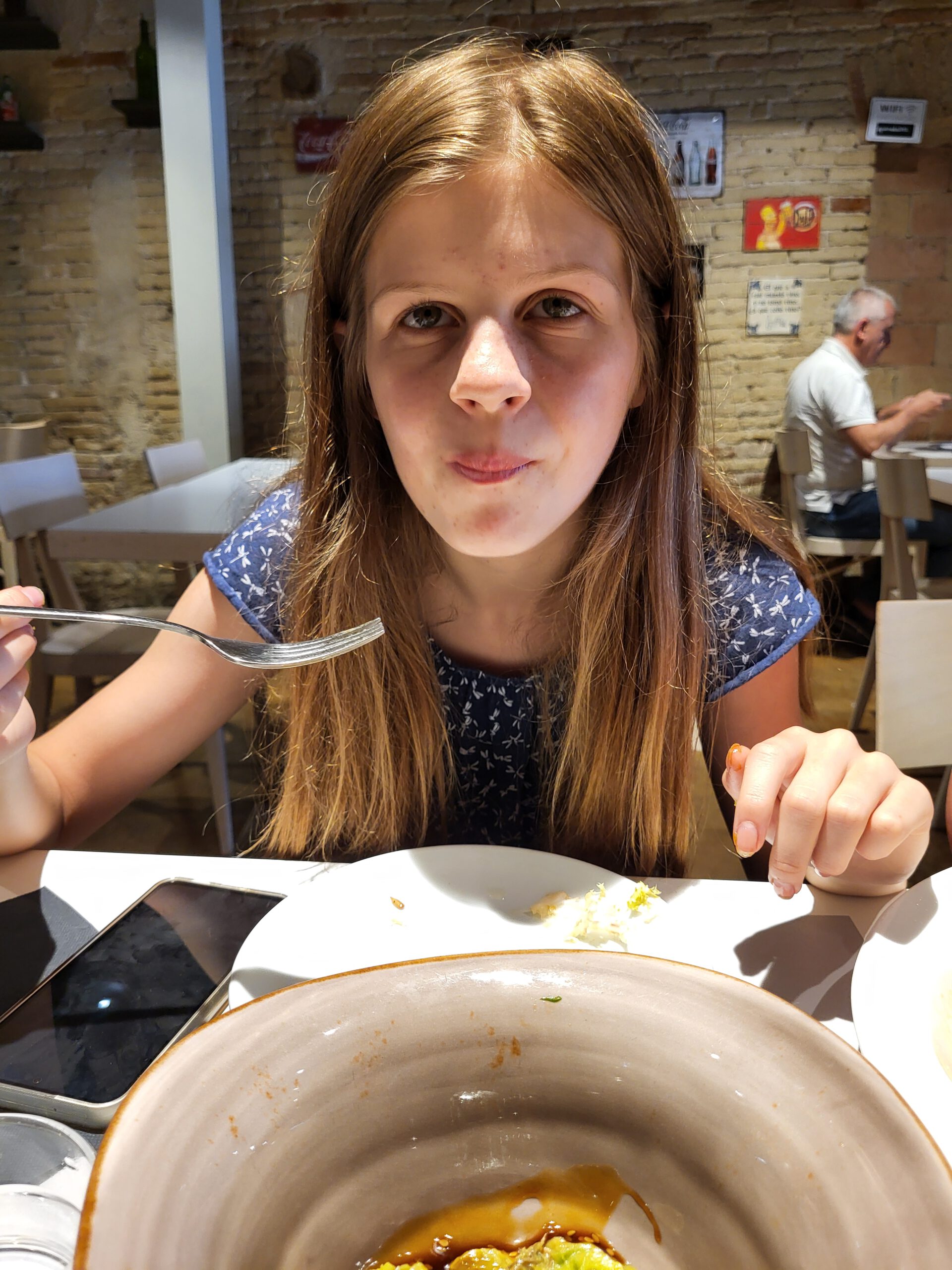 Nach zweineinhalb Stunden taumeln wir zurück in die Sonne. Kilian hat sich in Sachen Verpflegung informiert und führt uns (mit kleinen Umwegen, ganz der Sohn seiner Mutter) zu Granada Vins, einer Tapas- und Weinbar. Sehr fein. Und der erste kleine Wein seit einer Woche, der sehr gut mundet. Nach dem späten Mittagessen um 16 Uhr geht es zurück zum Auto, wenn auch zum großen Bedauern der Reiseleitung nicht mit einem Stopp im frisch ausgebauten Geburtshaus von Dali ...