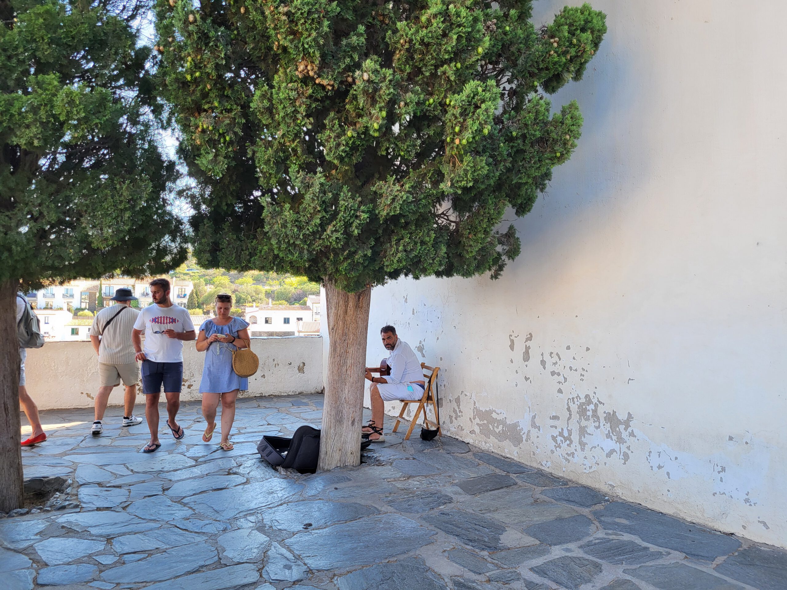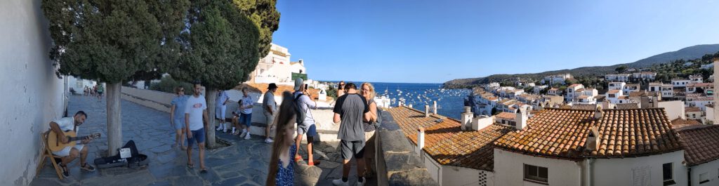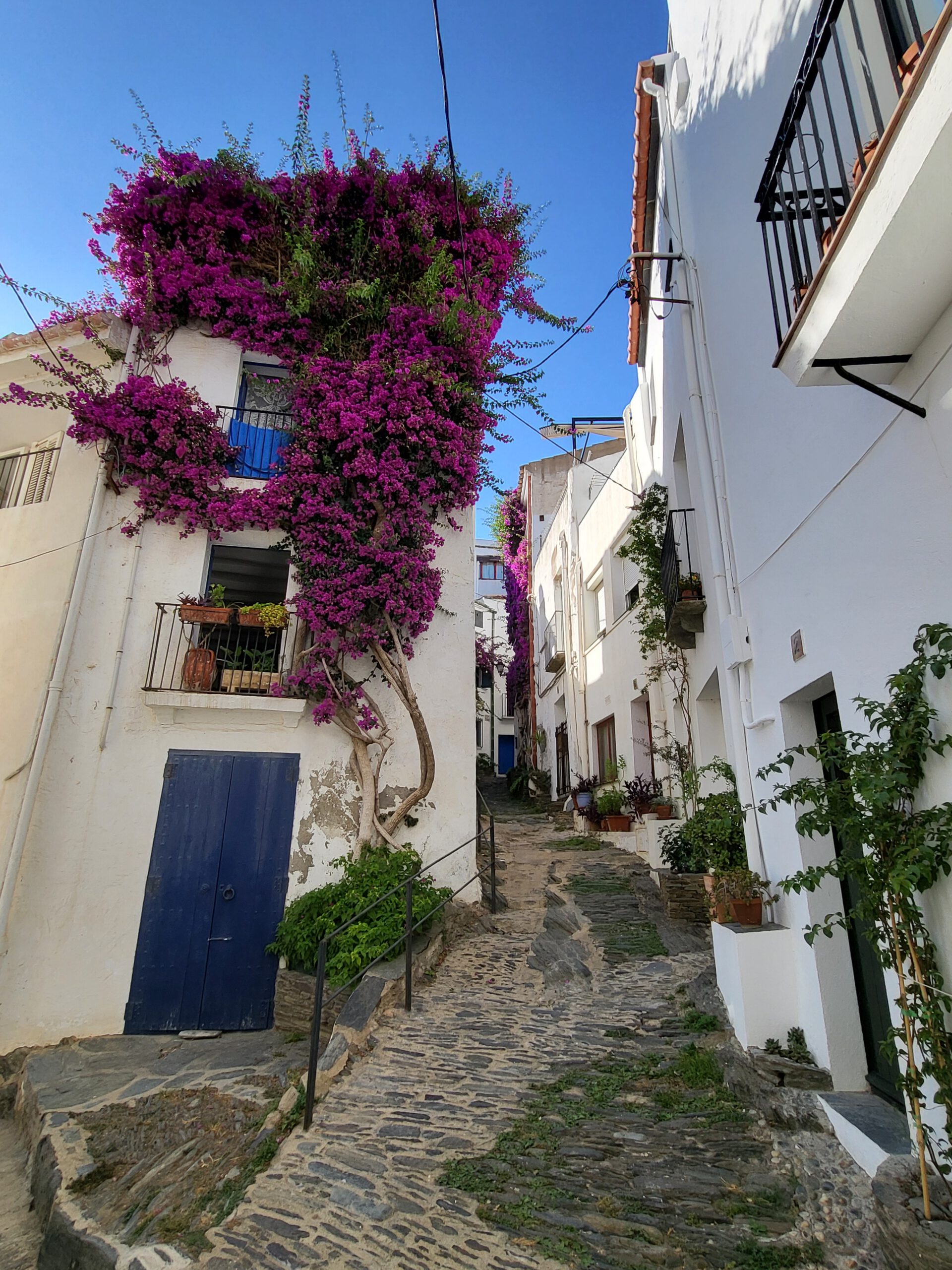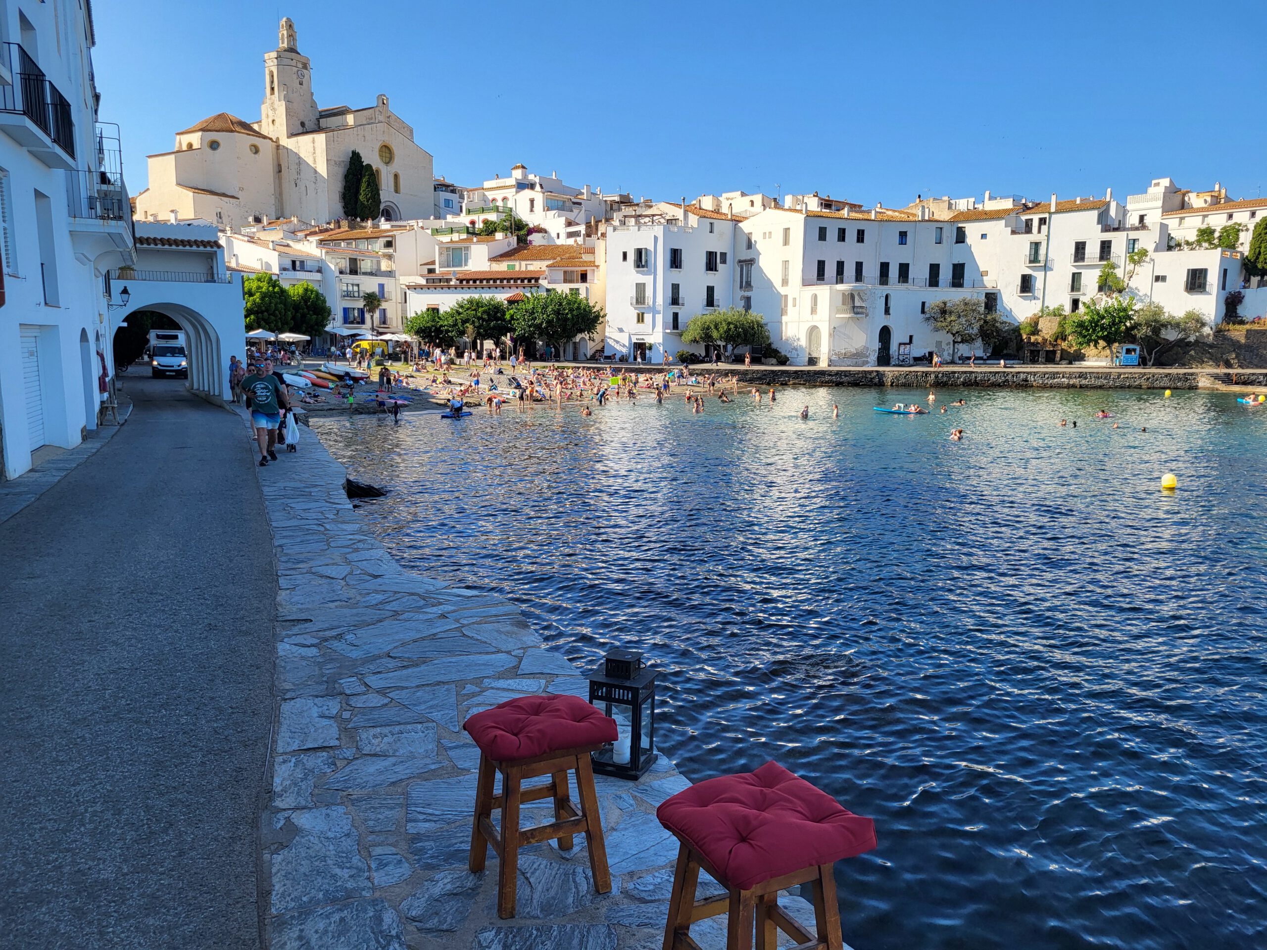 Dann fahren wir weiter nach Cadaques, malerisches Küstenörtchen. Ja, wirklich zauberhaft - weiße Häuschen, blaue Türen und Fenster, pink-lilafarbene Bougainvillea. Hat sich allerdings herumgesprochen, es ist richtig viel los. Der Parkplatz kostet 3,25 Euro pro Stunde, rechnet aber fair in kleinen Schritten ab. Die barocke Kirche ist unfassbar überladen. Die kleinen Gassen sind richtig hübsch, die kleinen Strandabschnitte sehr gut gefüllt. Zum Abendessen fahren wir aber lieber doch in unseren Ortsteil von Roses zurück, uns ist das alles zu trubelig.