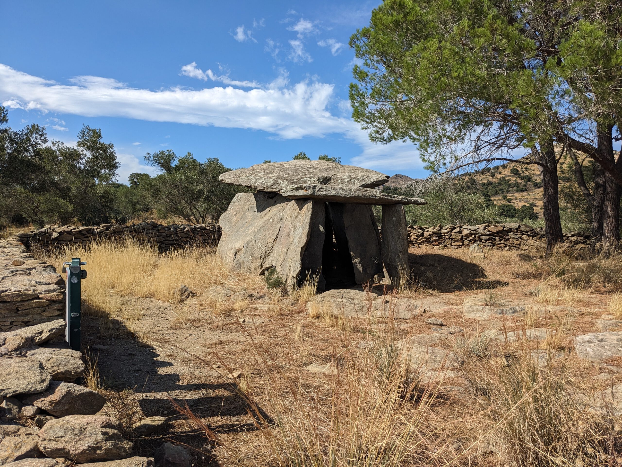 Innerhalb von Minuten sind wir aus der Stadt und im kompletten Kontrastprogramm. Die Zikaden sind zurück, inzwischen ist es warm und wir suchen einen Dolmen, auch Menhir genannt. Das Hünengrab wurde wohl zwischen 3500 und 3000 vor Christus errichtet und zwischendurch als Stallung genutzt.
