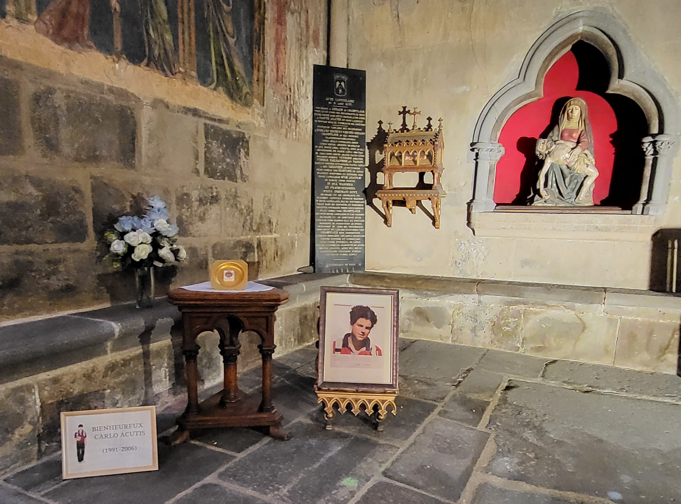 In einer Kapelle wird Carlo Acutis gewürdigt. Der junge Mann starb 2006 mit 15 Jahren an Leukämie und gilt als erster "Cyber-Apostel", da er nicht nur eine Website zum Thema Wunder gepflegt hatte, sondern angeblich auch selbst welche bewirkt. Seligsprechung war 2020, Heiligsprechung soll dieses Jahr folgen. Ganz schön flott. Ordnen wir das mal unter "Skurriles aus der katholischen Kirche" ein und lassen das so stehen....