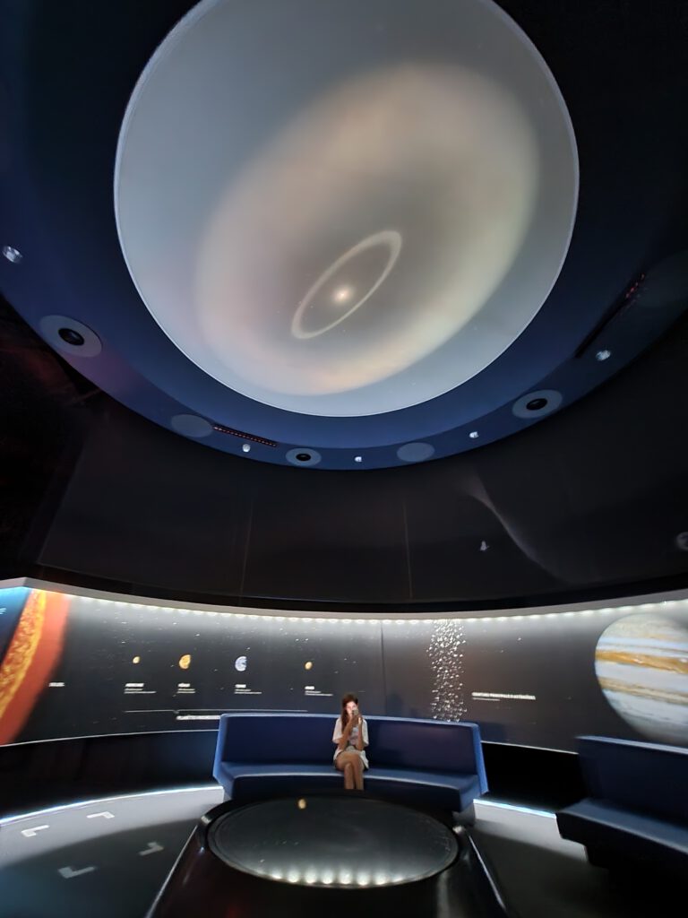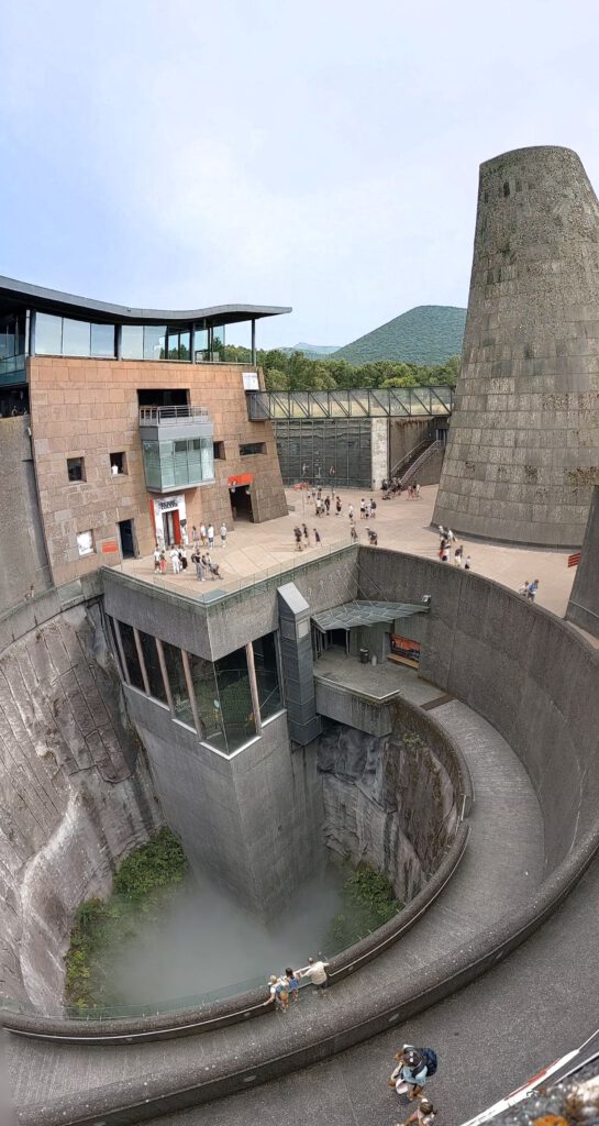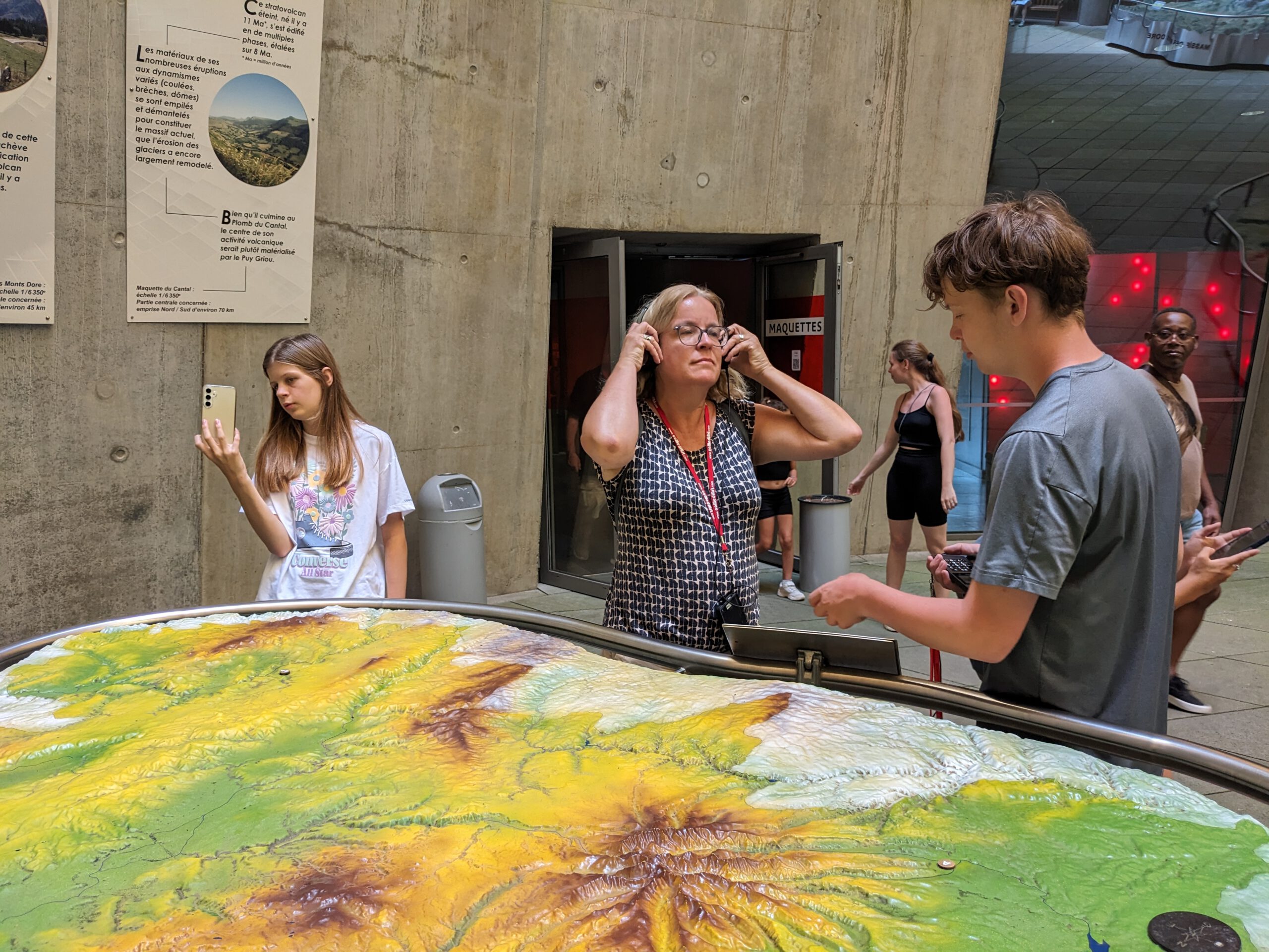 Alles ist ausschließlich auf Französisch beschriftet, wenn man Glück hat, gibt es was im Audio-Guide dazu. Wobei er manchmal auch automatisch anspringt, wenn man Räume betritt, was ziemlich cool ist. Wir machen uns also ein Bild von der Vulkanlandschaft der Region, dann geht es noch grundsätzlich um das Universum und seine Planeten etc. Zwischendurch geben wir viel Geld für gekühlte Getränke aus. Aber: Es gibt auch gekühlte Räume.