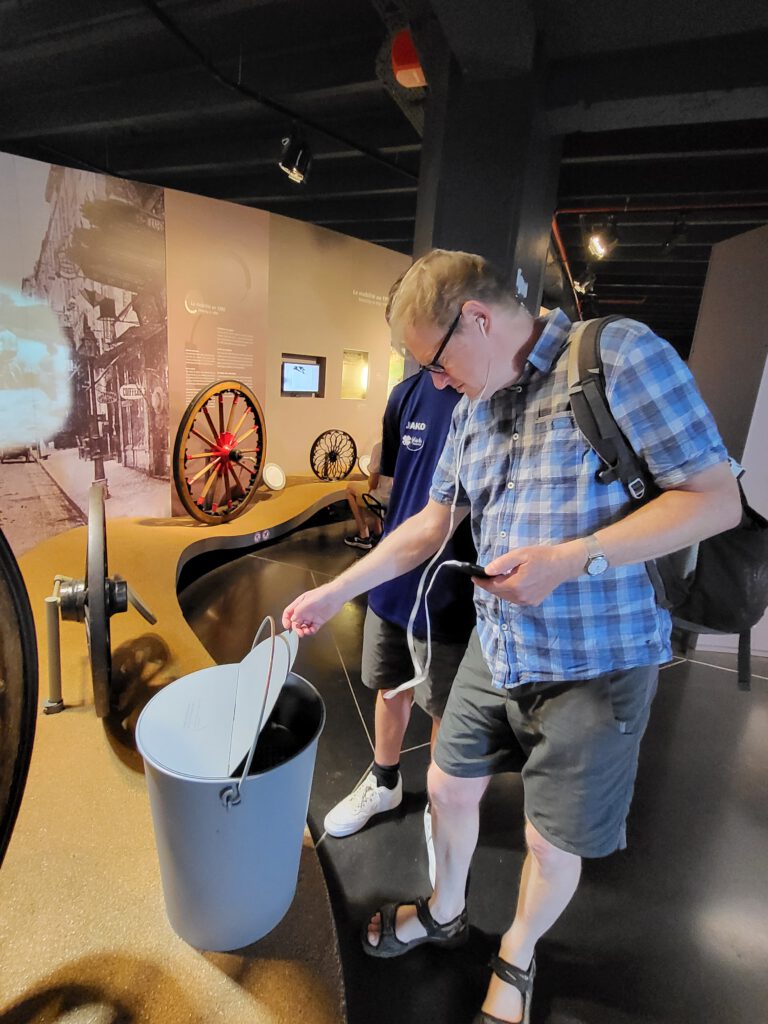 Die Nacht war wieder zu heiß und dank der geöffneten Fenster zu laut. Allein Kilian hat gut geschlafen, da er sich ins Kellergeschoss zurückgezogen hat. Gegen 12 Uhr machen wir uns auf zum Michelin-Museum, allerdings fahren wir. Denn ein 45-minütiger Spaziergang bei 35 Grad muss nun wirklich nicht sein. Lohnt sich der Besuch? Auf jeden Fall! O-Ton Kilian: DAS war ein richtiges Museum, in dem man auch was dazu gelernt hat!