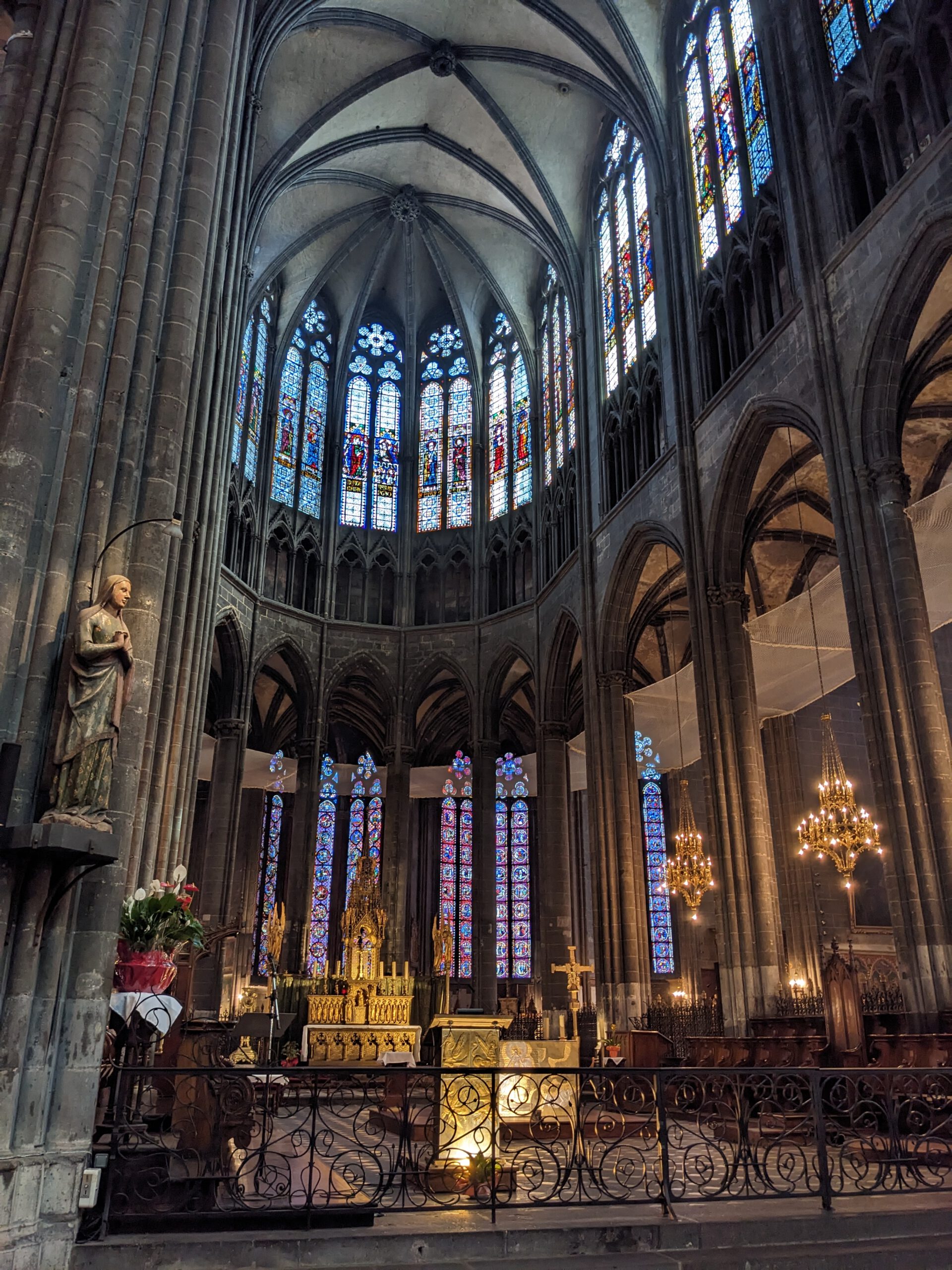 Charmant: Selbst direkt hinter der Kathedrale sind die Cafés kein Touri-Nepp. Es gibt hier übrigens, anders als in Nordspanien, wieder kostenloses Leitungswasser. Und in diesem Fall Kaffee und feine Crepes, mit Zucker-Zitrone, Maronen, salzigem Karamell und natürlich Nutella. Dann hat auch die Kathedrale wieder geöffnet: Ab 1248 in schwarzem Vulkangestein errichtet, vollendet erst im Jahr 1902. Größtenteils gotisch und wirklich sehr beeindruckend.