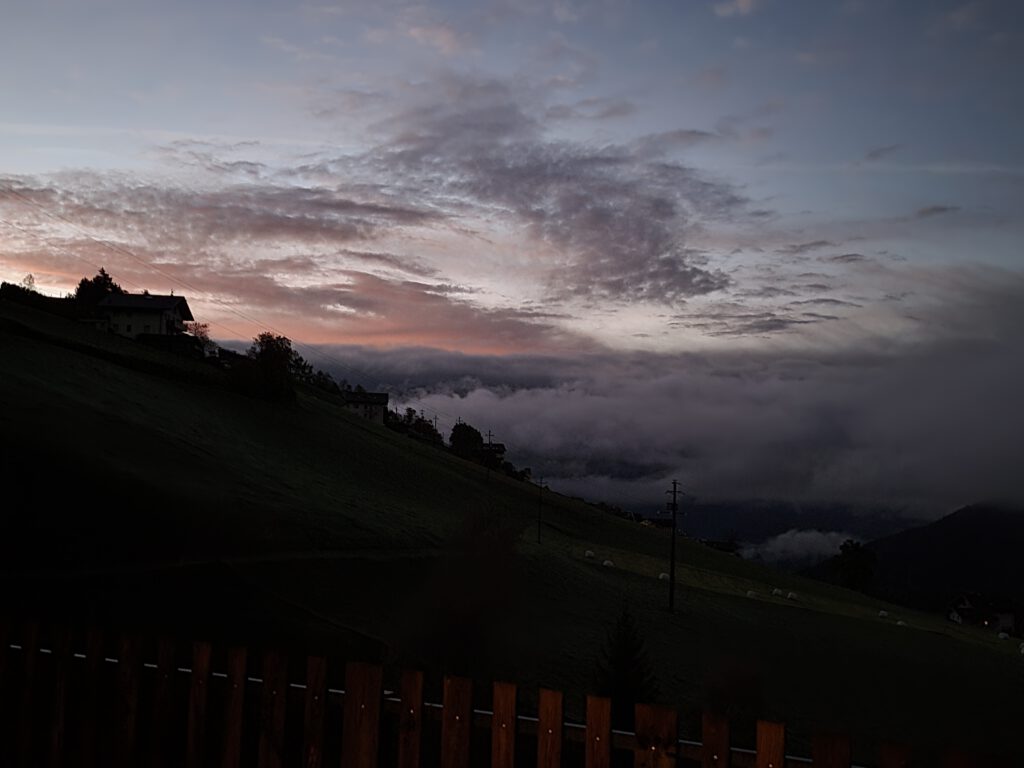 Der Wecker im Frauenzimmer geht um kurz nach 6 Uhr. Nicht, weil wir so früh fahren wollen. Aber Louisa will morgens nochmal die geliebten Kälbchen füttern - und dann muss man eben so früh raus. Tatsächlich packen wir recht zügig, machen uns noch einen Liter Filterkaffee für den Weg und sind schon um 8 Uhr beim Bäcker, um die Reiseverpflegung zu kaufen. Der Grund für die Eile: Der Brenner und seine Baustellen. Wir hoffen, vor der Rückreisewelle aus dem Süden über die Alpen zu huschen. Und sind etwas beunruhigt, weil es wohl um 9 Uhr eine gemeinsame Notfallübung von Tirol und Südtirol gibt, wie uns die Bäuerin erzählt hat.