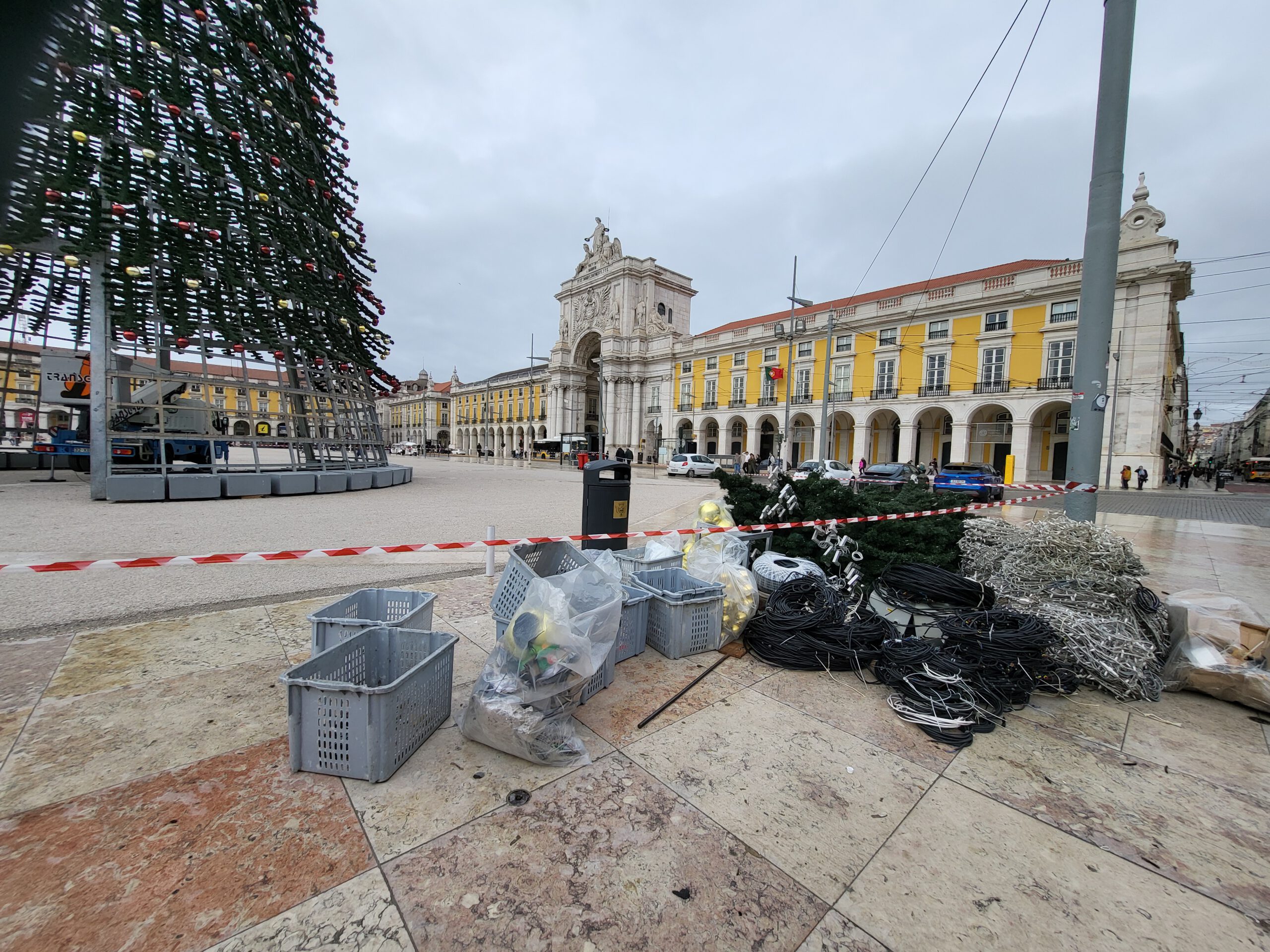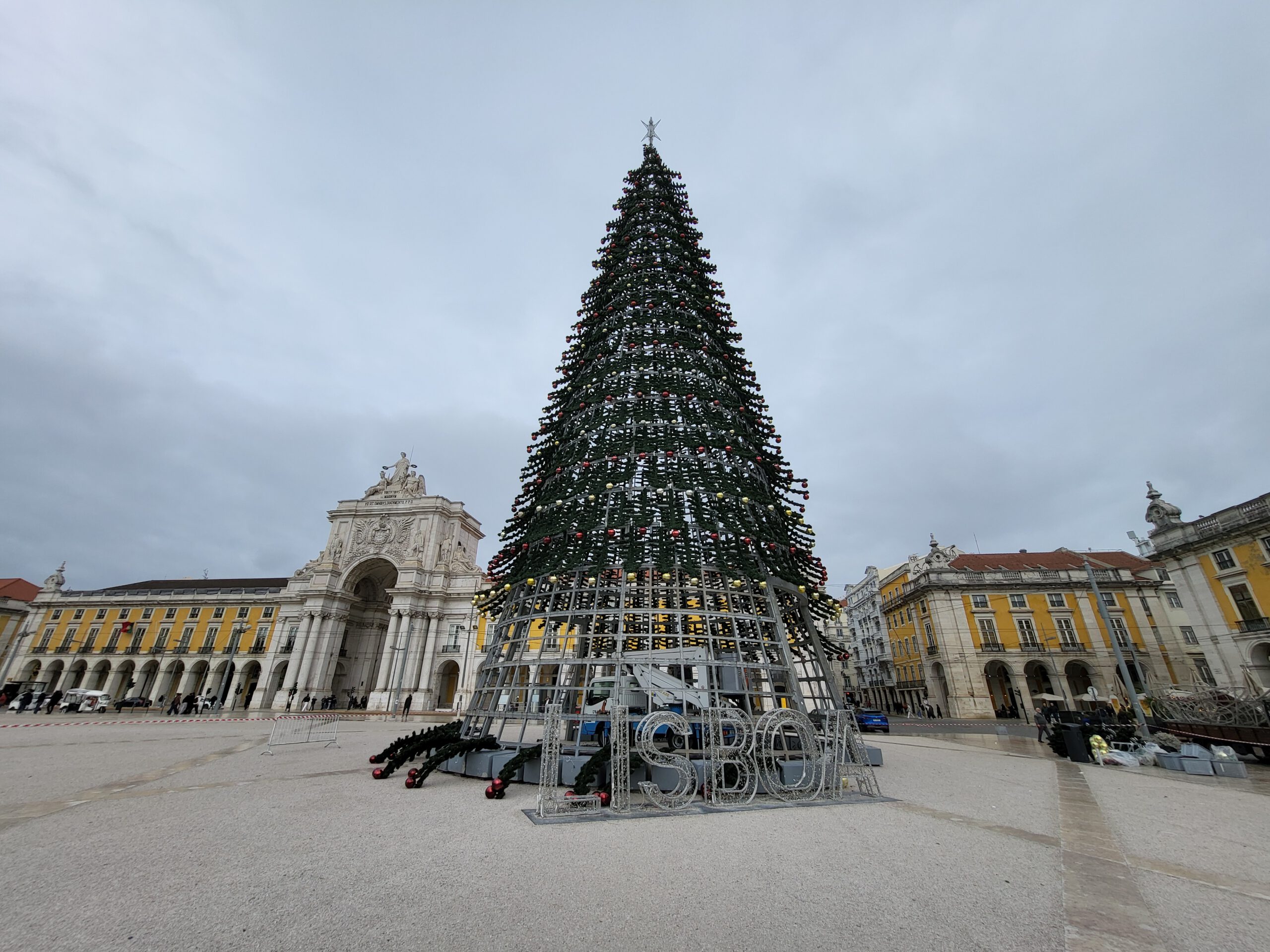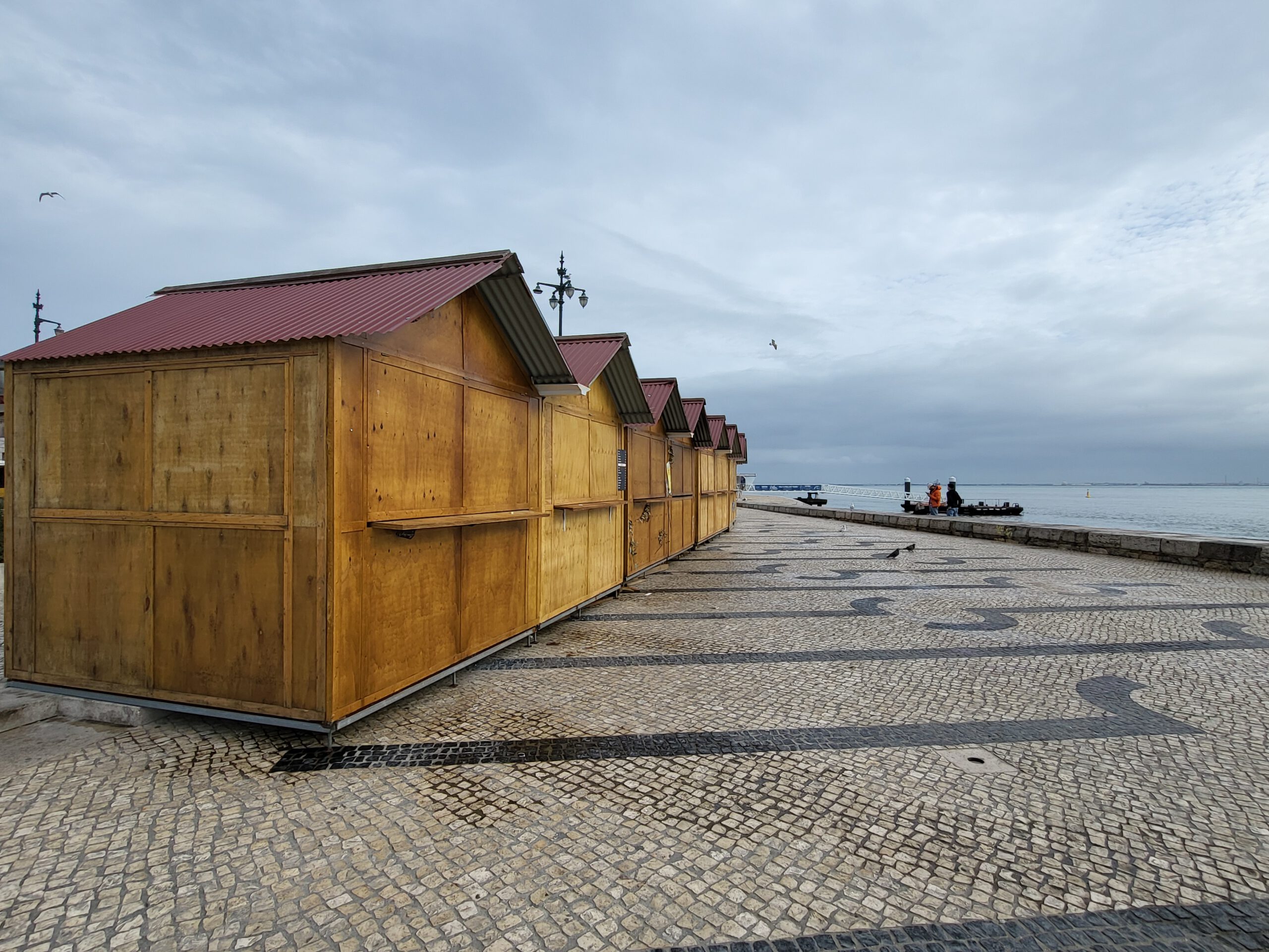 Ein Uber bringt uns für 4 Euro zur Gepäckaufbewahrung, hat allerdings eine falsche Adresse eingegeben und lässt uns in einer steilen Straße ziemlich weit oben raus. Also rollen wir mit den Koffern auf dem Kopfsteinpflaster bergab und sind sehr froh, als sie wieder verwahrt werden. Es geht noch einmal zum Time Out Food Market, für eine Mischung aus Frühstück und Mittagessen. Danach bummeln wir am Meer entlang, über den großen Platz. Und stellen fest: am 7. Januar ist sogar in Lissabon Weihnachten vorbei! Die Buden haben geschlossen, der große Baum wird abgebaut. Anders als bei der Ankunft lässt sich die Sonne nicht blicken, es weht ein kühler Wind. Die Verkäufer haben die Reißverschlüsse ihrer Anoraks weit bis nach oben gezogen. Es sind weniger Touristen in der Stadt und so gibt es zwar keine Straßenhändler, aber sehr aufdringliche Vertreter der Restaurants, die um jeden Touri kämpfen.
