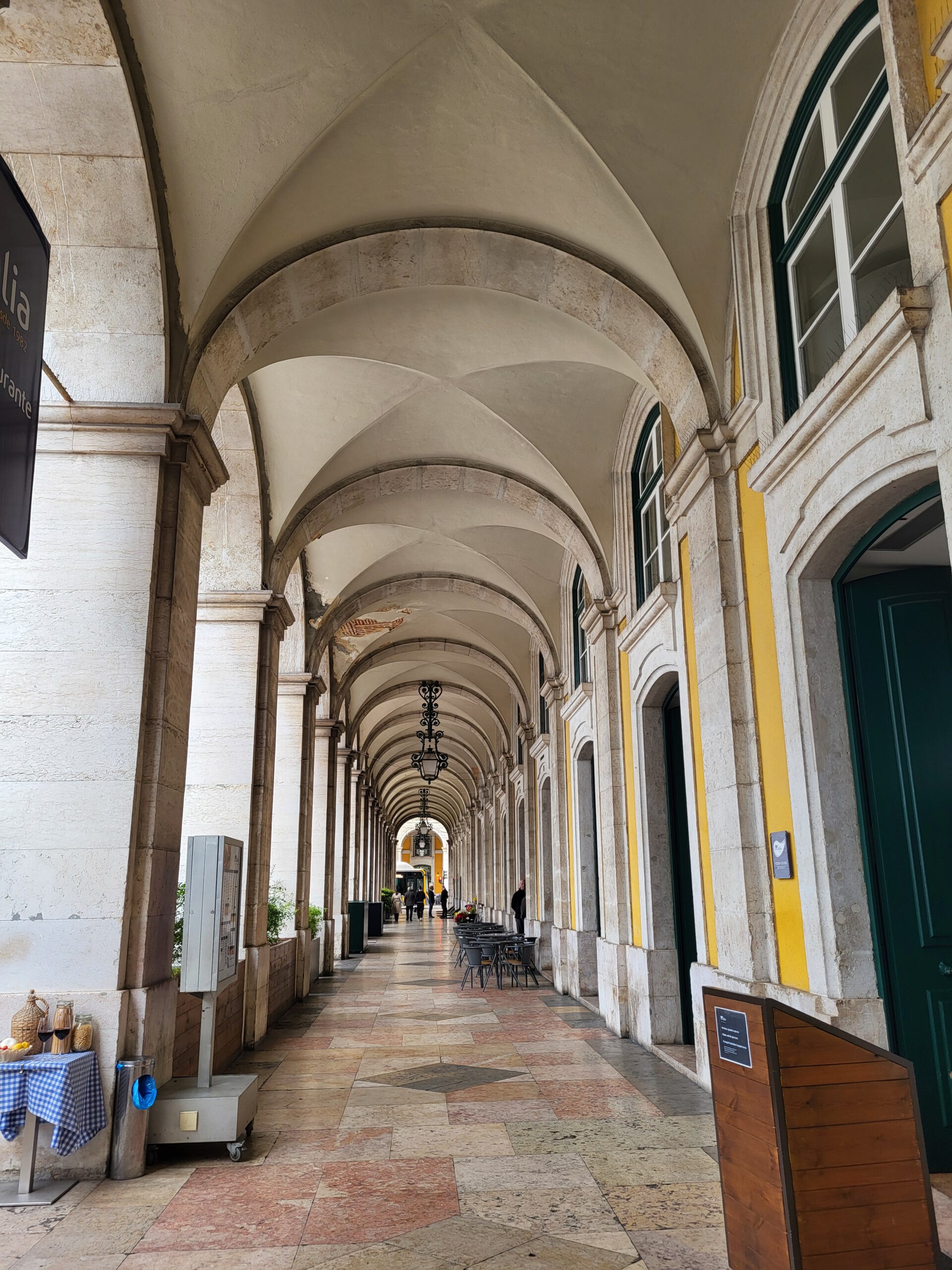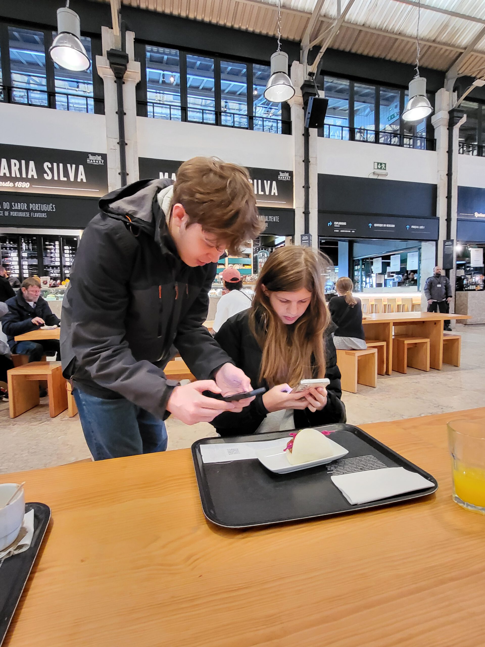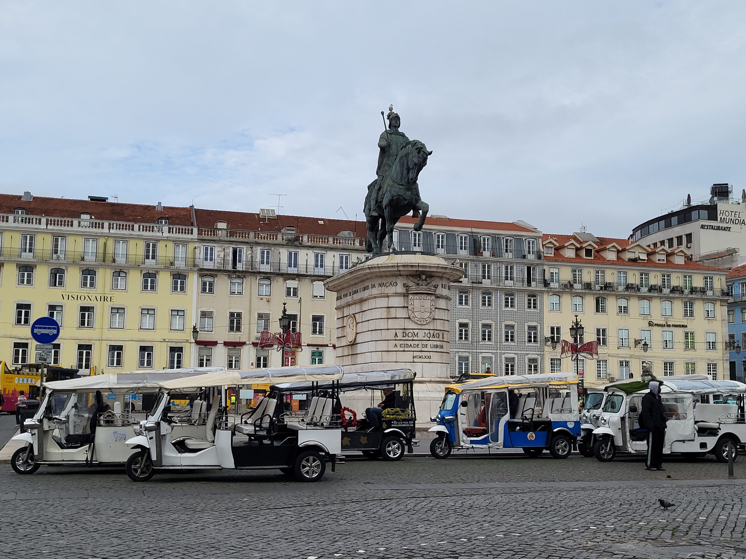 Ein Uber bringt uns für 4 Euro zur Gepäckaufbewahrung, hat allerdings eine falsche Adresse eingegeben und lässt uns in einer steilen Straße ziemlich weit oben raus. Also rollen wir mit den Koffern auf dem Kopfsteinpflaster bergab und sind sehr froh, als sie wieder verwahrt werden. Es geht noch einmal zum Time Out Food Market, für eine Mischung aus Frühstück und Mittagessen. Danach bummeln wir am Meer entlang, über den großen Platz. Und stellen fest: am 7. Januar ist sogar in Lissabon Weihnachten vorbei! Die Buden haben geschlossen, der große Baum wird abgebaut. Anders als bei der Ankunft lässt sich die Sonne nicht blicken, es weht ein kühler Wind. Die Verkäufer haben die Reißverschlüsse ihrer Anoraks weit bis nach oben gezogen. Es sind weniger Touristen in der Stadt und so gibt es zwar keine Straßenhändler, aber sehr aufdringliche Vertreter der Restaurants, die um jeden Touri kämpfen.