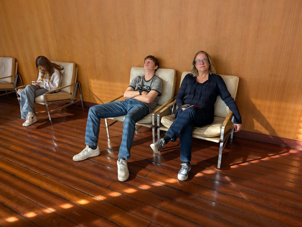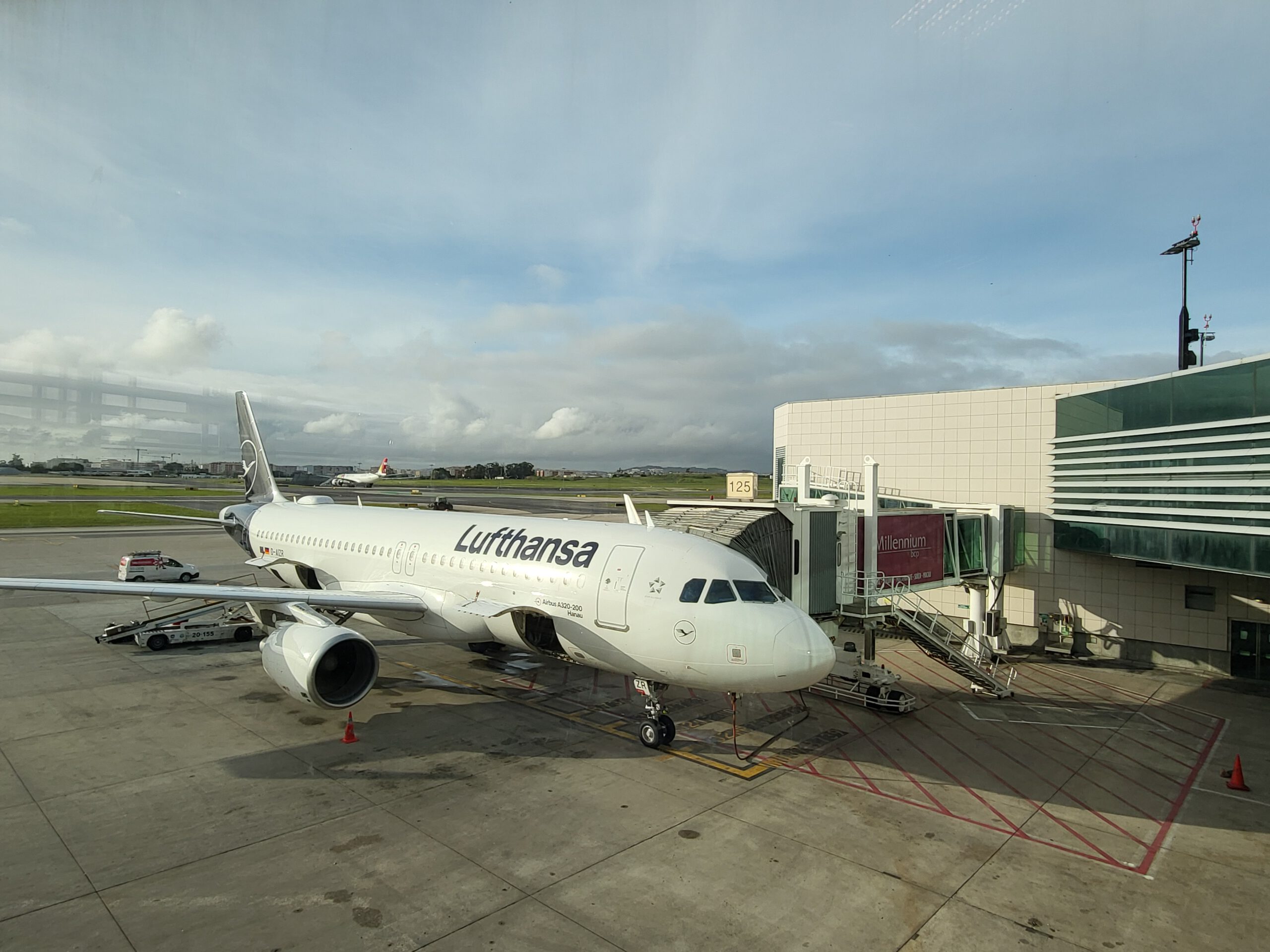 Mit einer Straßenbahn fahren wir ein Stückchen, aufgrund einer fehlerhaften Abbuchung fahren zwei vermutlich schwarz, aber wir sind auch schnell wieder draußen. Dabei stellen wir fest: Briefkästen gibt es in der Innenstadt quasi keine mehr. Aber am Flughafen, rät der Kofferaufbewahrer. Diesmal fährt uns ein Uber für ein Drittel des Preises von der Herfahrt die halbe Stunde an den Flughafen. Dort ist die Einordnung ziemlich chaotisch, die Wege sind lang. Aber wir haben keinen Stress, schließlich hat Lufthansa längst mitgeteilt, dass der Flug Verspätung hat.