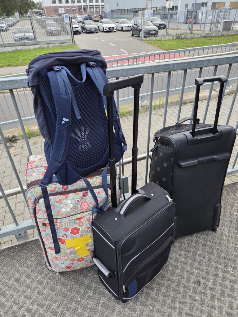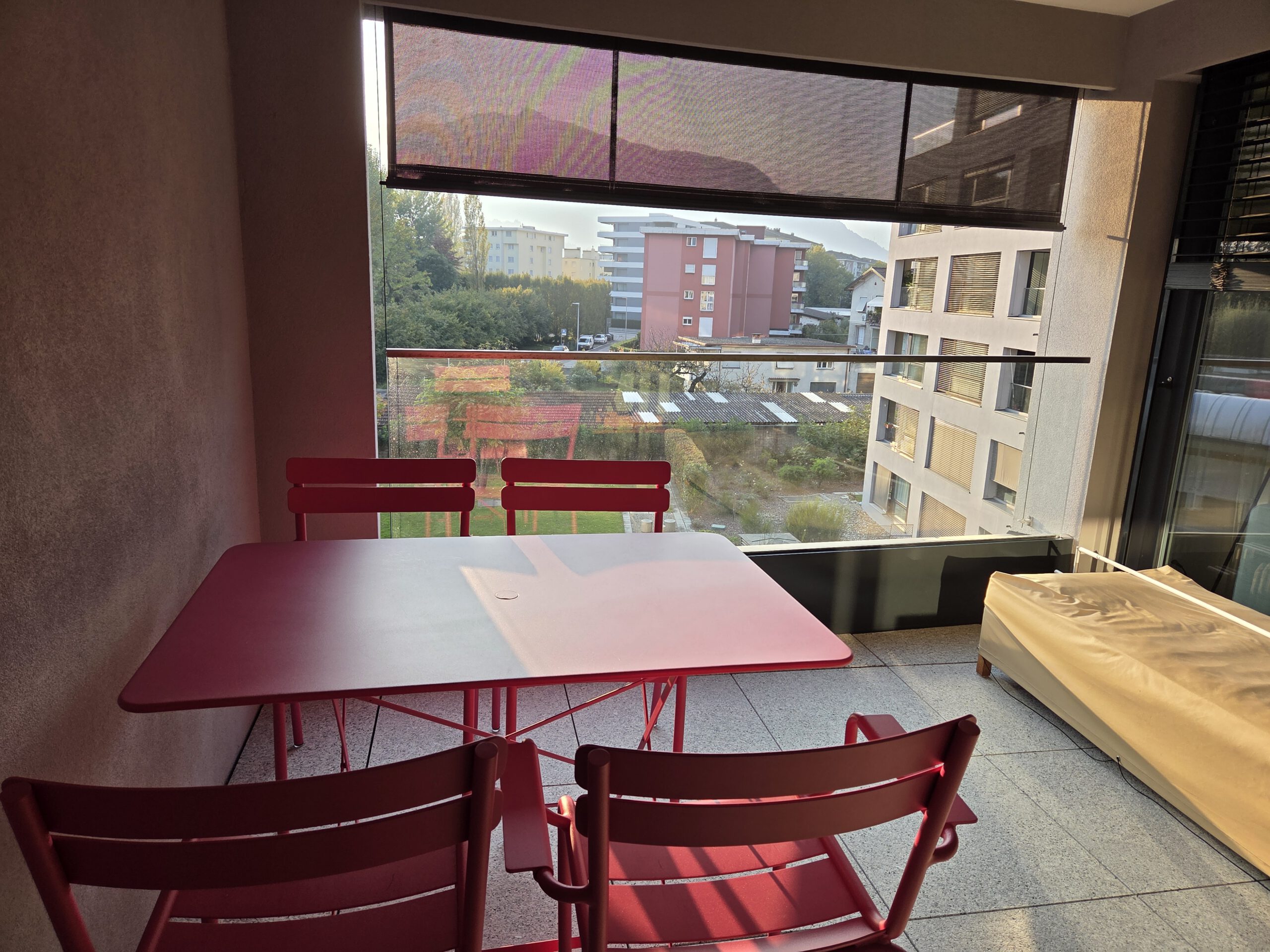 Nach dem langen Sitzen verzichten wir auf das Taxi und rollen unsere Koffer einmal quer durch die Stadt. Gut 20 Minuten später stehen wir vor dem modernen Wohnblock, in dem sich unsere Ferienwohnung befindet. Dann dauert es noch etwas, bis die Mail mit dem Code für die Tür herausgekramt ist ... Das Airbnb selbst ist sehr geräumig, mit zwei Schlafzimmern und zwei Bädern, einem Balkon mit Abendsonne. Bestens.