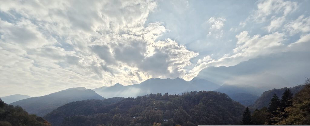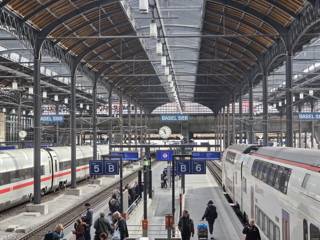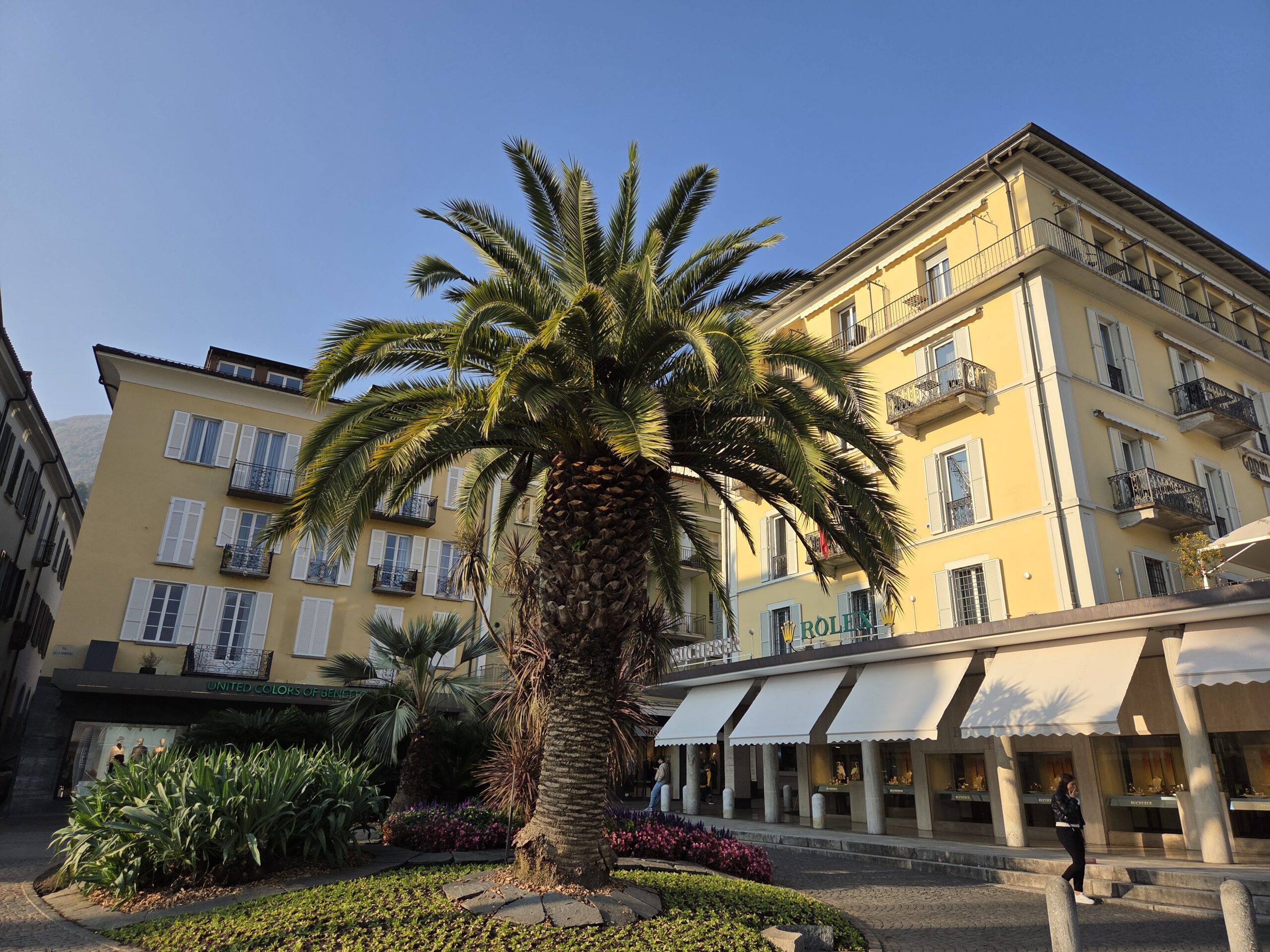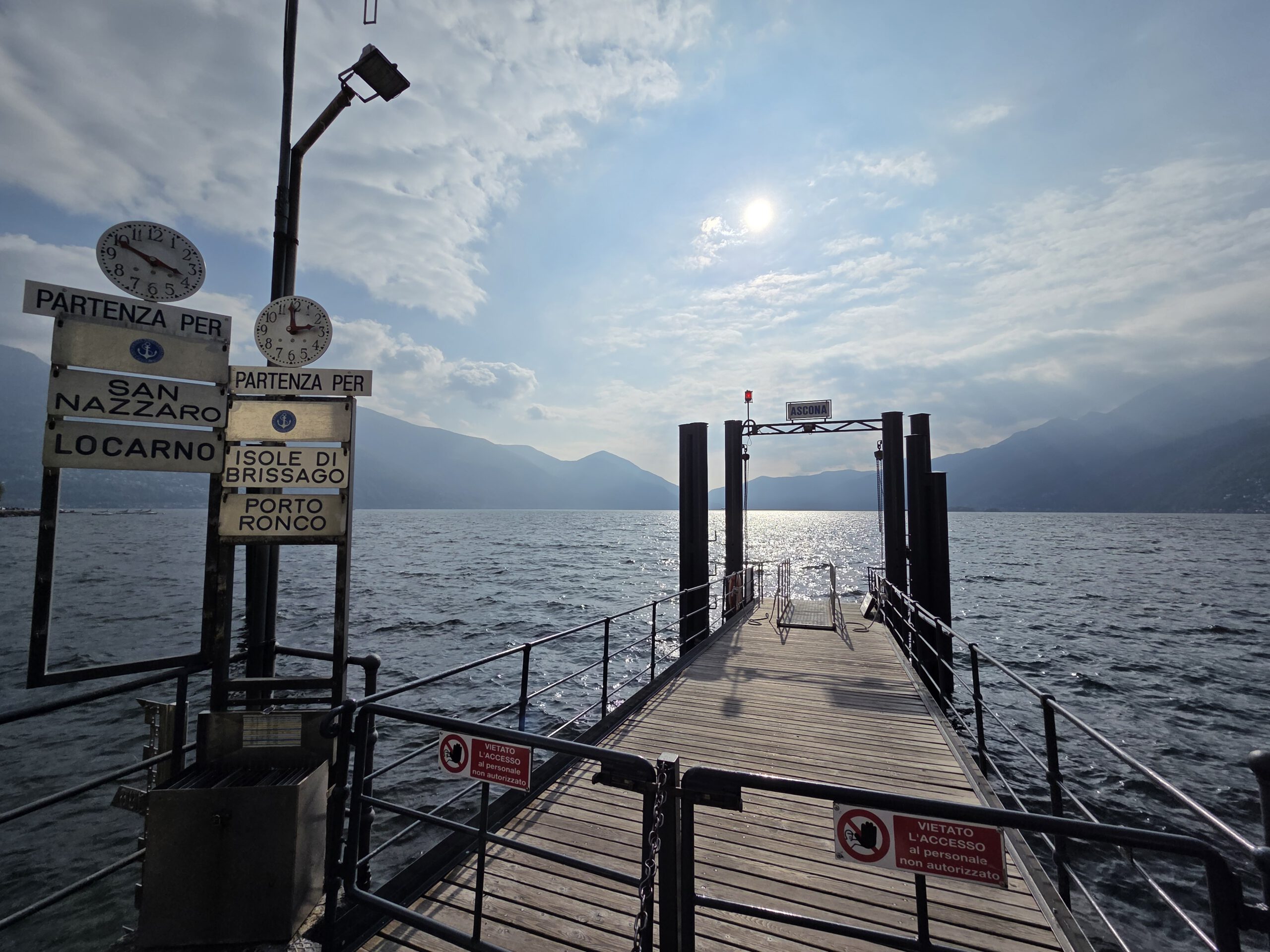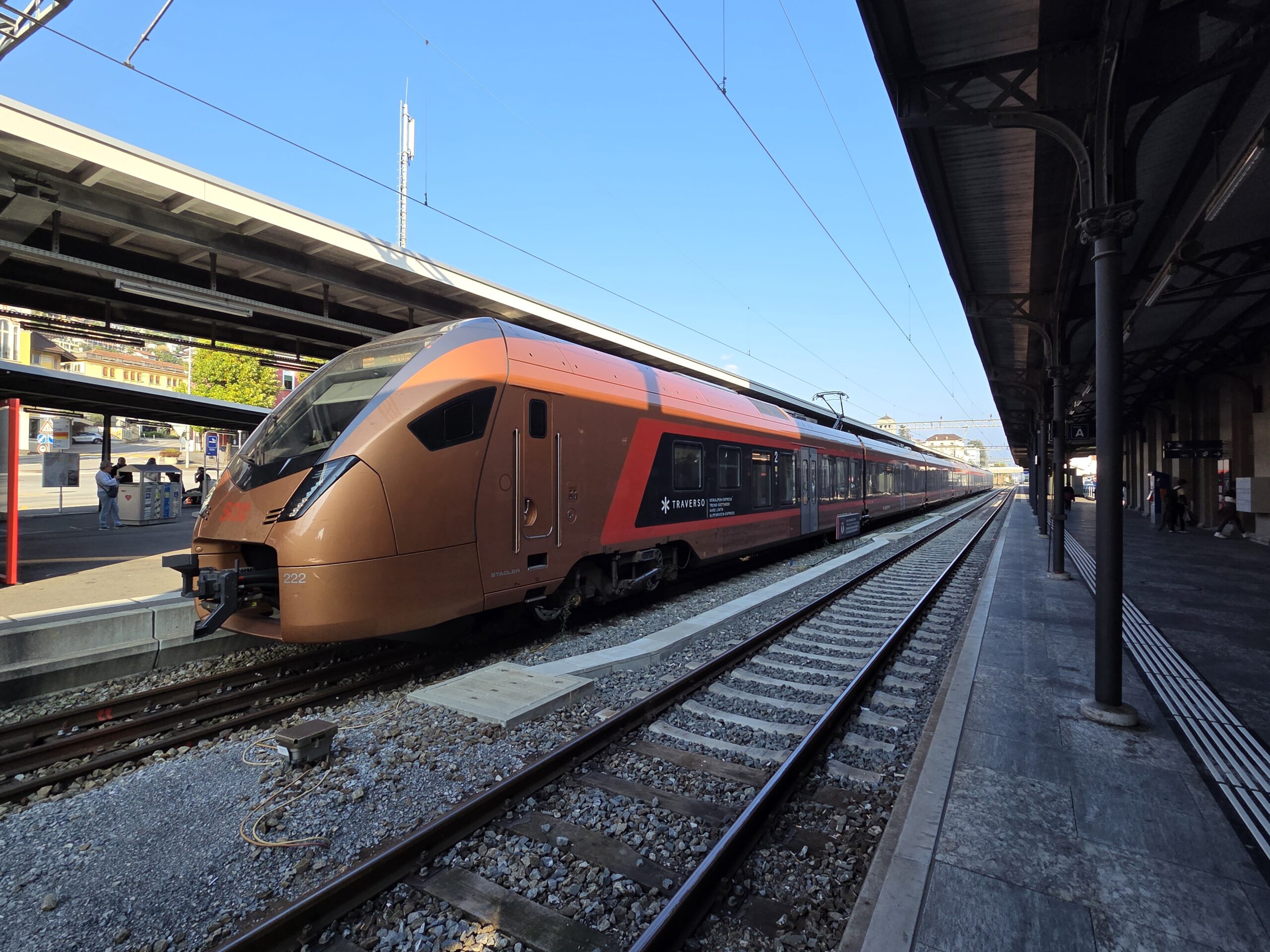 Wir fahren eine S-Bahn früher nach Mannheim und decken uns noch mit (schlechtem) Kaffee und Backwaren ein. Danach geht es erstaunlich (fast) pünktlich mit dem ICE nach Basel, von dort aus nochmal 4,5 Stunden in einem ziemlich leeren IR nach Locarno. Der Zug ist fast leer, der kleine Kaffeeautomat kann Leckeres zaubern und die Sicht ist natürlich grandios. Nach siebeneinhalb Stunden sind wir trotzdem froh angekommen zu sein. Im ICE wurden wir übrigens gar nicht kontrolliert, in der Schweiz hingegen gleich dreimal, mal mit einem fröhlichen Gruezi Miteinand, mal mit einem Buona Sera.